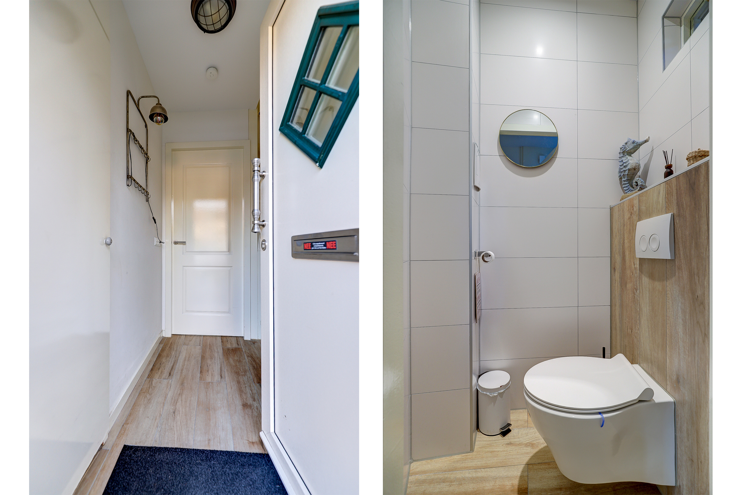 Entree met meterkast, toiletruimte en trapopgang naar de eerste verdieping.