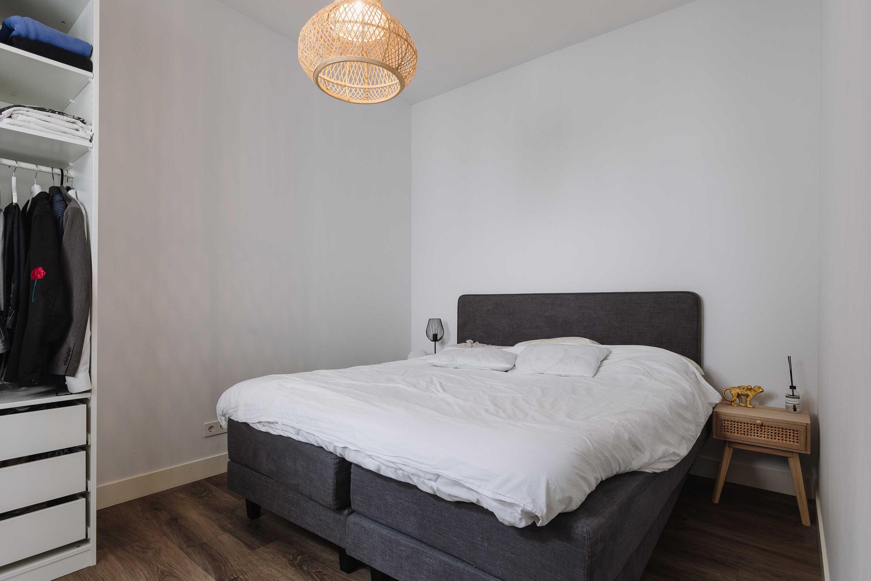 De slaapkamer is ruim en praktisch ingedeeld, met voldoende plaats voor een groot bed en kastruimte.