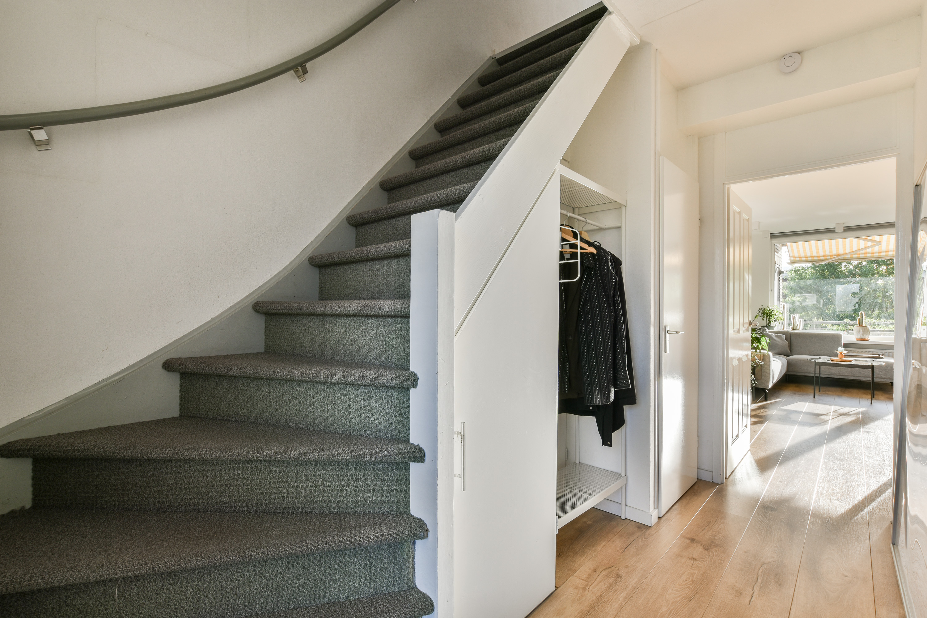 Afgesloten entree met bellenplateau en brievenbussen. Je hebt toegang tot het trappenhuis en een eigen berging, wat zorgt voor extra gemak en veiligheid.