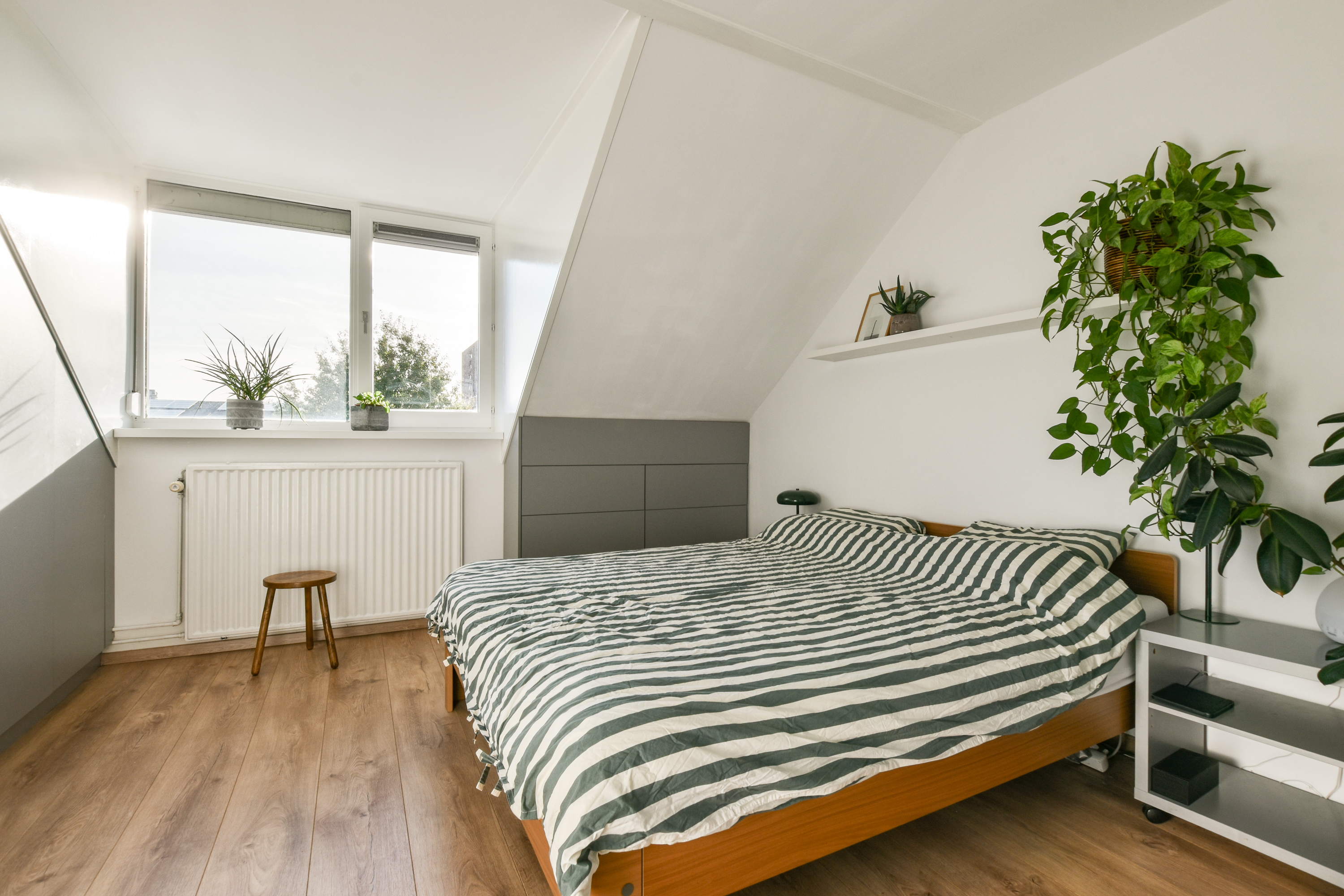 Via een vlizotrap bereik je de zeer royale bergvliering met opstelplek voor de CV-combiketel.