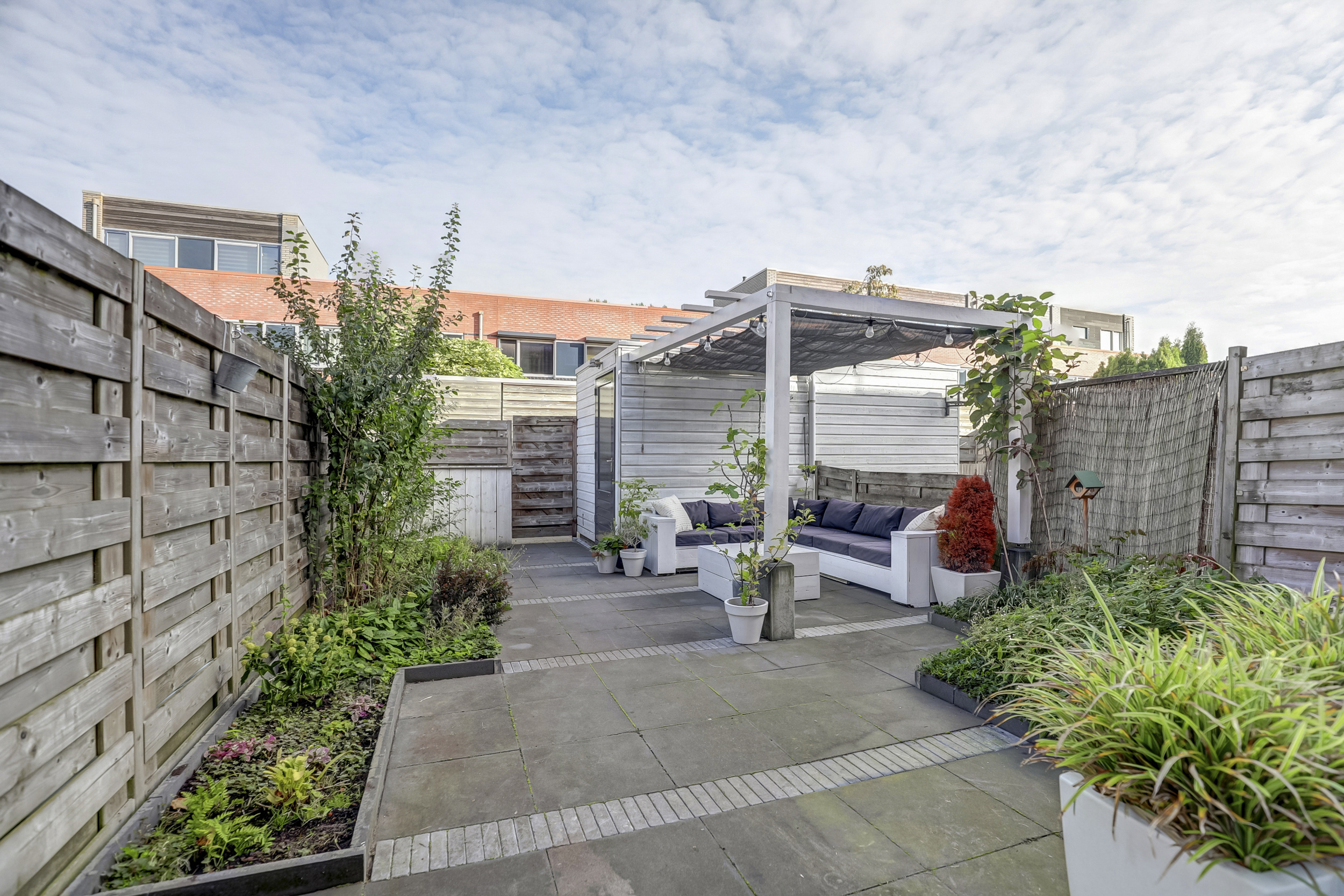 Moderne, instapklare woning met dakterras en fraai aangelegde tuin met een sfeervolle pergola met zonwering.