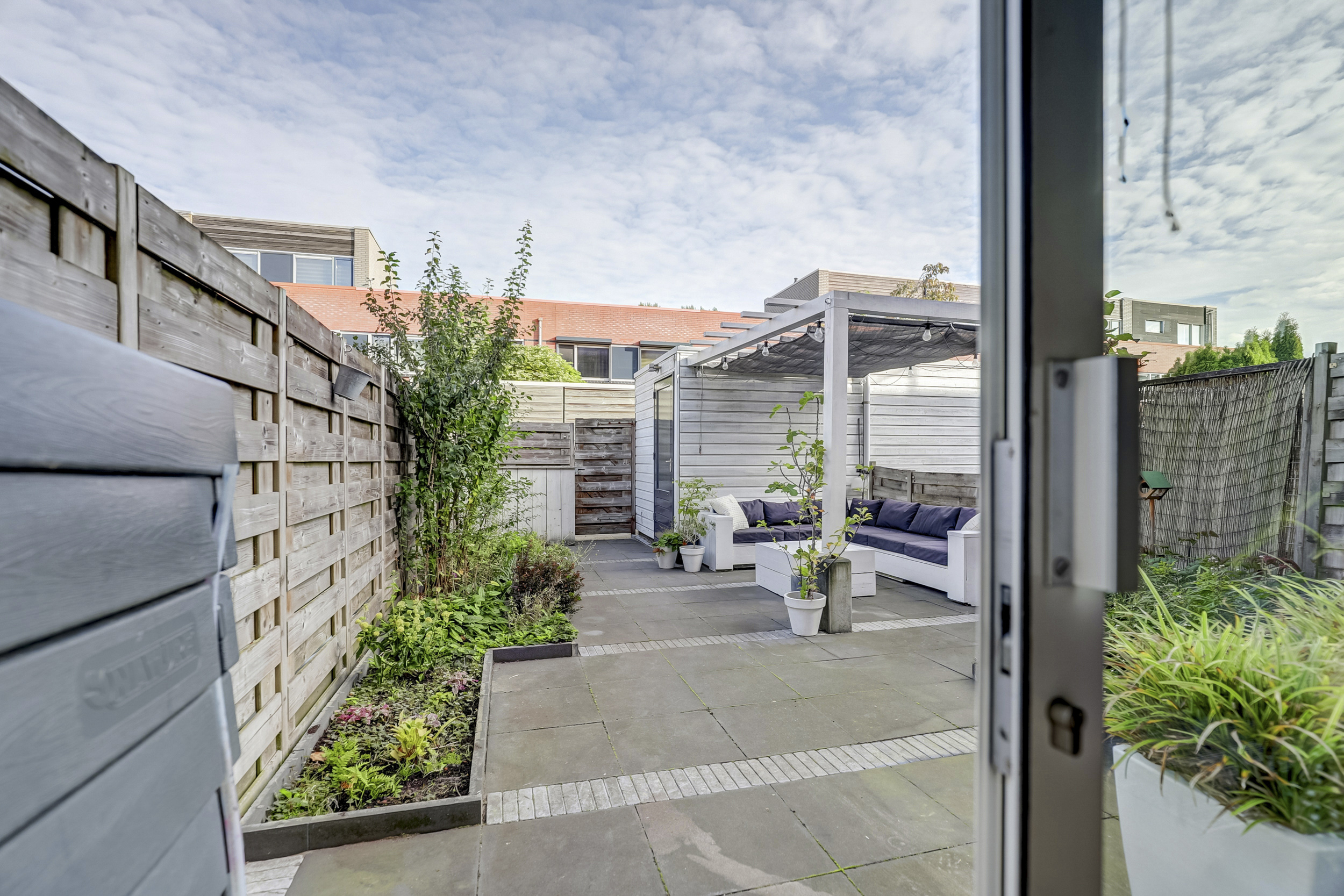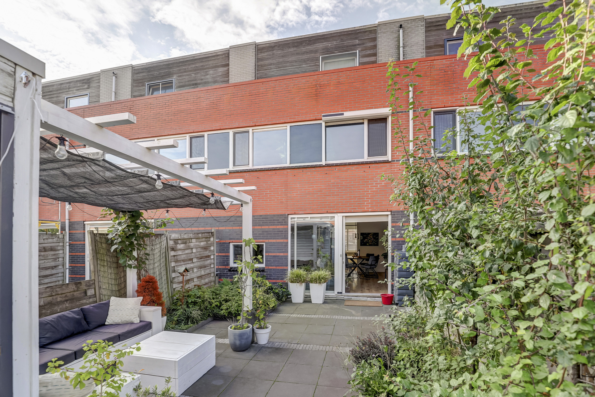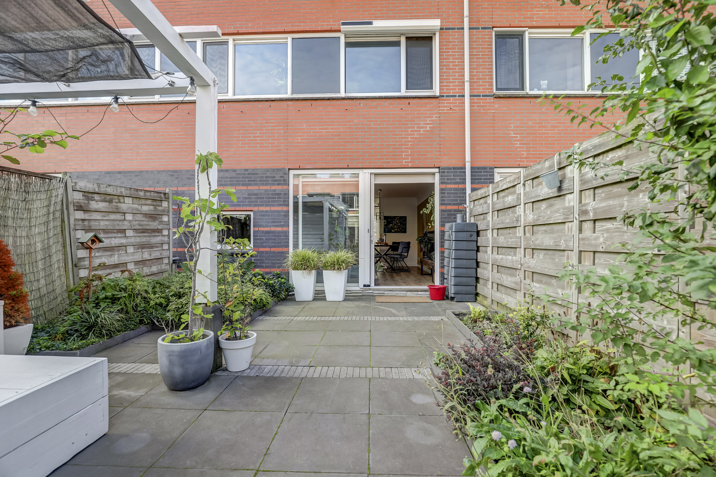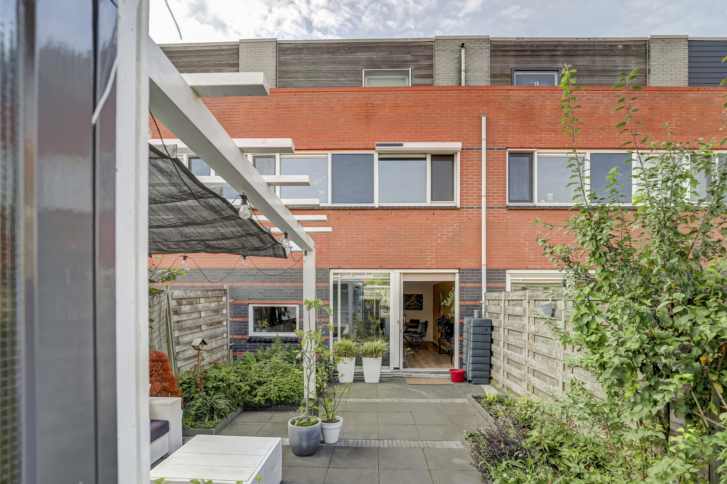 De woning beschikt over een praktische, onderhoudsvriendelijke voortuin, een royale achtertuin en een dakterras op het zonnige zuiden. De achtertuin is fraai aangelegd met bestrating, groene borders en een sfeervolle pergola met zonwering en comfortabele zithoek, ideaal voor lange zomeravonden. De tuin is bereikbaar via een achterom en biedt volop privacy, zodat u hier in alle rust kunt genieten van ruimte en het buitenleven.