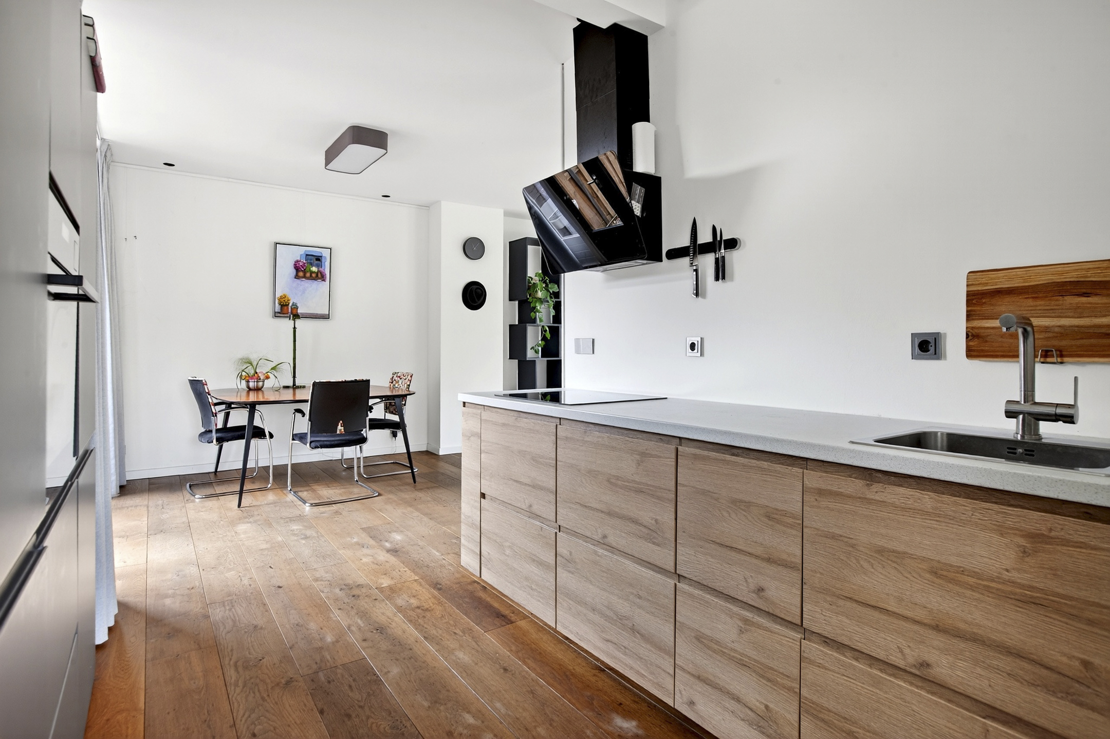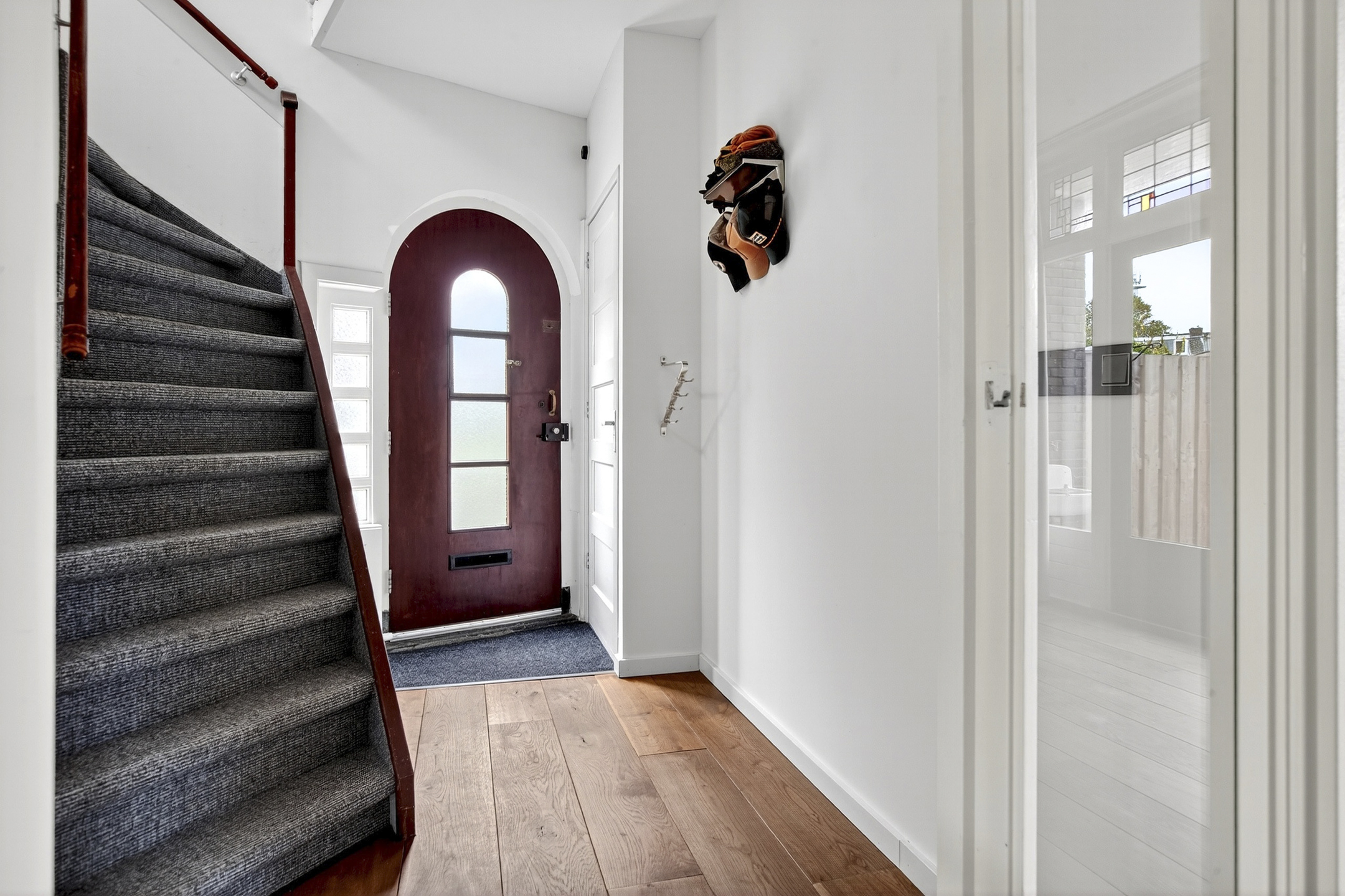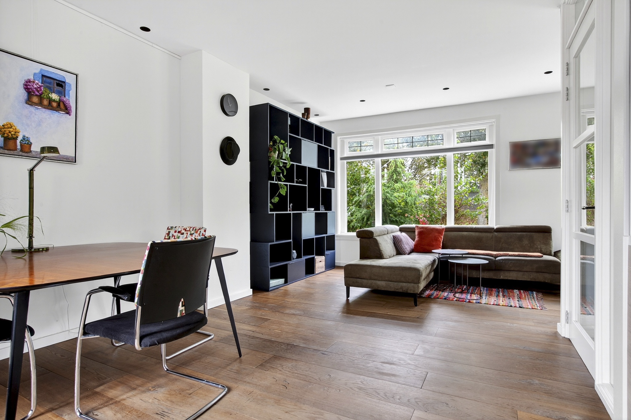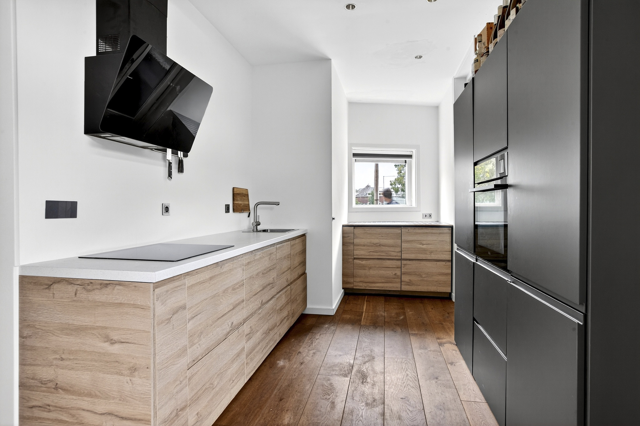 De woning beschikt over een ruime entree die toegang biedt tot de eerste verdieping, het toilet en via een loopdeur naar de woonkamer, in het toilet bevindt zich tevens de meterkast. De woonkamer is royaal van opzet, met voldoende ruimte voor een grote eettafel en een comfortabel zitgedeelte. Dankzij de ramen in alle gevels geniet de ruimte van veel natuurlijk licht. Via openslaande deuren is de zonnige achtertuin bereikbaar, gelegen op het zuidwesten, waar u tot in de late uurtjes van de zon kunt genieten—perfect na een werkdag of een project in de garage. De moderne open keuken, direct bereikbaar vanuit de woonkamer, is van alle gemakken voorzien. De keuken beschikt over een inductiekookplaat, afzuigkap, stoomoven, vaatwasser, koel-/vriescombinatie en een spoelbak. De keuken beschikt over veel bergruimte en is afgewerkt met een kunststof werkblad. Vanuit de keuken is er toegang tot de royale garage.