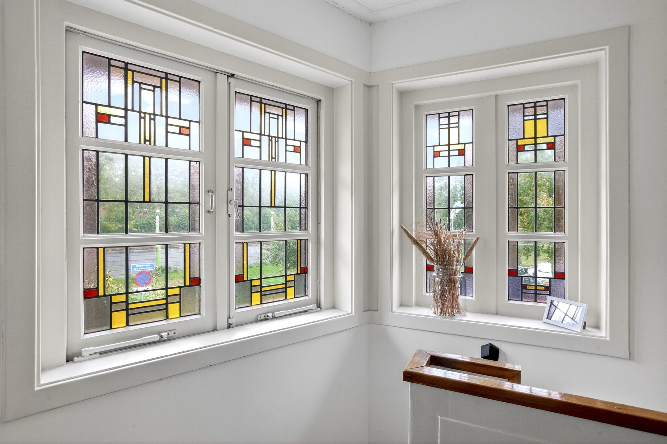 -Het pand beschikt nog over veel authentieke details, zoals glas-in-lood ramen;