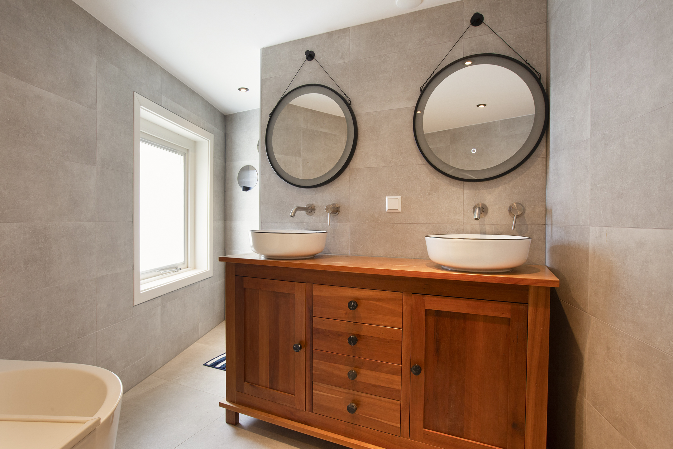 De ruime overloop, met prachtig glas-in-lood dat zorgt voor een sfeervol lichtspel, biedt toegang tot alle vertrekken en de trap naar de tweede verdieping. De verdieping beschikt over drie ruime slaapkamers, waarvan twee met vaste kasten. De slaapkamer aan de achterzijde heeft toegang tot een heerlijk balkon met uitzicht op de achtertuin, terwijl de slaapkamer aan de voorzijde tevens via de garage bereikbaar is. De moderne, uitgebouwde badkamer is een echte eyecatcher: licht, stijlvol en uitgerust met een inloopdouche, tweede toilet en vrijstaand bad. De volledig betegelde ruimte met vloerverwarming biedt een luxe en comfortabele plek om te ontspannen.