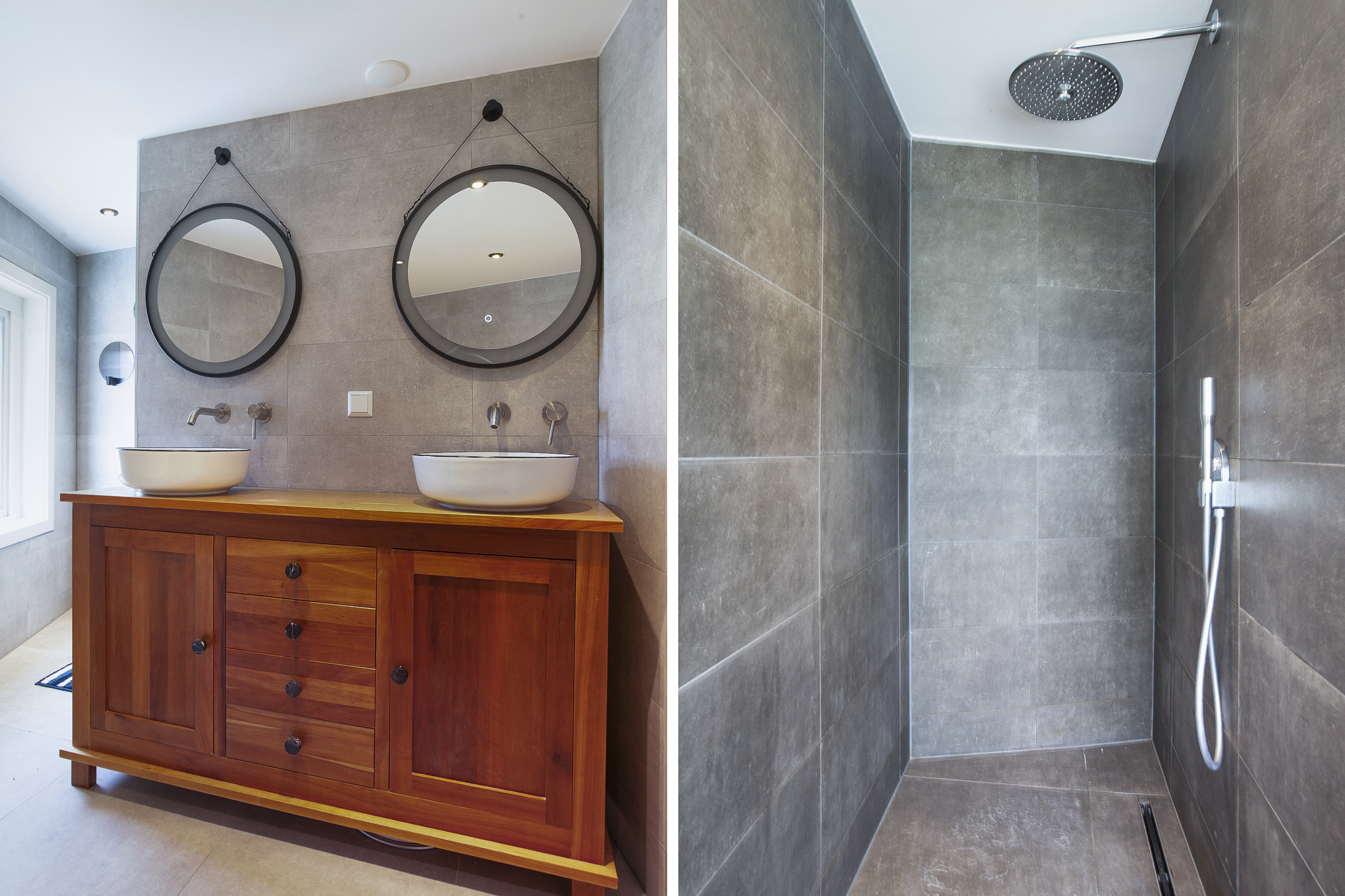 De ruime garage is zowel vanaf de straatzijde als vanuit de keuken bereikbaar. In de garage bevindt zich een praktisch keukenblok met extra koelkast en magnetron. Dankzij de brede toegangsdeur is het eenvoudig om auto’s, motoren, fietsen en/of aanhangers naar binnen te rijden.
