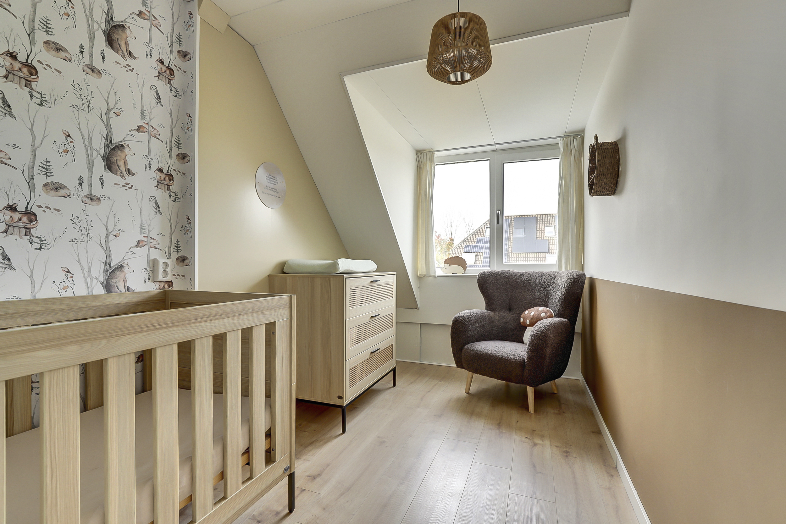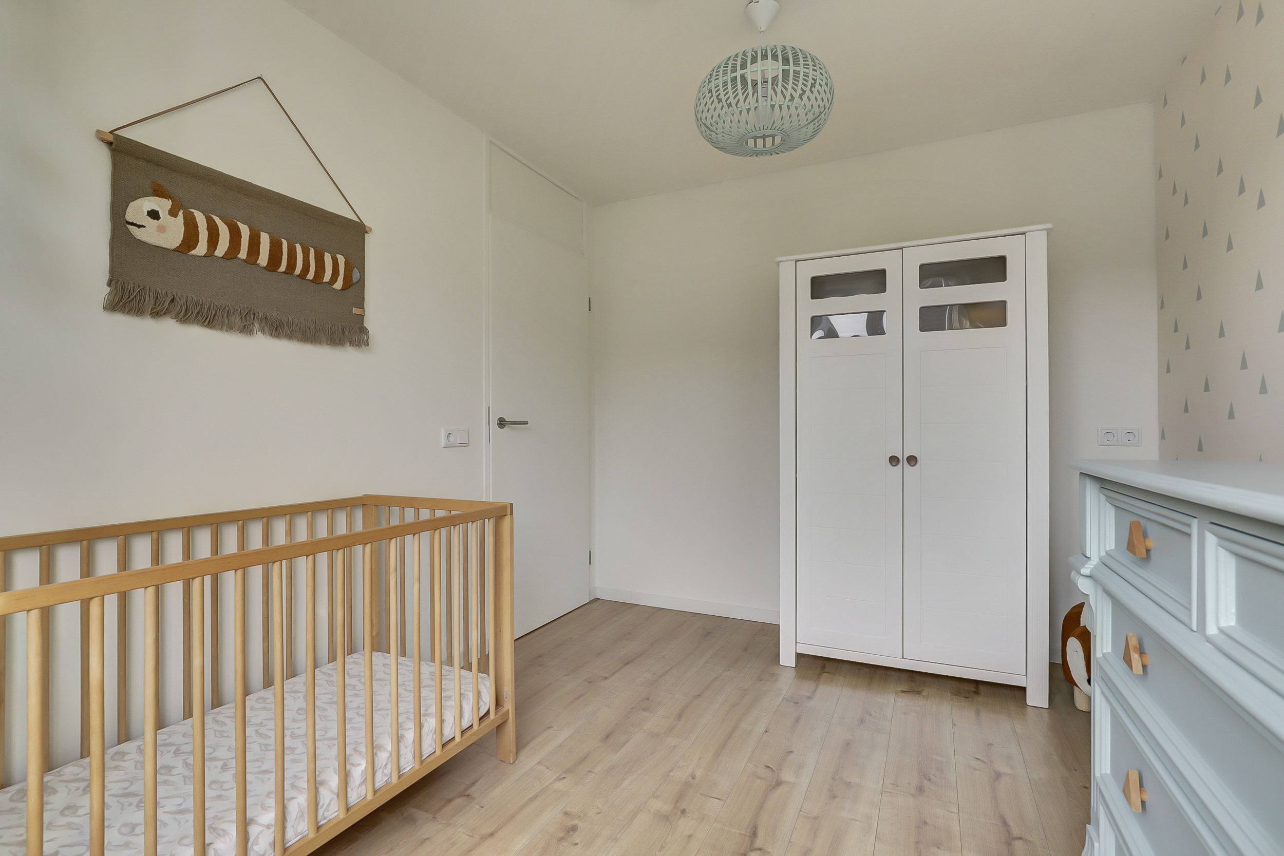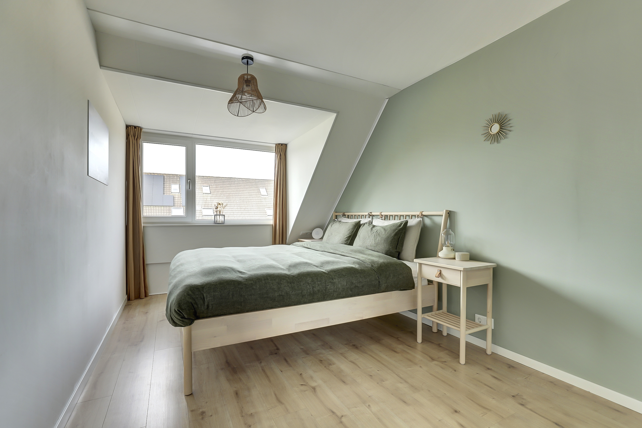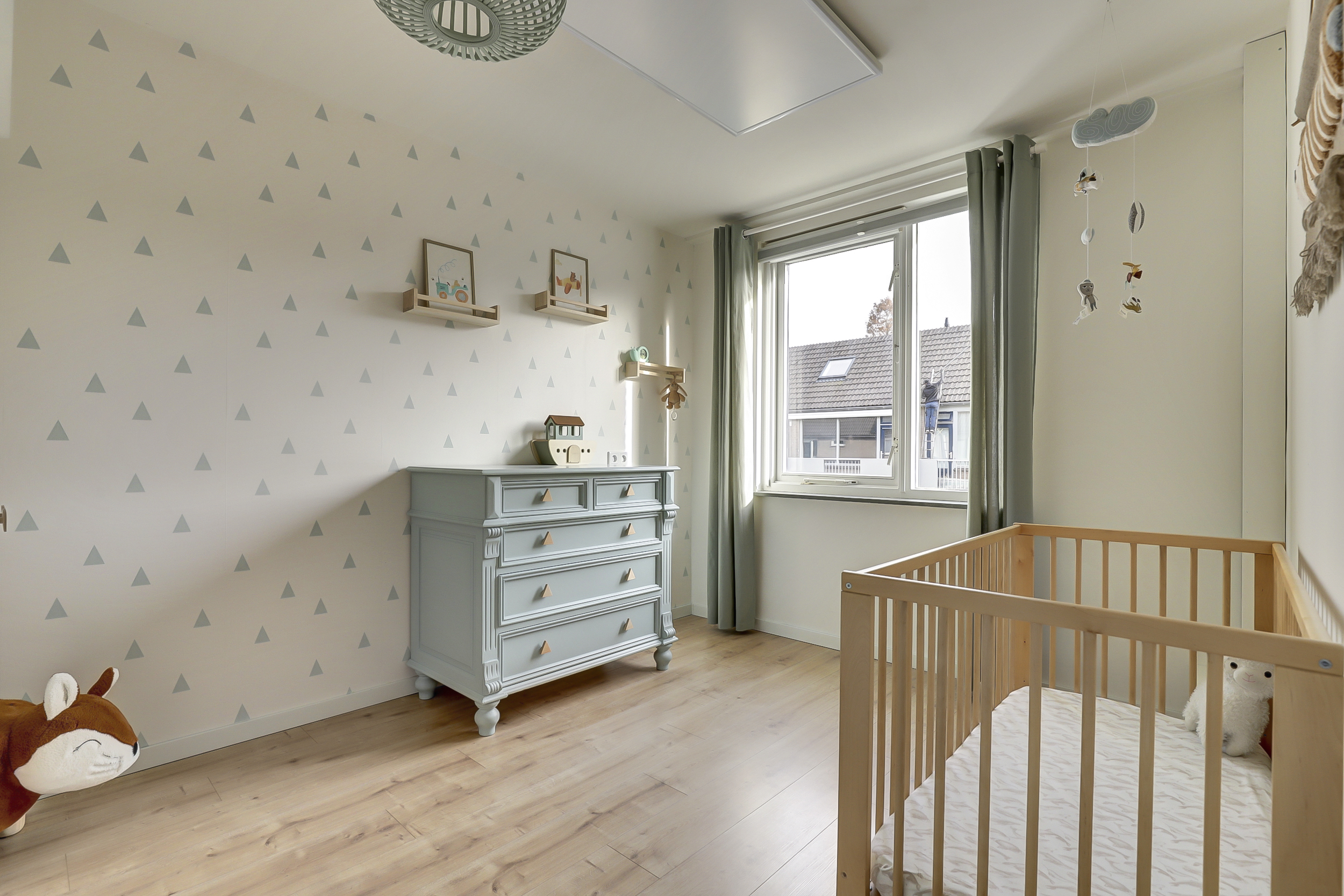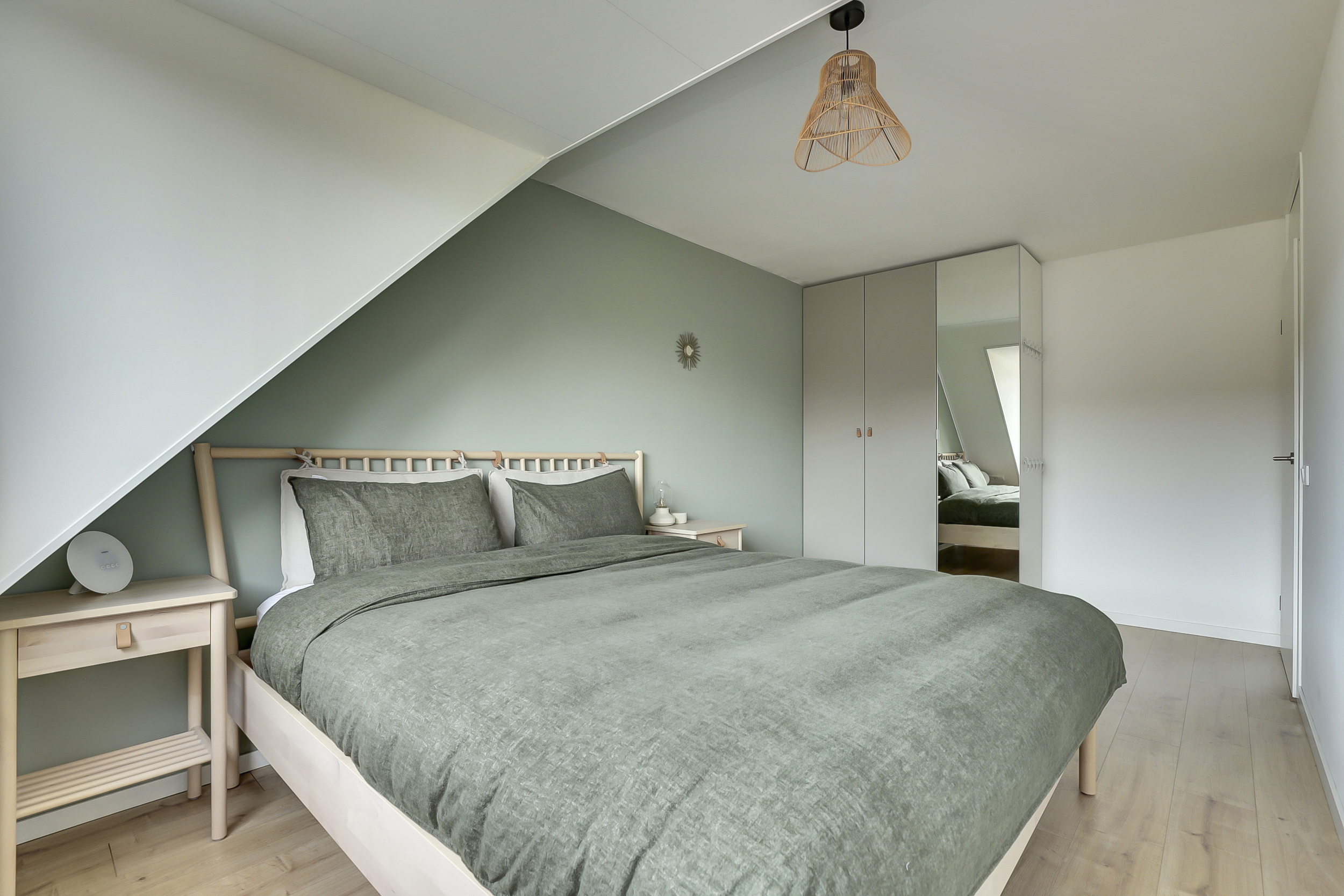 De vaste trap leidt naar de overloop met toegang tot drie ruime slaapkamers en de badkamer. De slaapkamers zijn stuk voor stuk licht en verzorgd, voorzien van laminaatvloeren en strak afgewerkte wanden. Twee kamers aan de achterzijde beschikken over een dakkapel, wat zorgt voor extra licht en ruimte — ideaal voor een gezin of om een fijne thuiswerkplek te creëren.