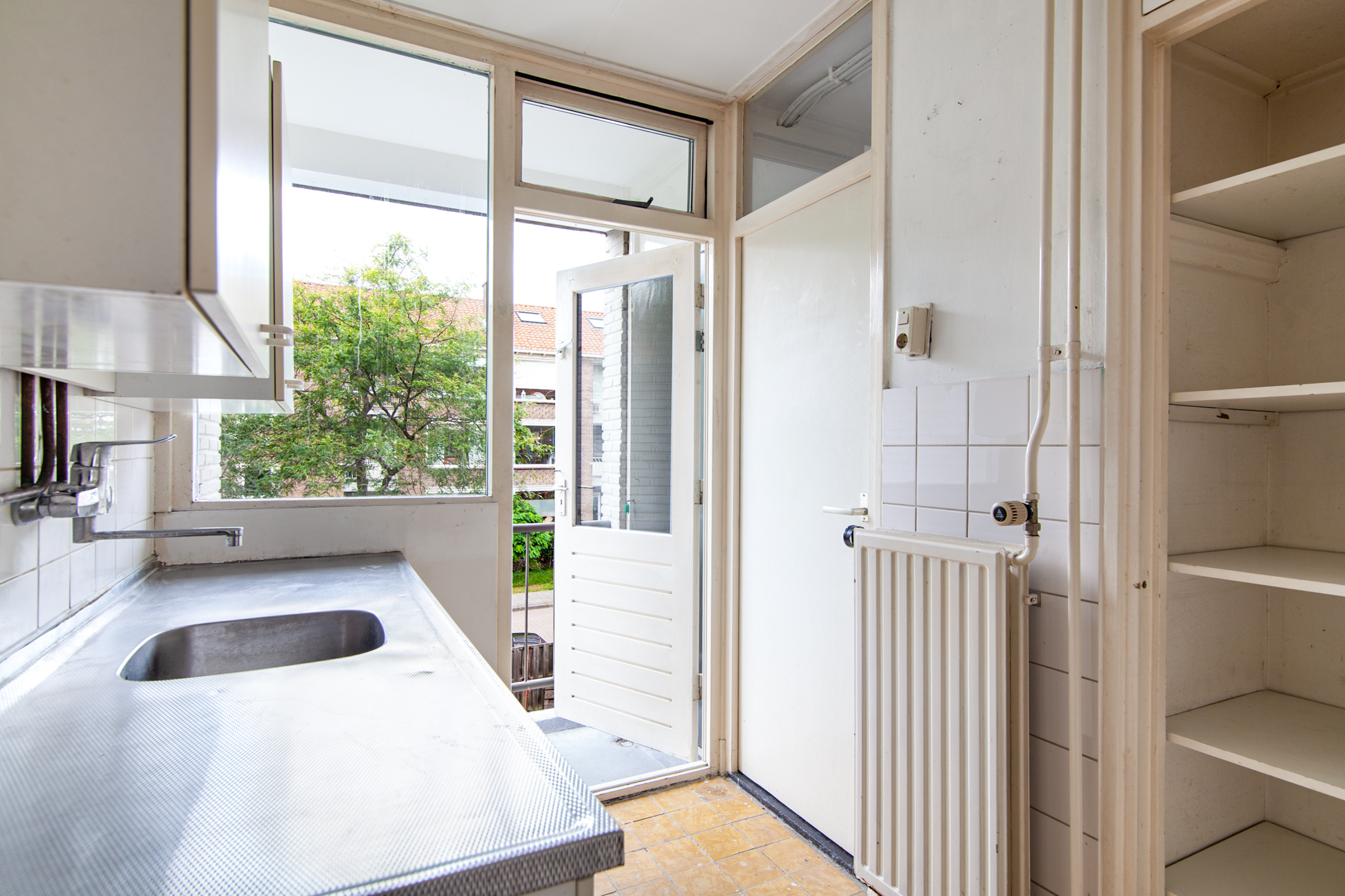 Bij binnenkomst betreed je een ruime hal die toegang biedt tot alle vertrekken: twee slaapkamers, de keuken, een apart toilet en een lichte, ruime woonkamer. De slaapkamers zijn gunstig gelegen aan zowel de voor- als achterzijde van het appartement. De slaapkamer aan de voorzijde beschikt over een vaste kast en biedt toegang tot het balkon. De slaapkamer aan de achterzijde is bereikbaar via zowel de woonkamer als de badkamer. De keuken bevindt zich aan de achterzijde van de woning. Vanuit hier is er eveneens toegang tot de badkamer, die is voorzien van een opstelplaats voor wasapparatuur. De badkamer is tevens toegankelijk vanuit de achterste slaapkamer. De woonkamer is een comfortabele, lichte ruimte en een groot raam aan de voorzijde, waardoor er veel natuurlijk licht binnenvalt. De cv-ketel (2024) is netjes weggewerkt in een kast op het balkon.