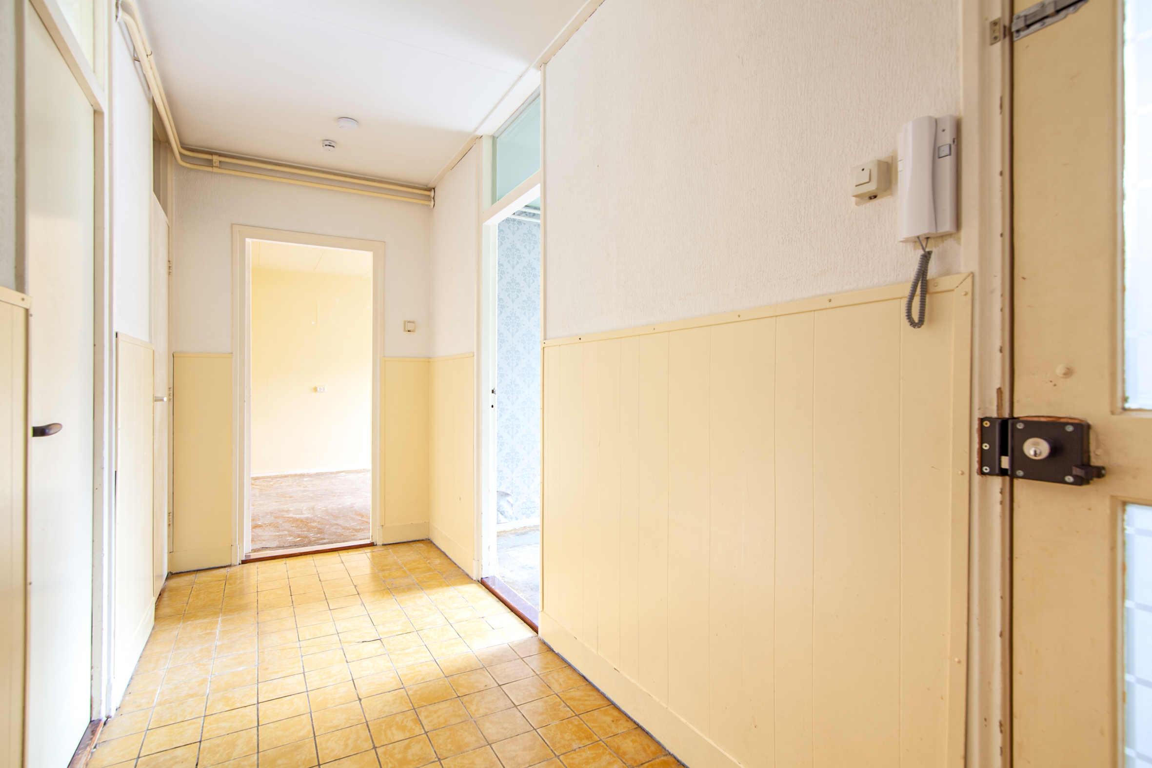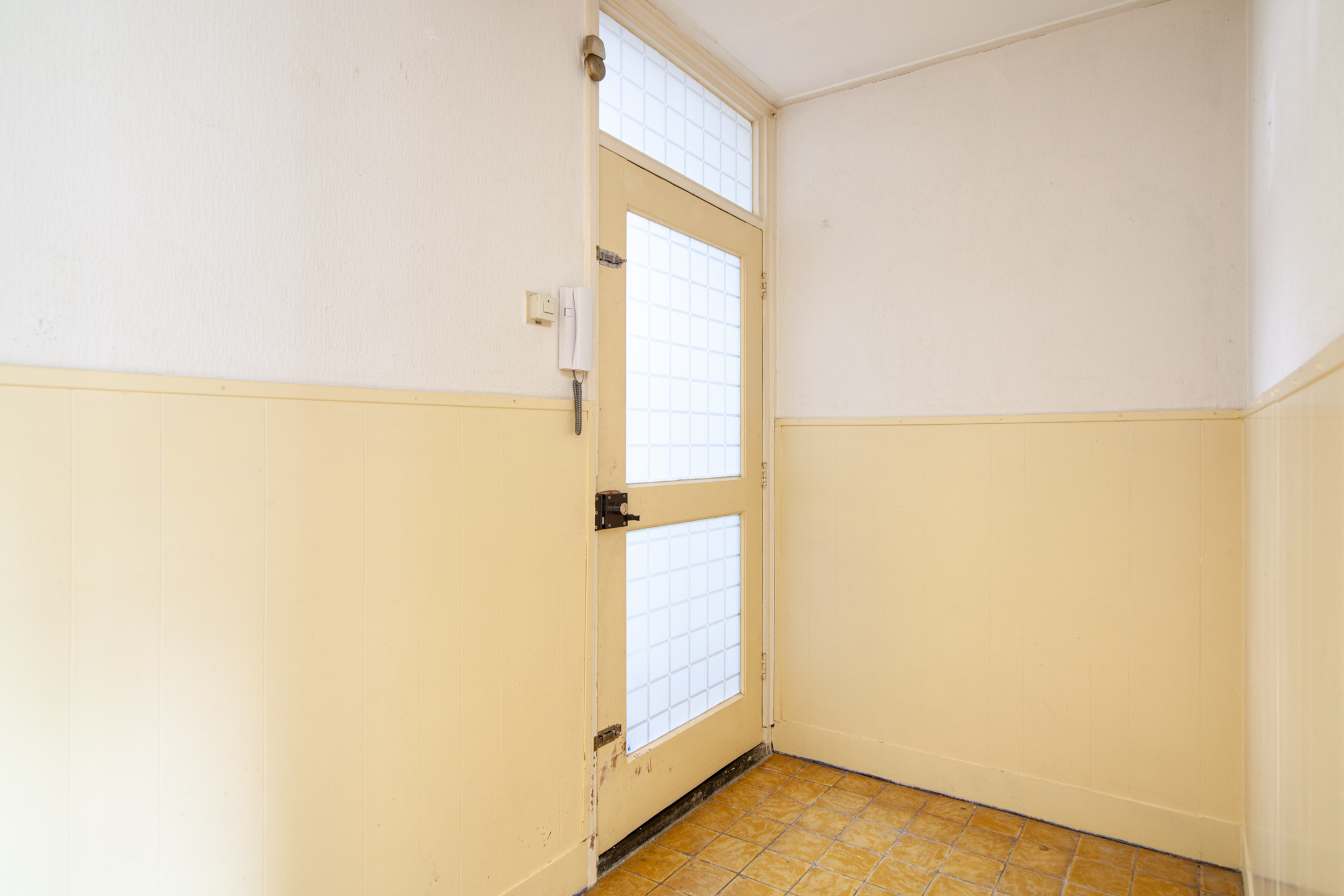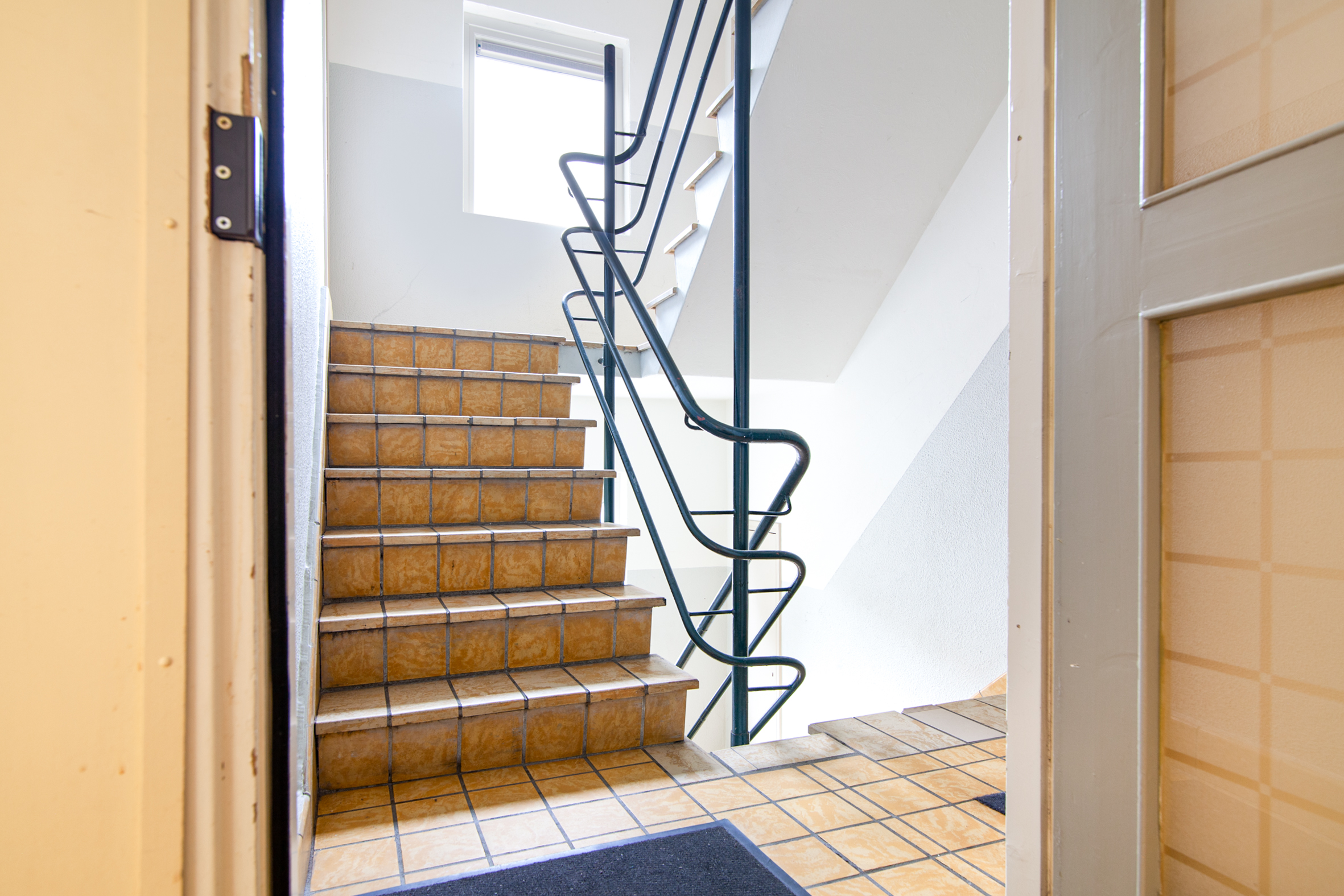 Gezamenlijke entree op de begane grond met bellentableau en brievenbussen. Trapopgang naar eigen royale berging voorzien van elektra en kleine trapopgang naar het appartement.