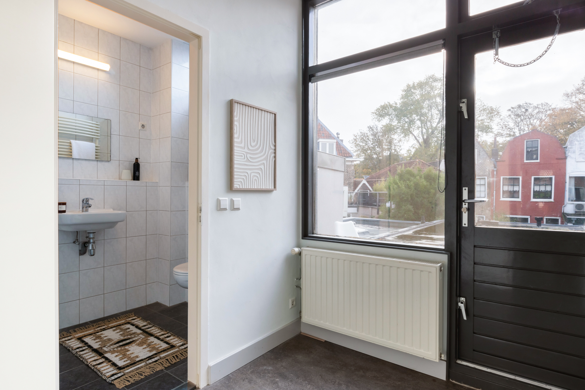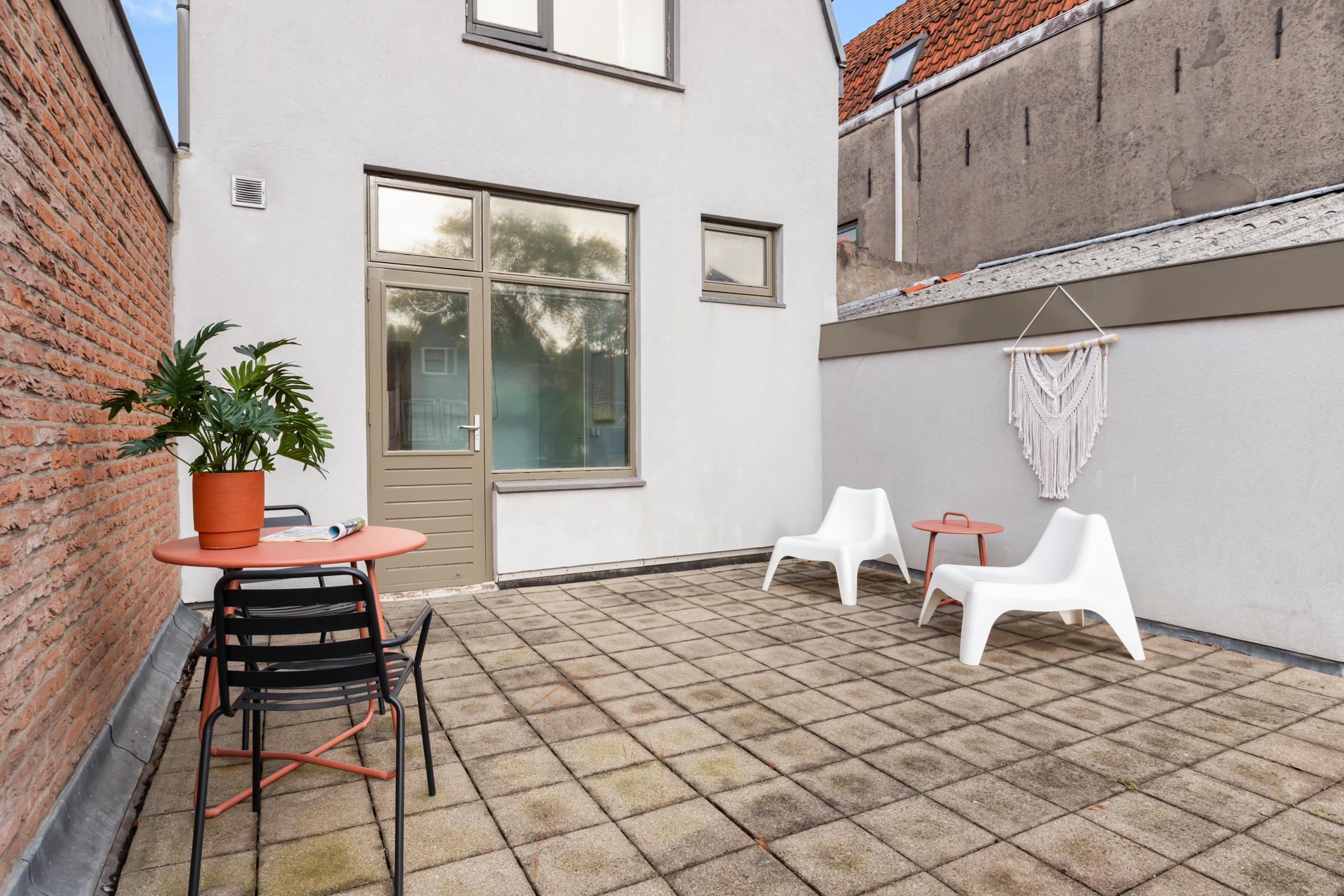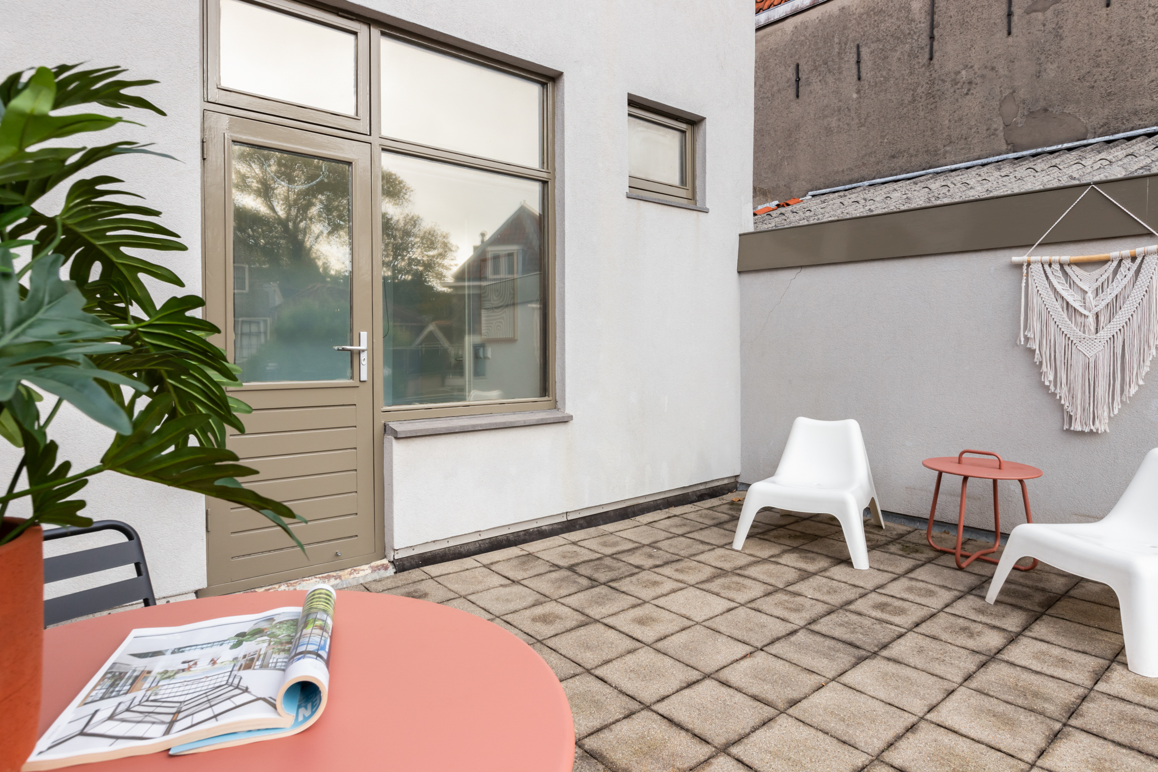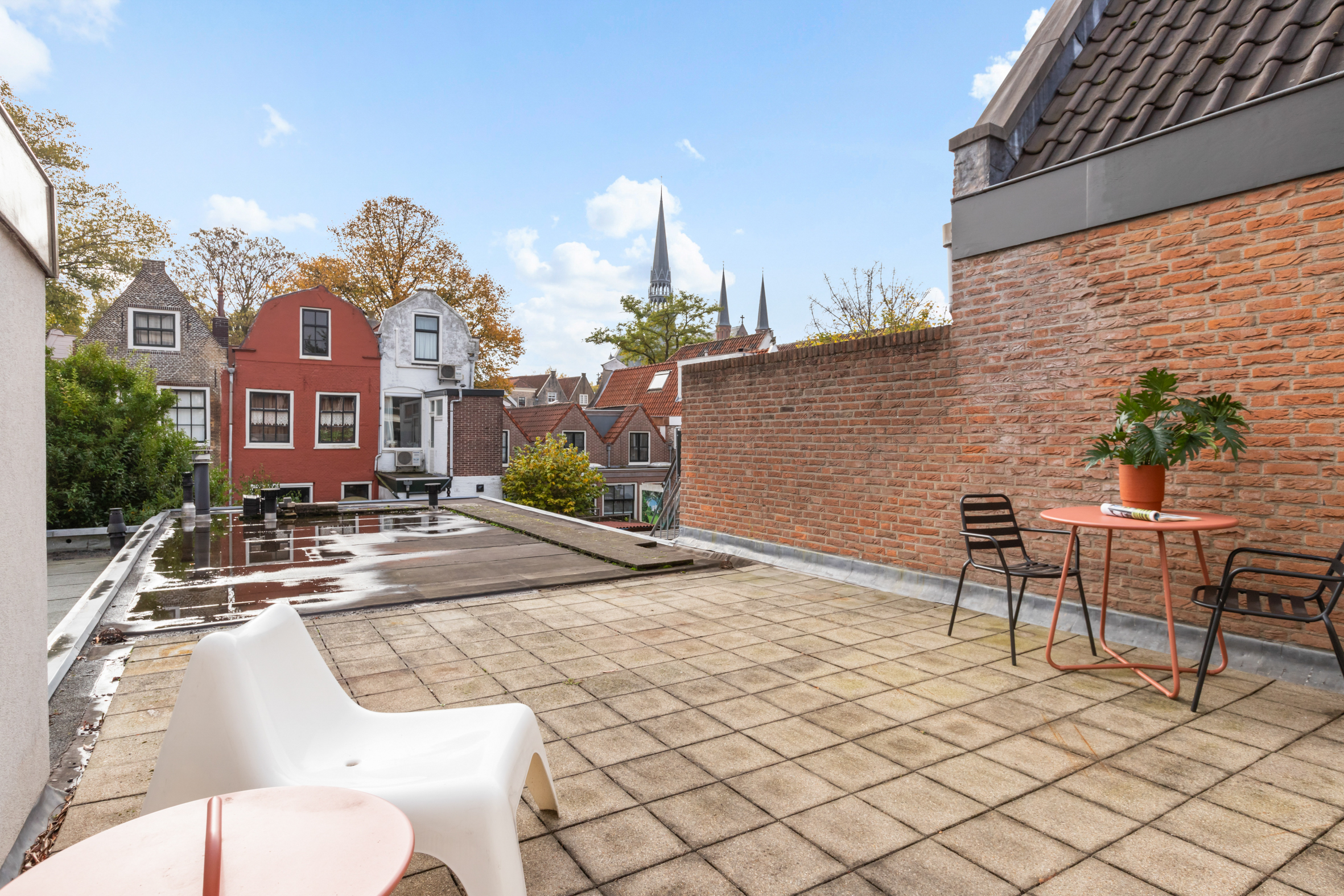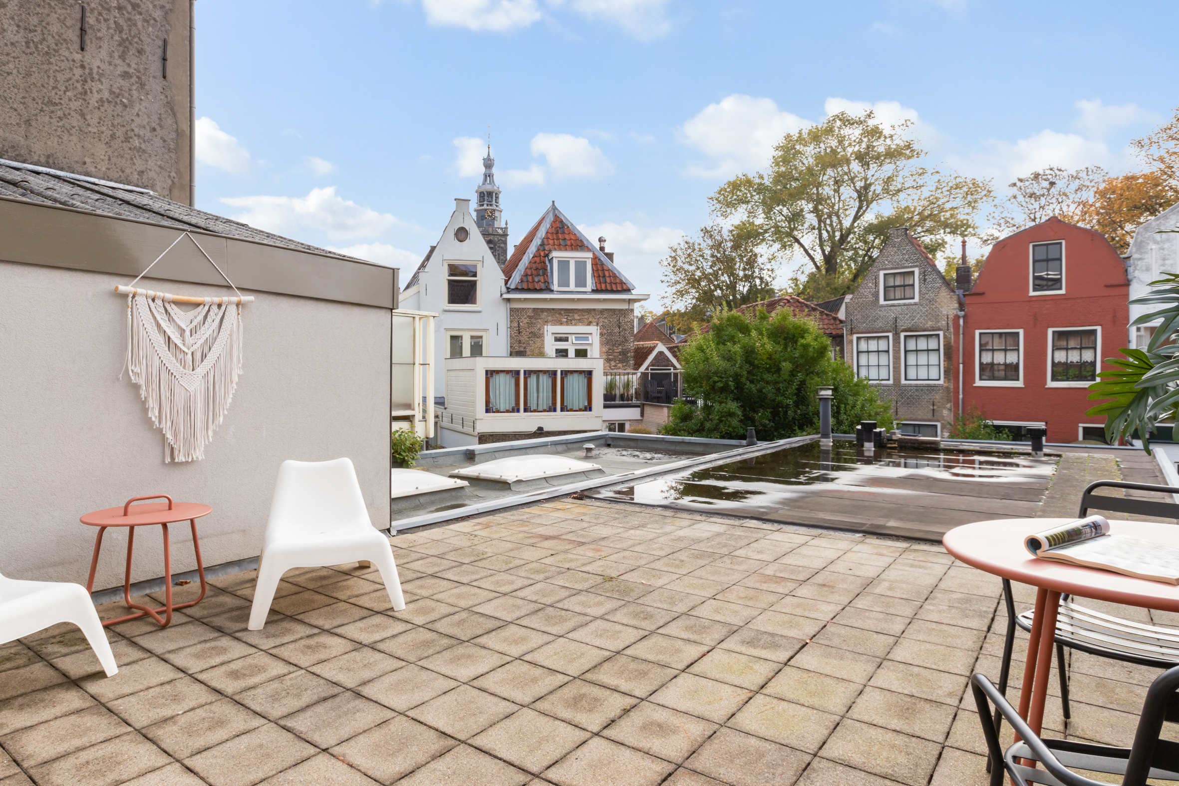 Het zonneterras is een fijne buitenruimte. Gelegen op het Zuid- oosten kun je hier heerlijk buiten zitten en genieten van de zon en het prachtige uitzicht over de historische daken van Gouda.