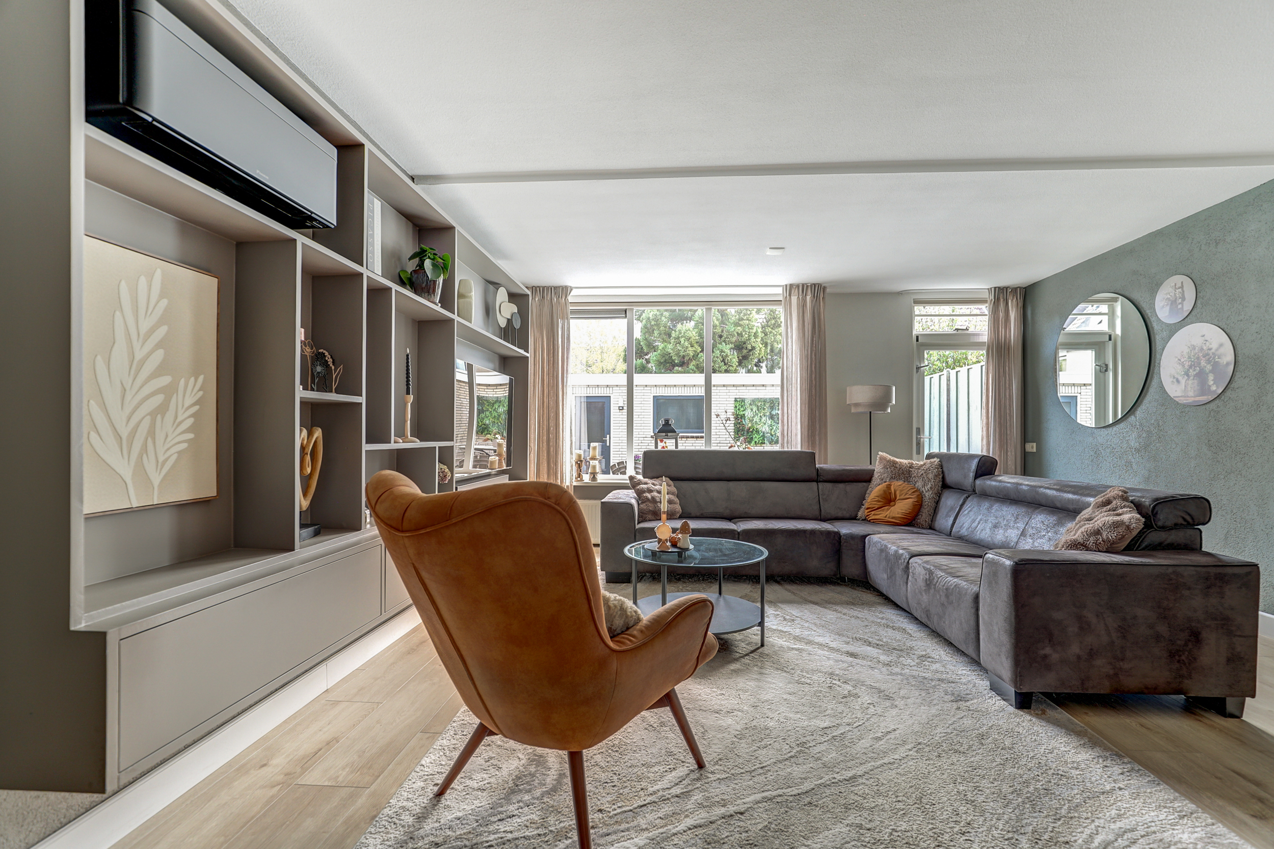 – Maatwerk wandmeubel in de woonkamer met geïntegreerde airco (koelen/verwarmen);