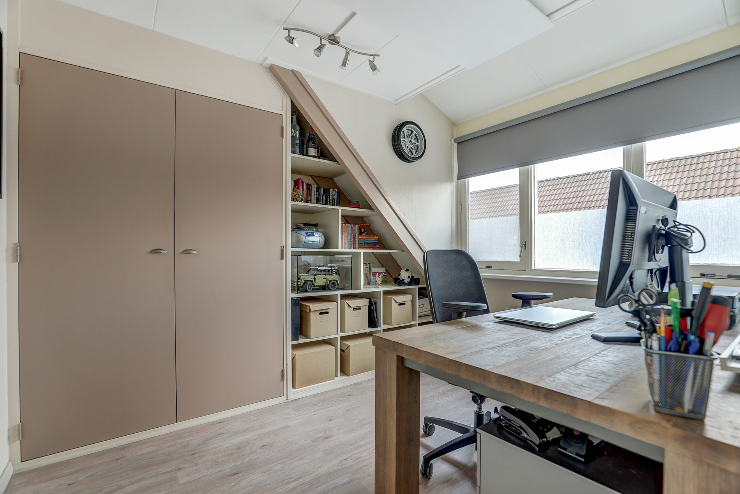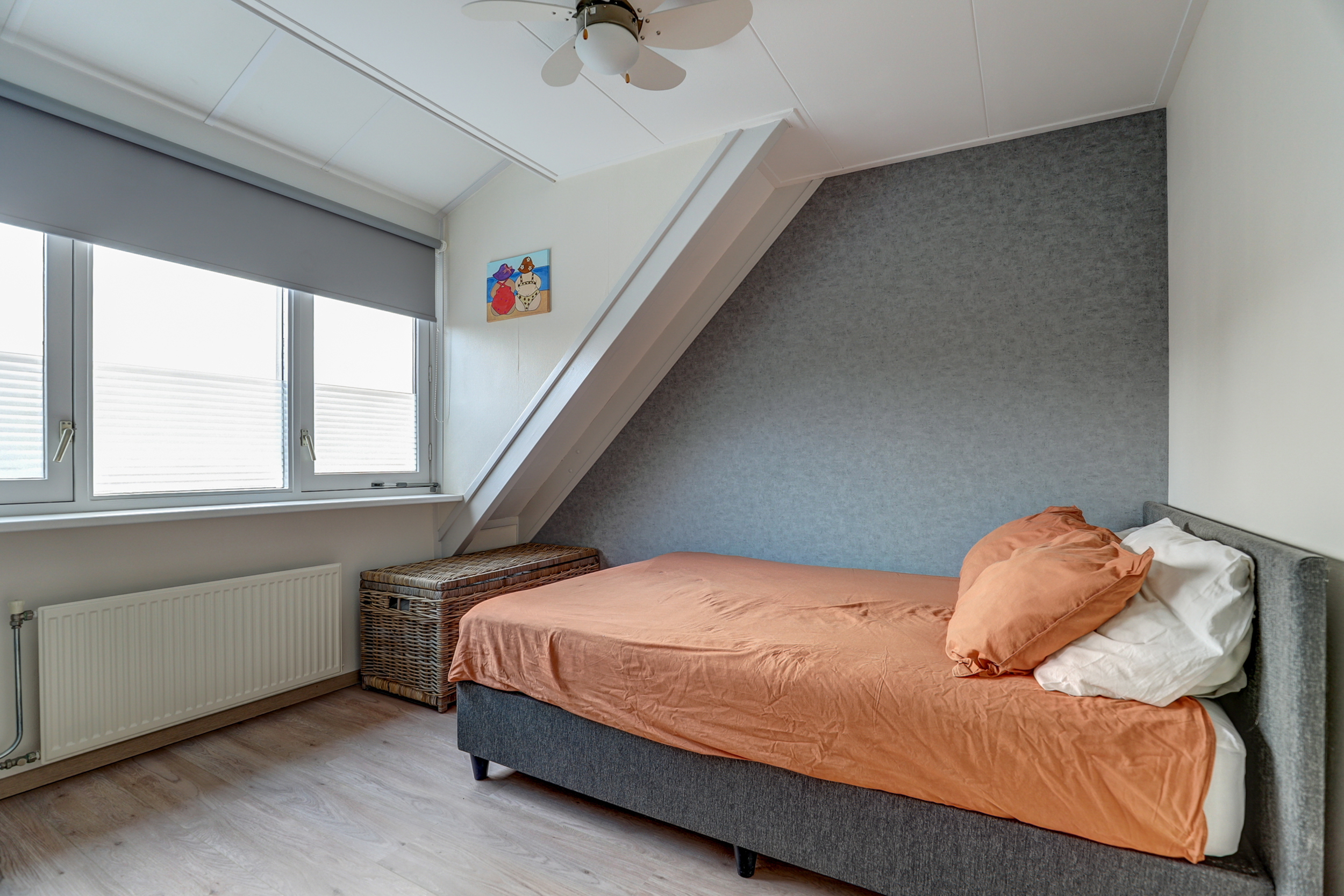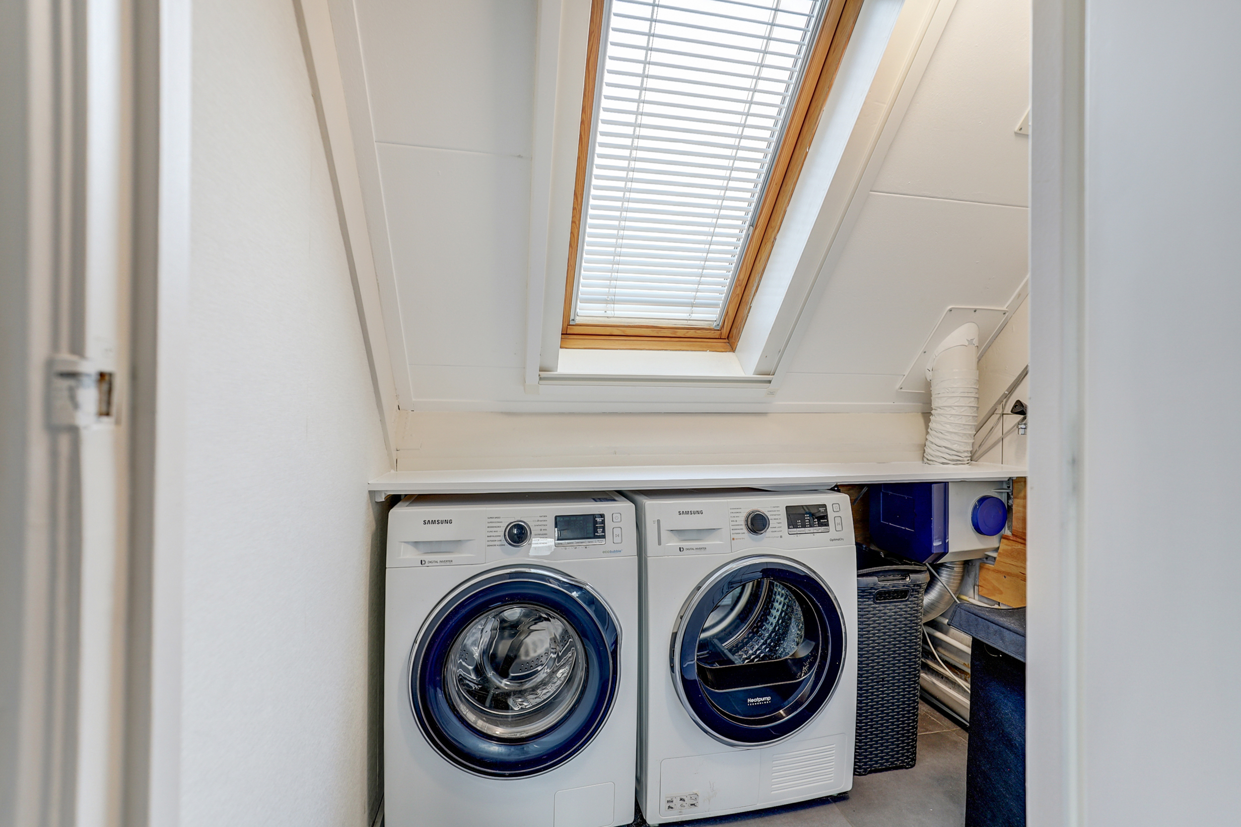De tweede verdieping is volledig benut dankzij de dakkapellen aan zowel de voor- als achterzijde, waardoor er twee extra slaapkamers met rechte wanden zijn ontstaan. Beide slaapkamers zijn netjes afgewerkt; één daarvan is voorzien van een infrarood verwarmingspaneel. Op de overloop is een praktische wasruimte met aansluitingen voor de wasmachine, droger en techniek. Hiermee biedt de woning in totaal vijf slaapkamers.