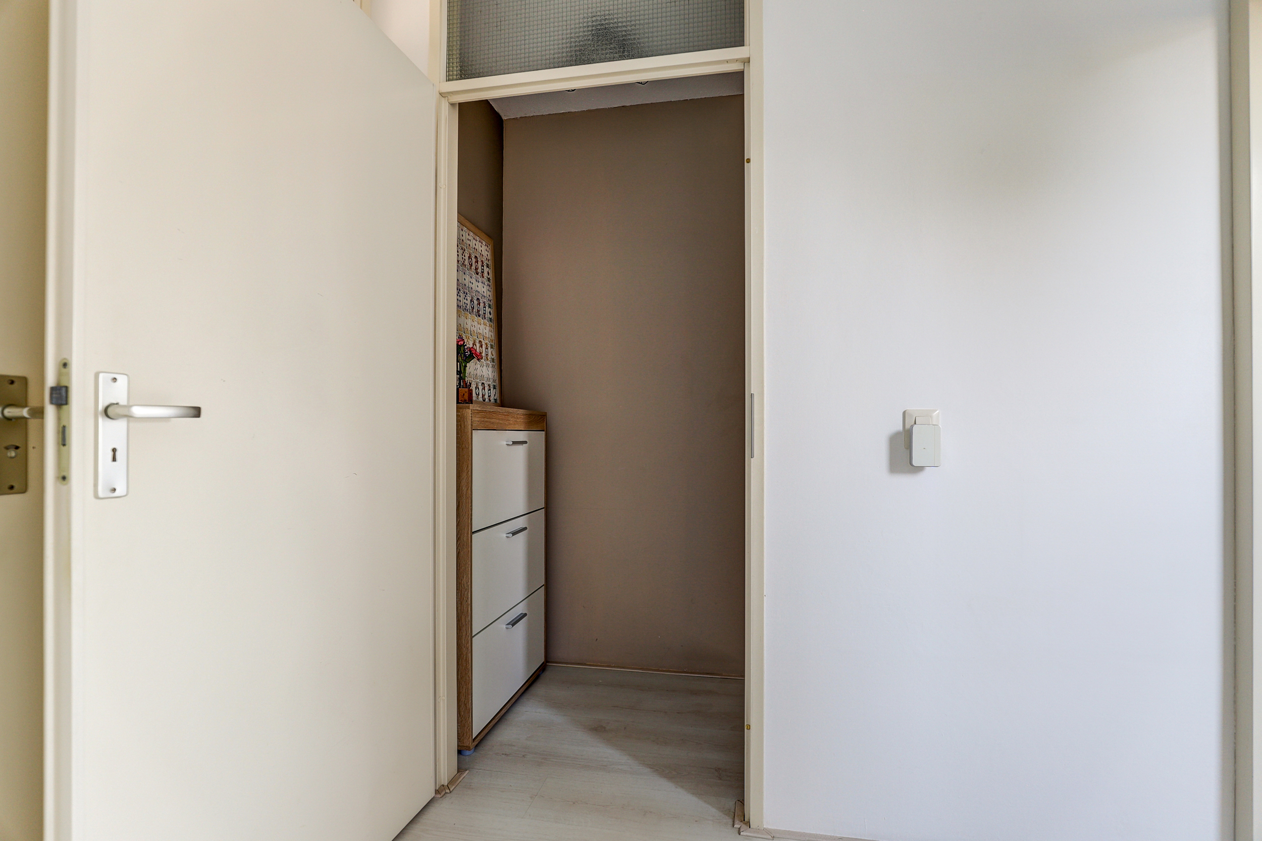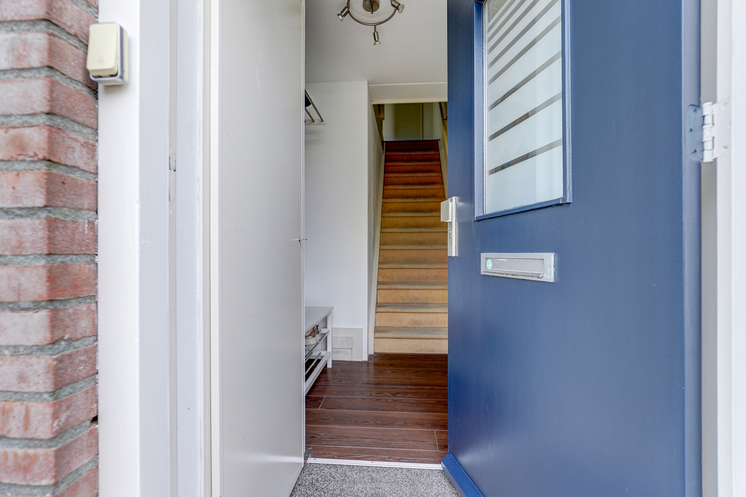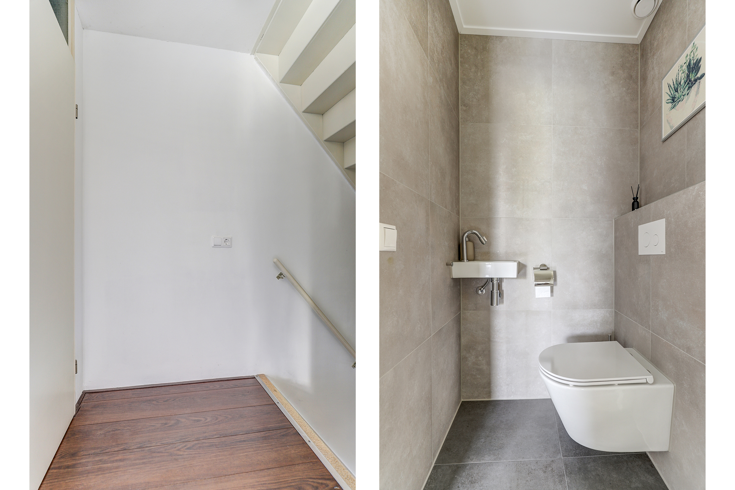 Via de eigen entree kom je in de hal met meterkast en trapopgang naar de woonverdieping. De entree voelt ruim aan en biedt voldoende plek voor een garderobe.