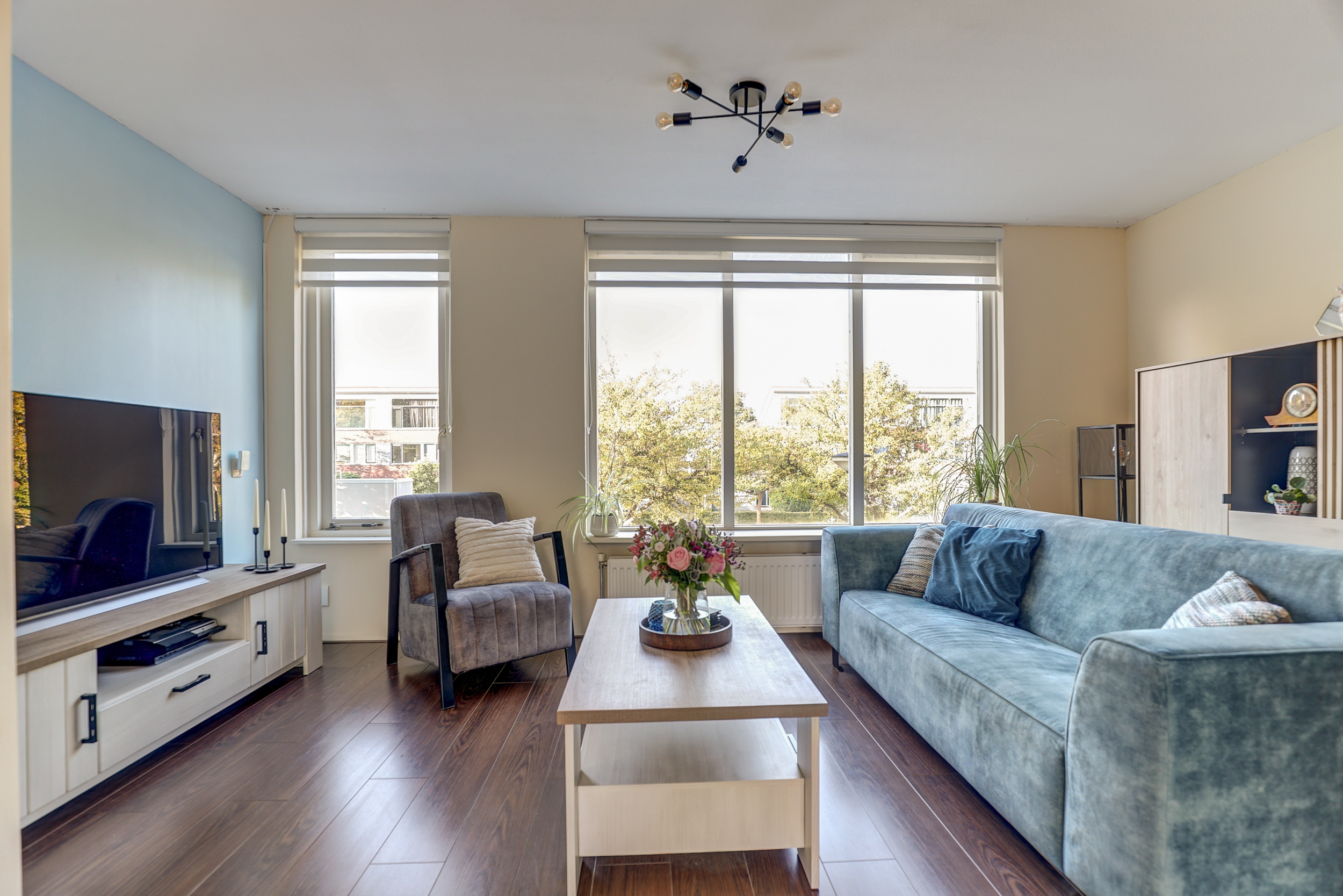 Deze woning combineert comfort met gemak: een lichte woonkamer, twee ruime slaapkamers, een moderne badkamer uit 2024 en een heerlijke buitenruimte op het zuidwesten.