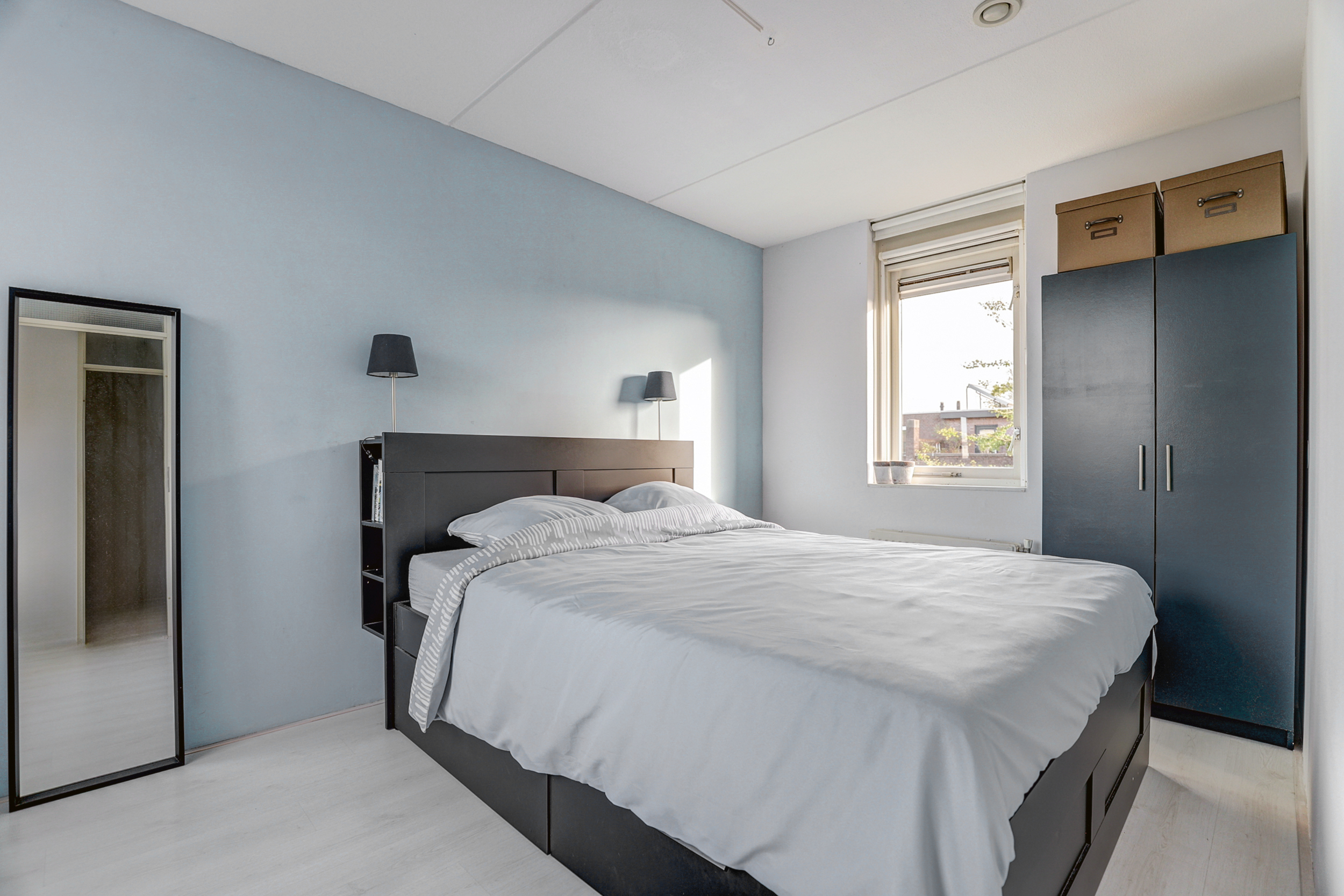 Hier vind je twee comfortabele slaapkamers, beide met veel daglicht. De grootste kamer heeft genoeg ruimte voor een groot bed en een flinke kledingkast. De tweede slaapkamer biedt directe toegang tot het zonnige dakterras, een fijne plek om de dag ontspannen te beginnen of in alle rust af te sluiten.