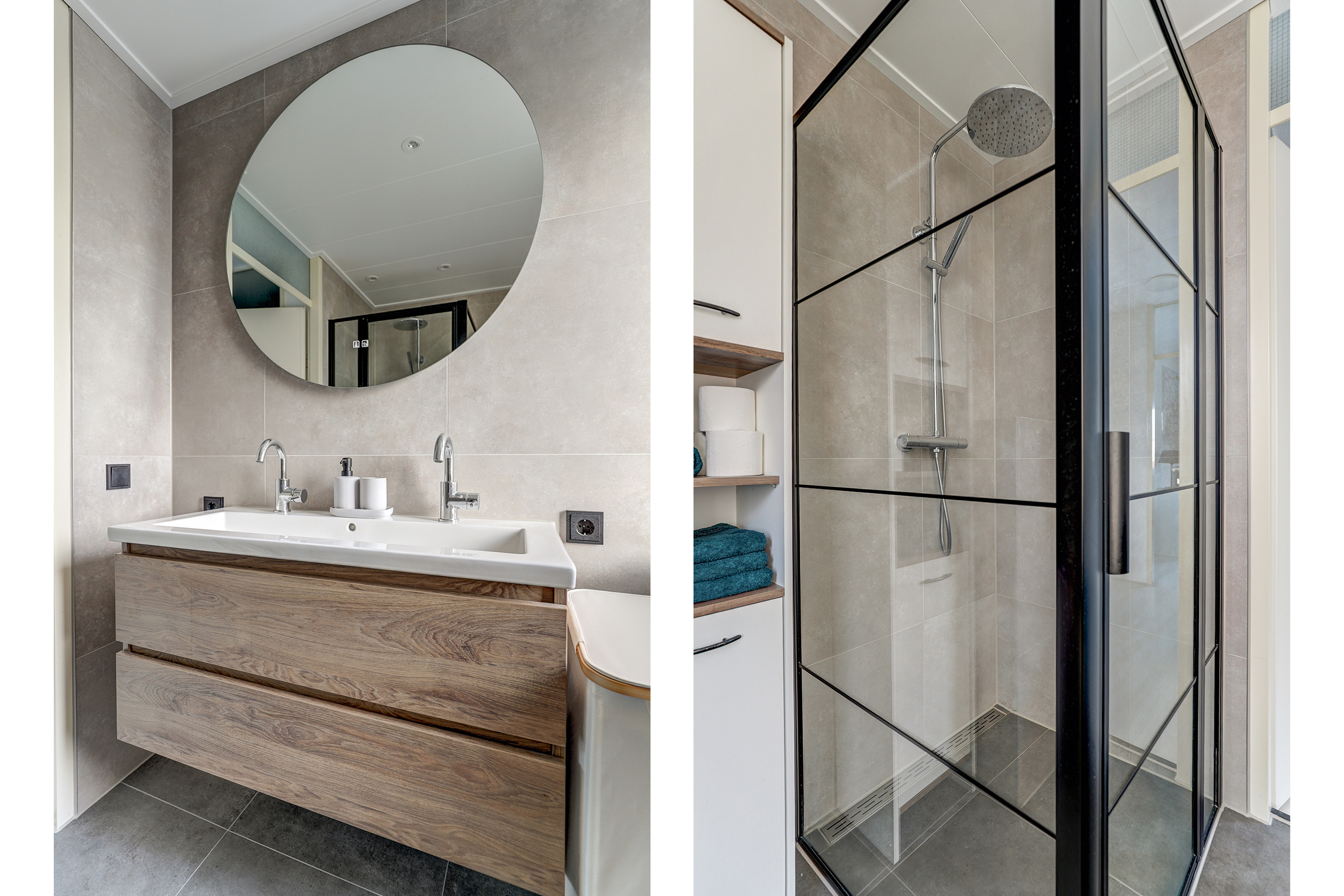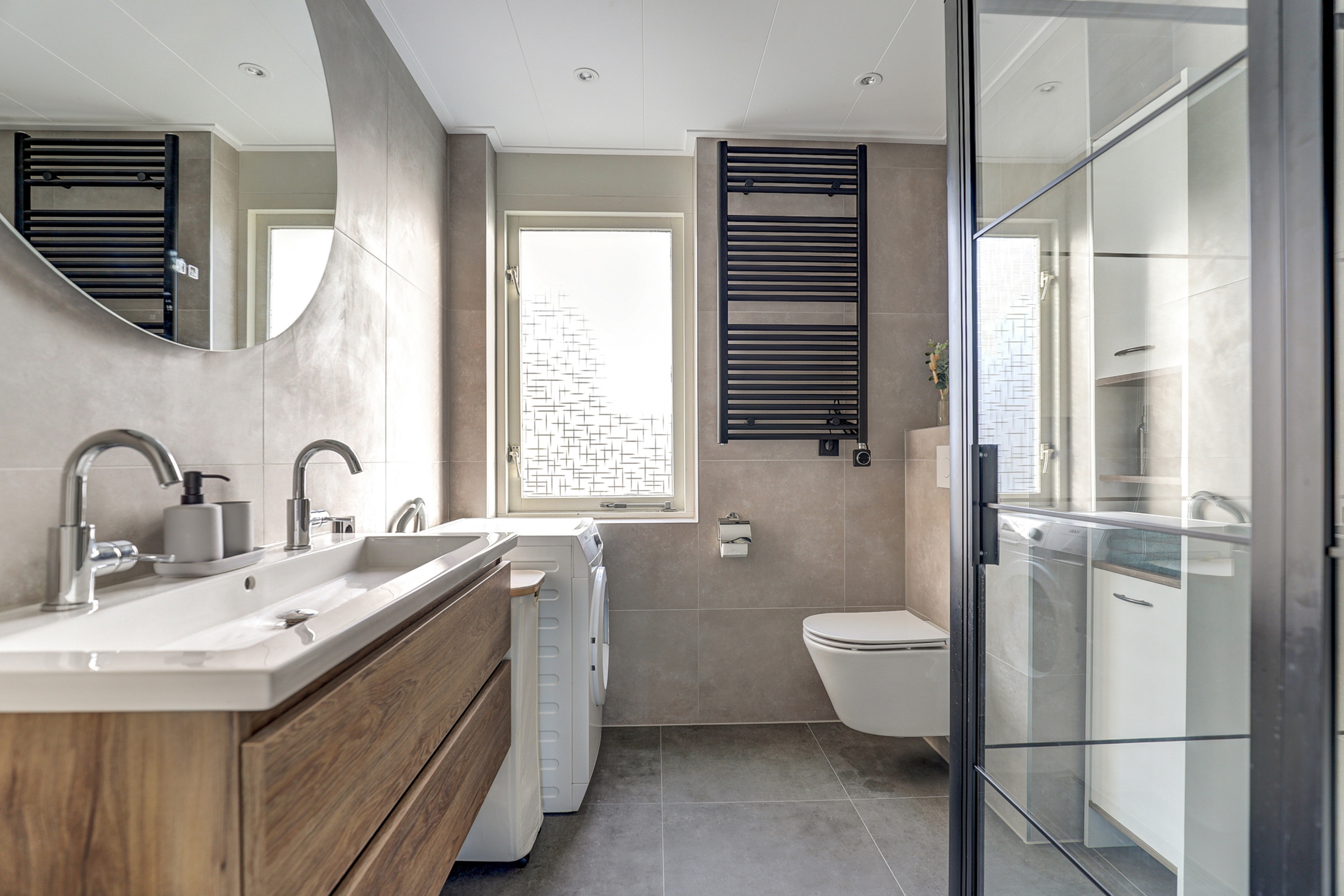 De badkamer is recent helemaal vernieuwd en modern afgewerkt met een inloopdouche, dubbele wastafel, tweede toilet én aansluiting voor de wasmachine.