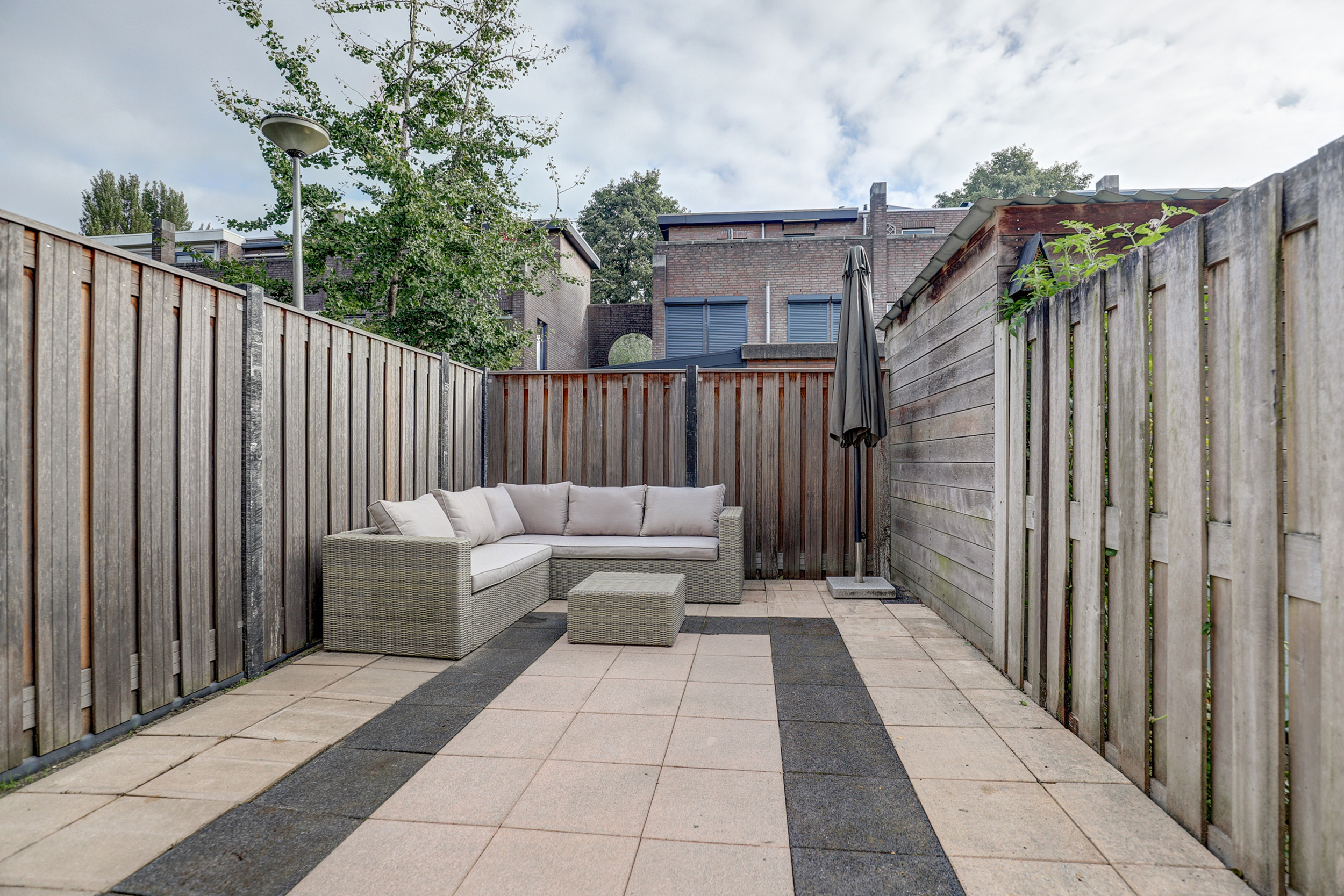 De achtertuin is onderhoudsarm en biedt volop privacy, ideaal voor een gezellige loungehoek. Via de achterom kom je makkelijk bij je berging, waar je fietsen of seizoensspullen kwijt kunt.