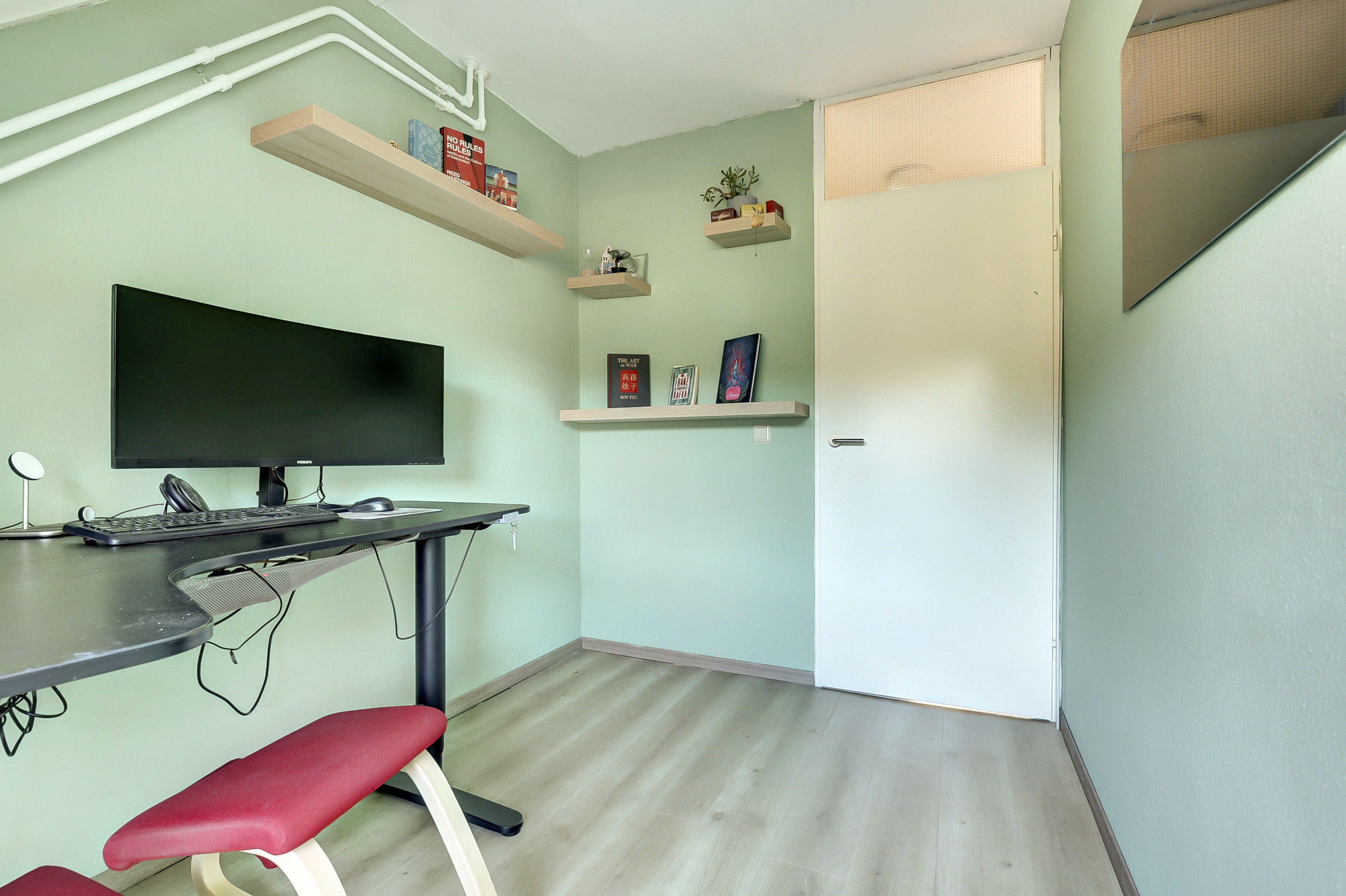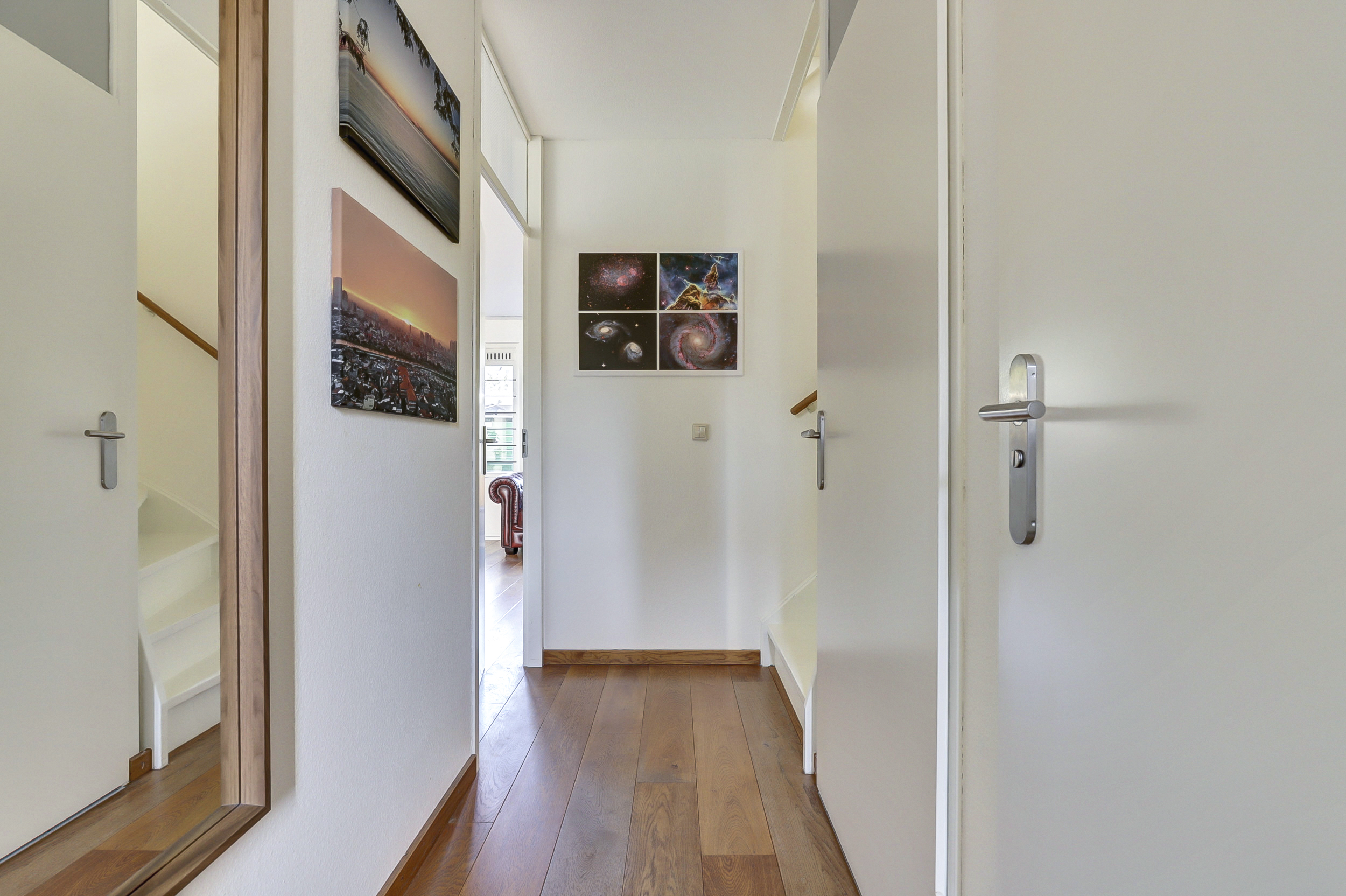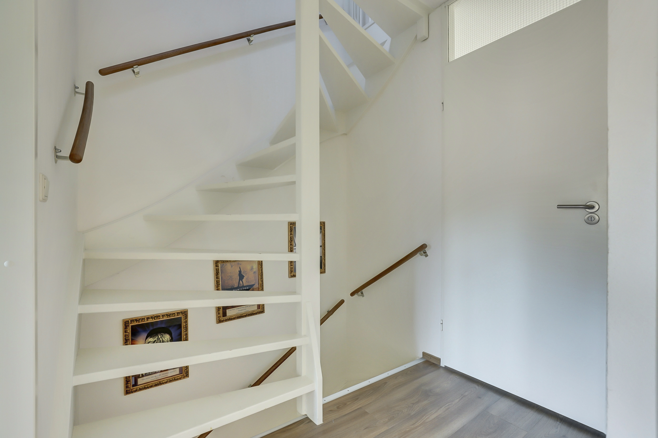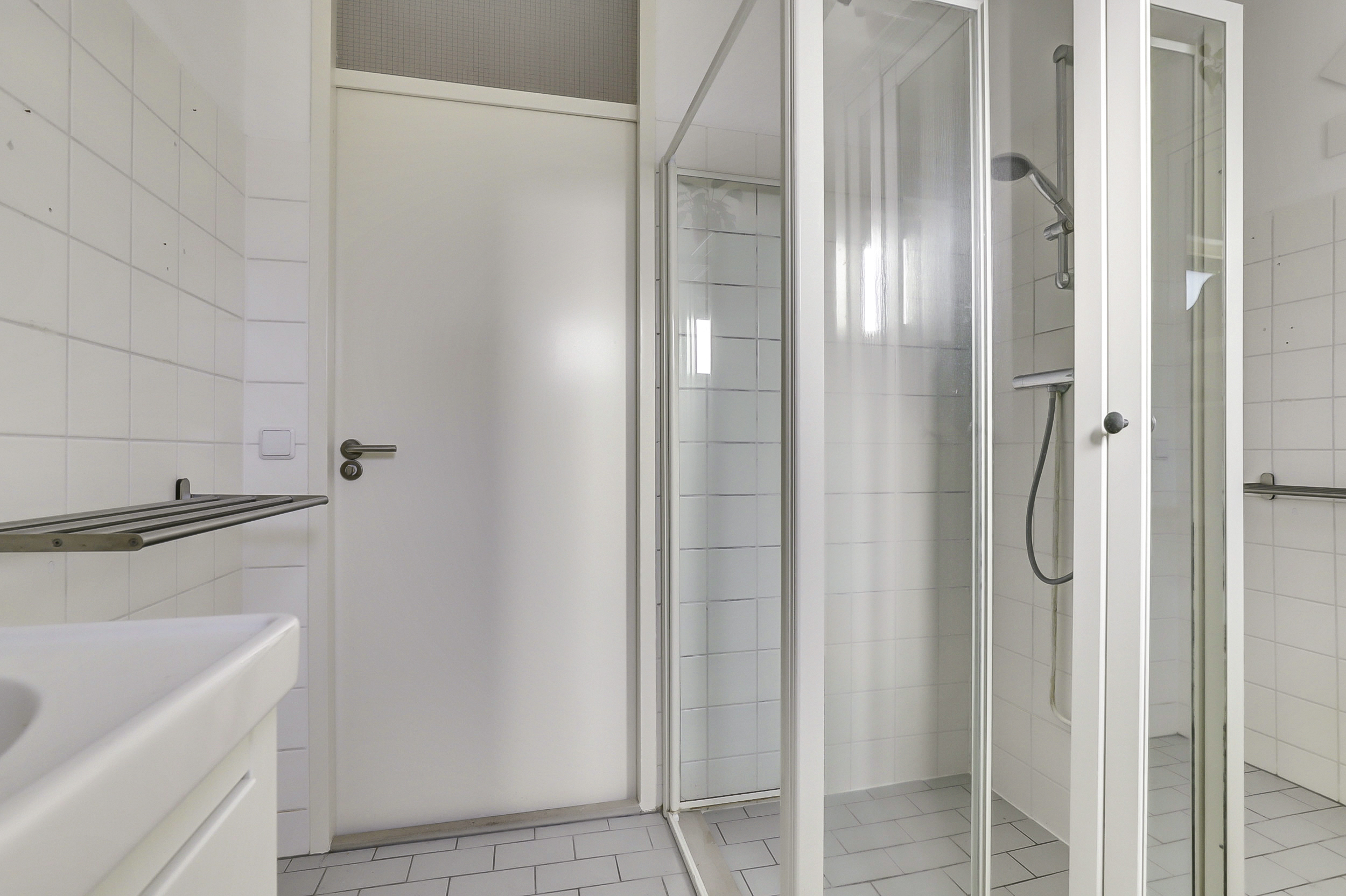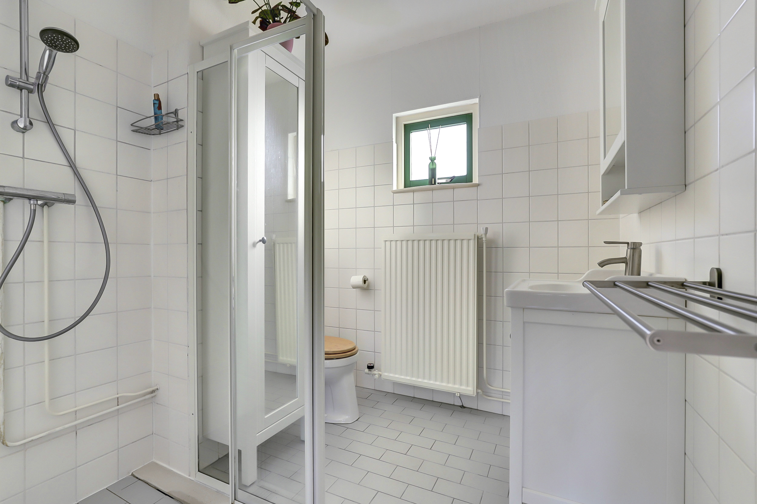 Op de eerste verdieping bevinden zich drie slaapkamers, elk met een praktische indeling en voorzien van laminaatvloeren. De lichte badkamer is compleet uitgerust met een inloopdouche, wastafel en toilet. Dankzij de slimme indeling is de ruimte optimaal benut en voelt de verdieping overzichtelijk en ruim aan.