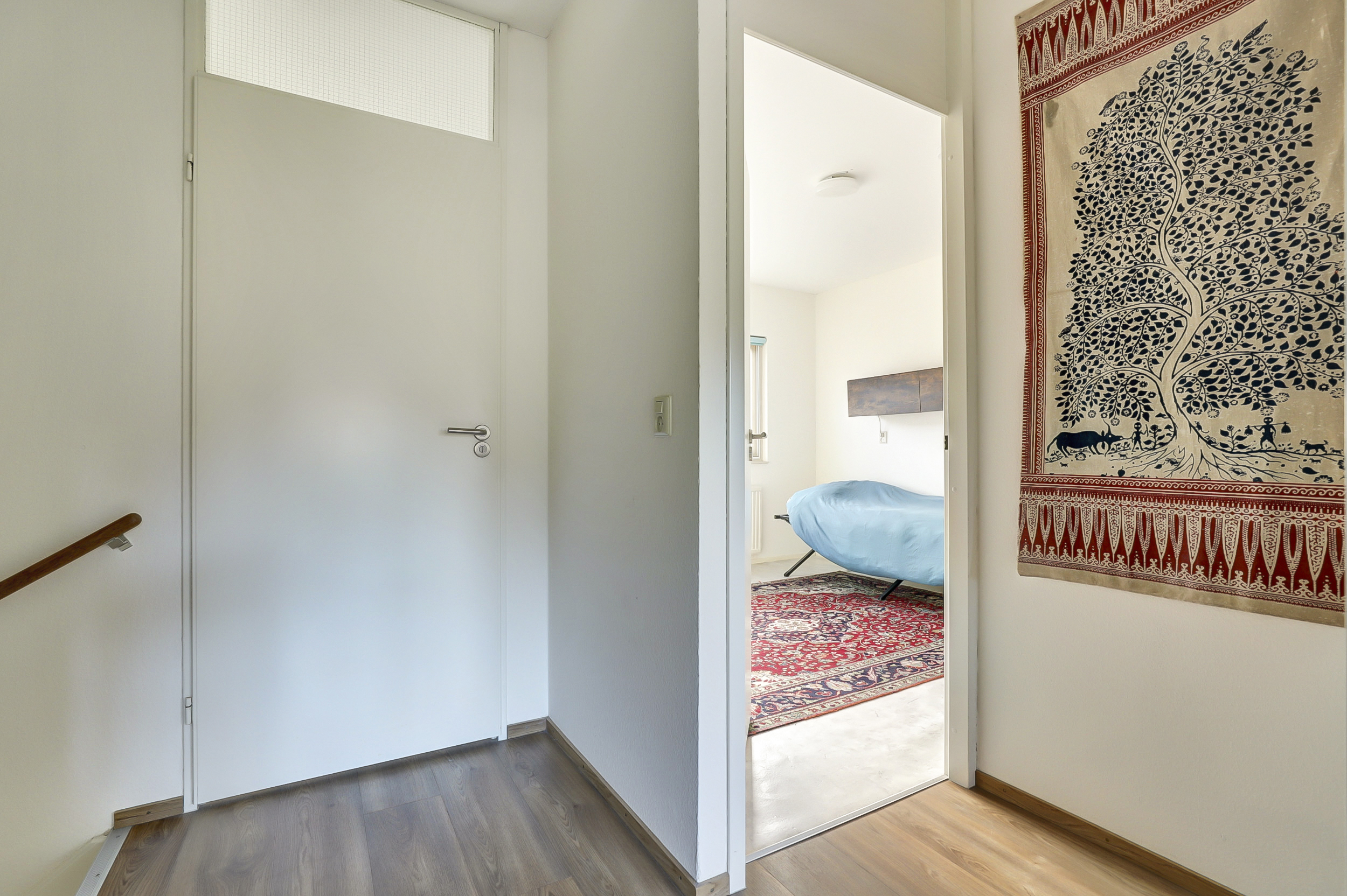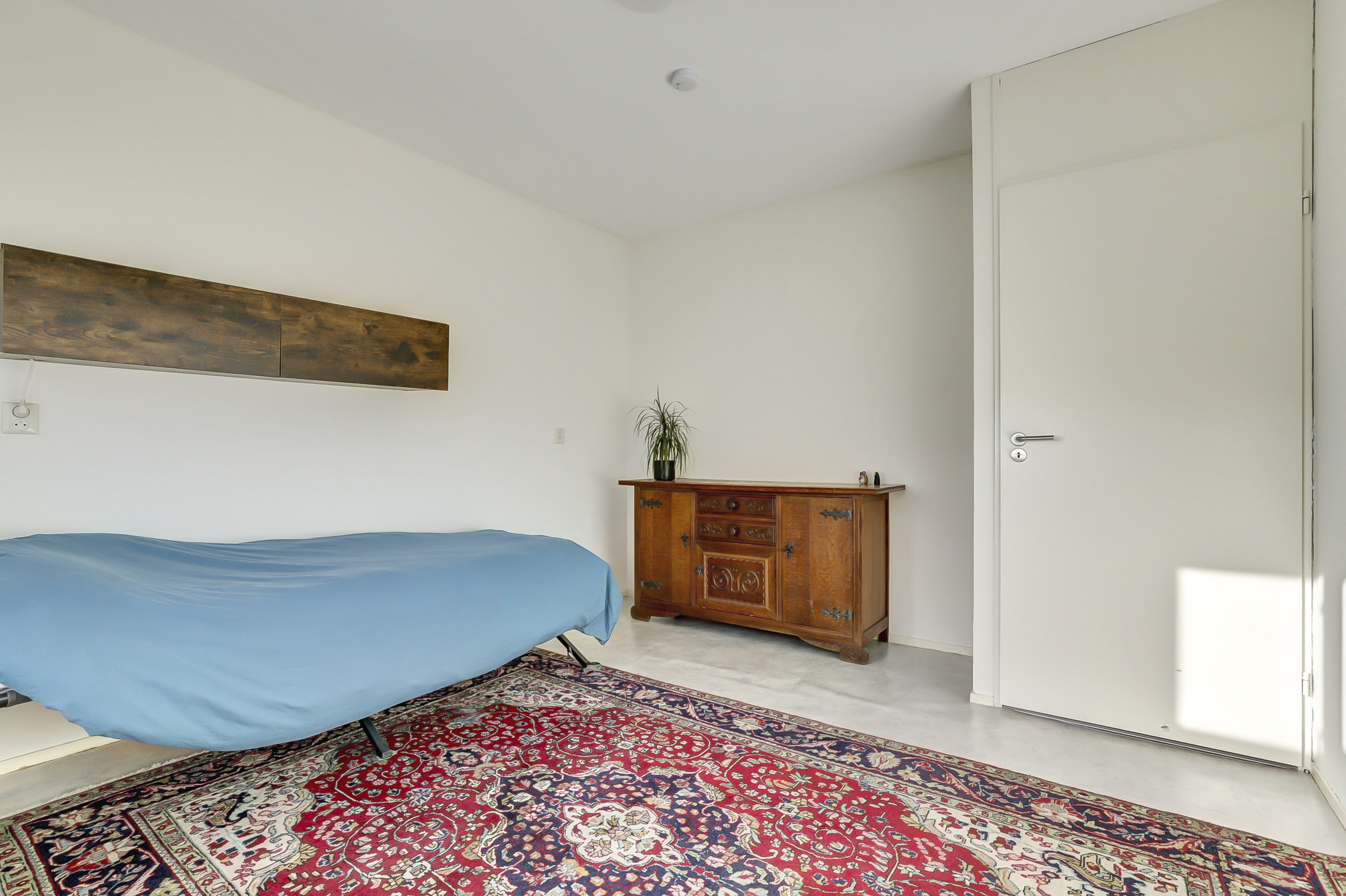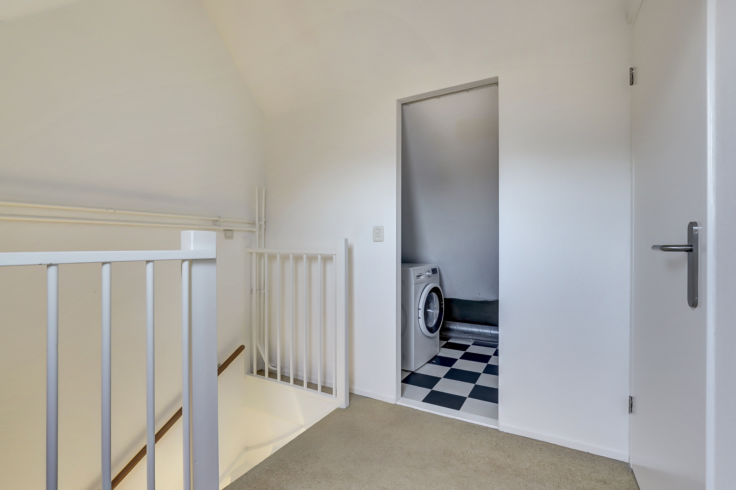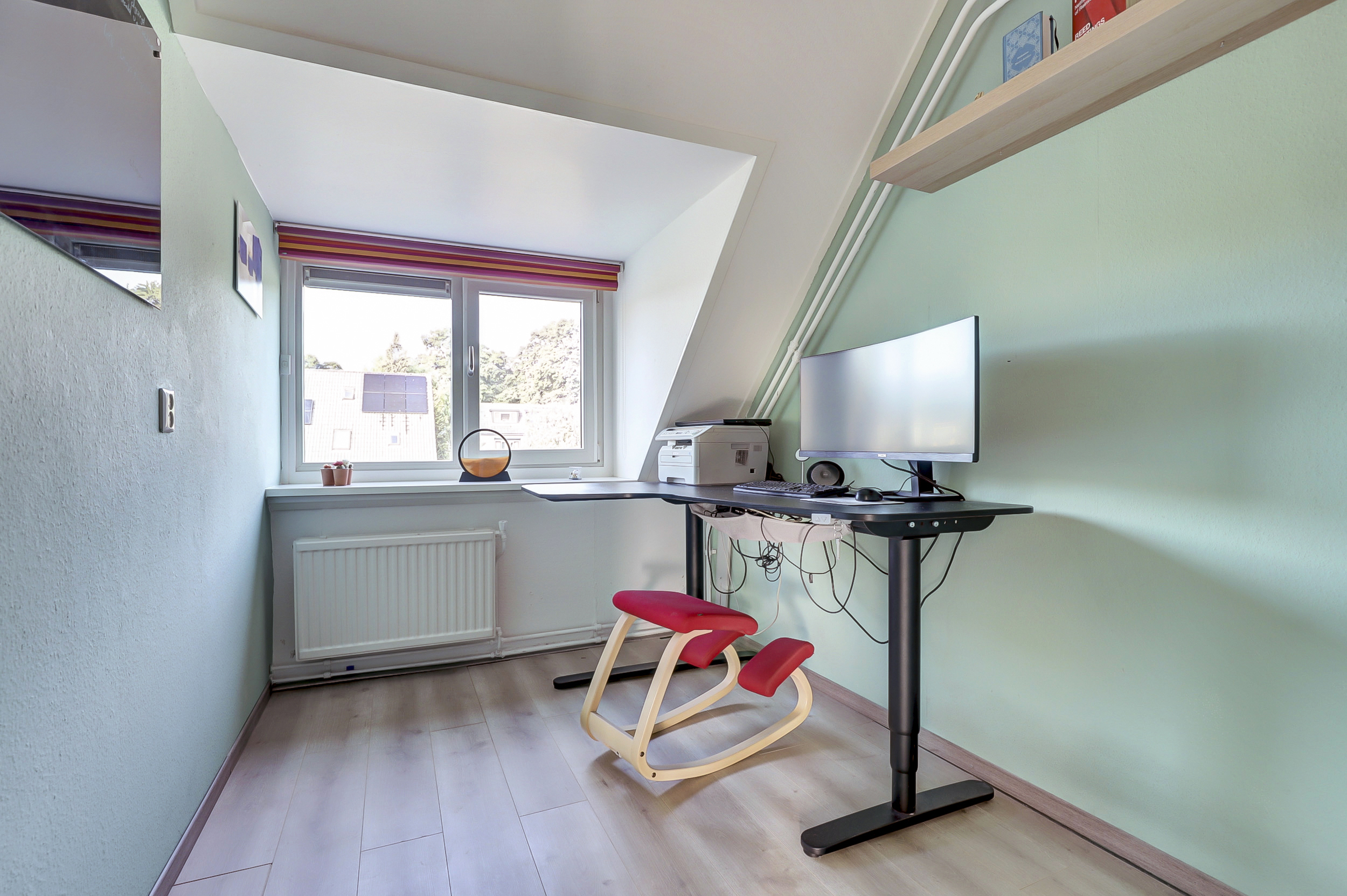 De zolderverdieping biedt een royale vierde slaapkamer. Via de overloop is er toegang tot de wasruimte en de slaapkamer. Dankzij de aanwezige dakramen valt er veel daglicht binnen, waardoor de ruimte veelzijdig te gebruiken is, bijvoorbeeld als master bedroom, werkkamer of hobbyruimte. Het tapijt geeft de verdieping een warme uitstraling.