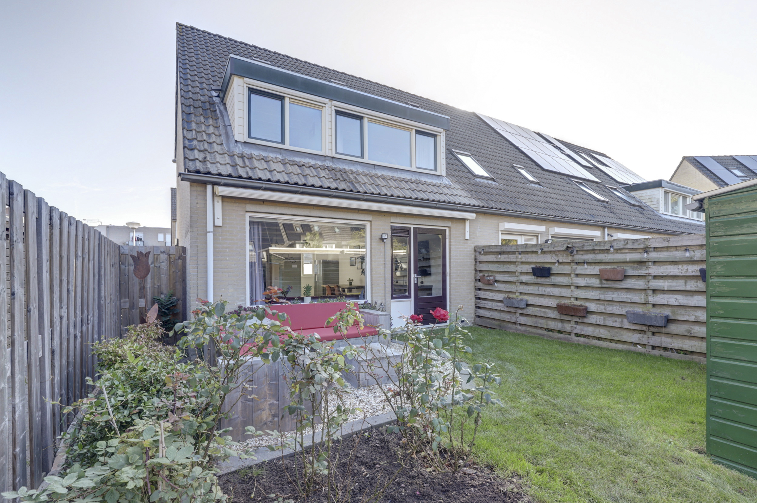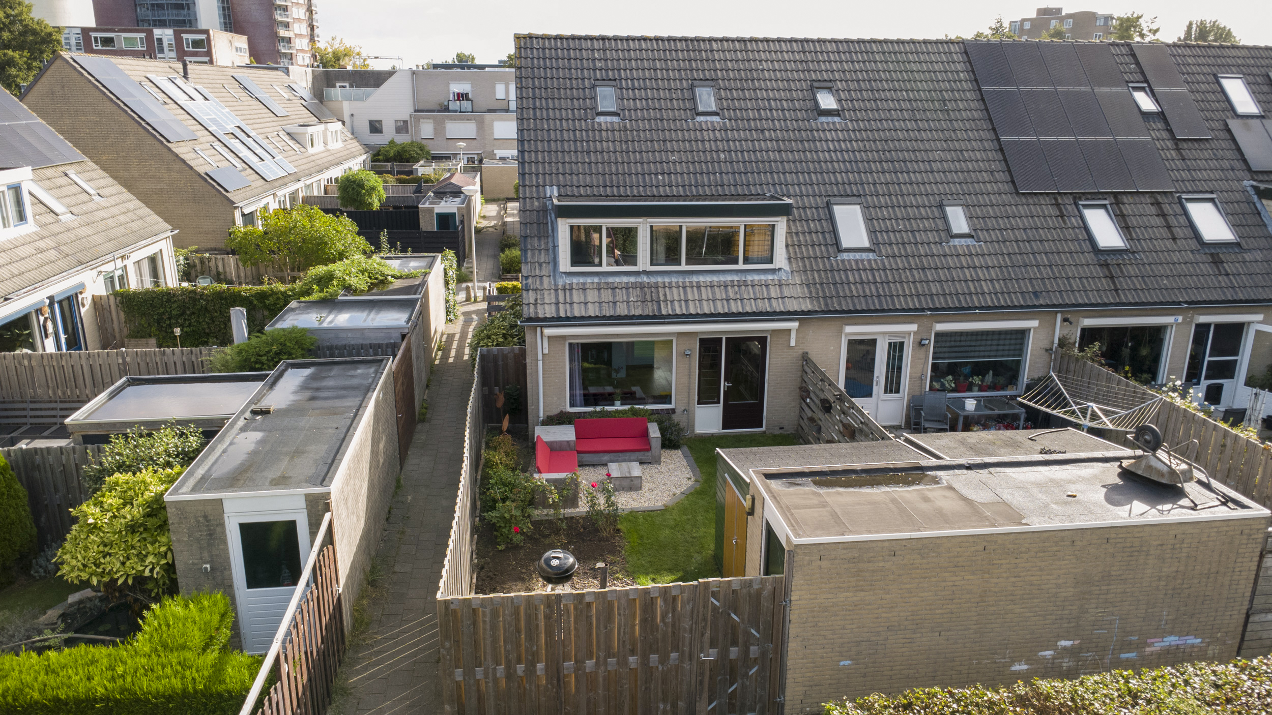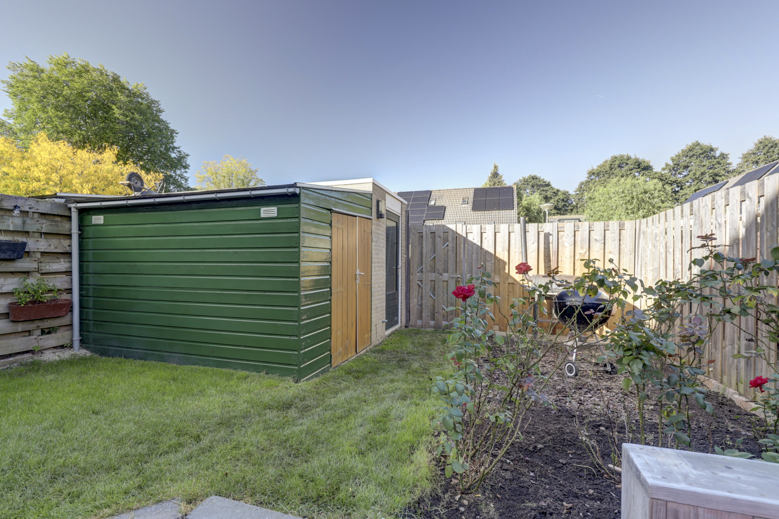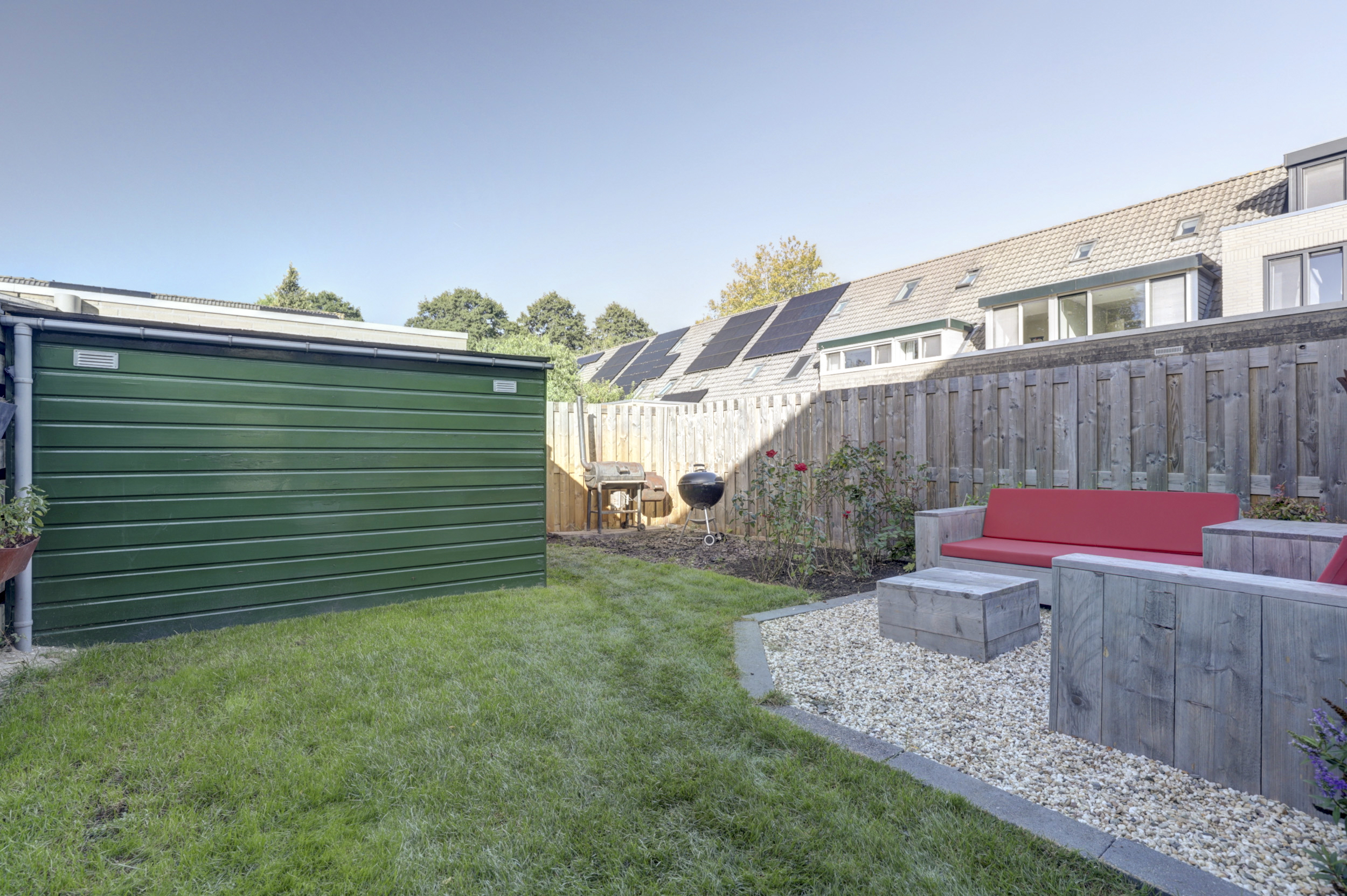 De achtertuin is fraai aangelegd en biedt volop mogelijkheden om buiten te genieten. Met een terrasgedeelte en een stuk gras is er ruimte voor zowel ontspanning als spelen. Dankzij de ligging is er veel zon in de tuin, waardoor je hier van het vroege voorjaar tot de late zomer heerlijk buiten kunt zitten. Achterin staat een ruime, vrijstaande berging die is verdeeld in twee compartimenten, elk met een eigen deur- praktisch voor het stallen van fietsen, tuingereedschap of het creëren van extra opslag.