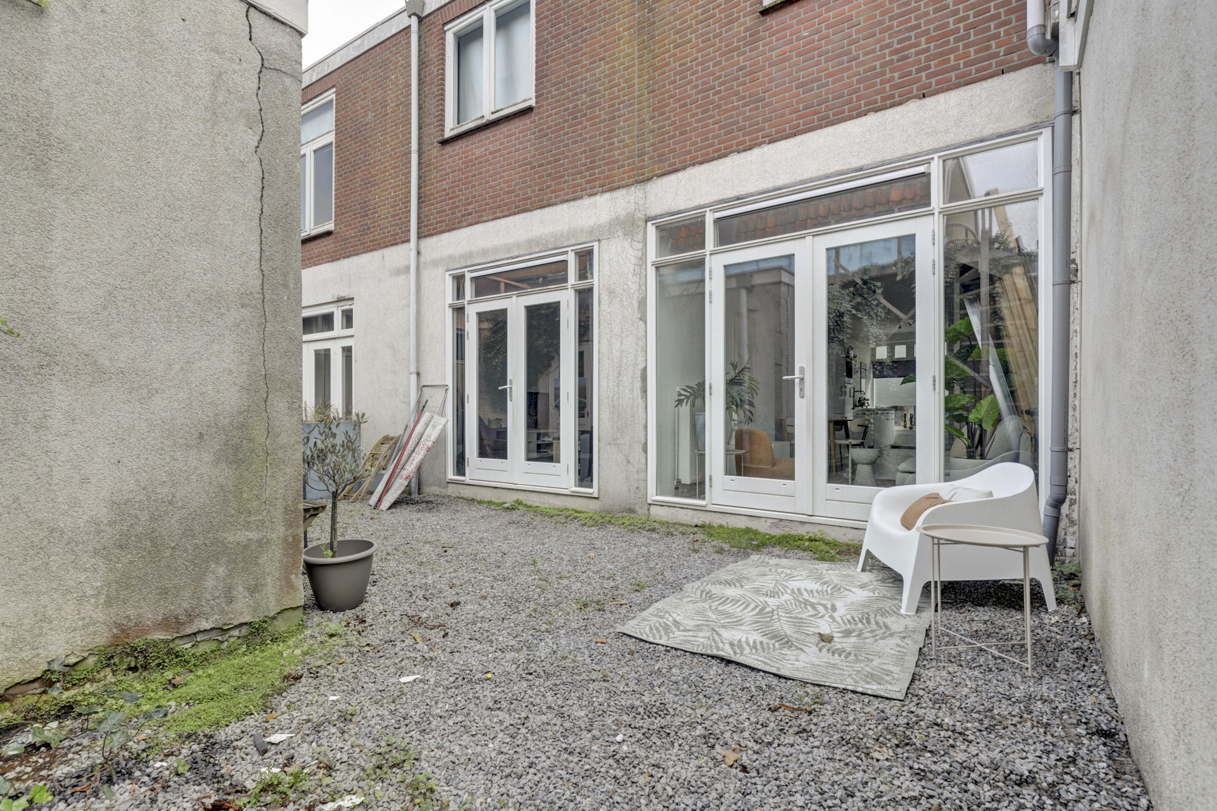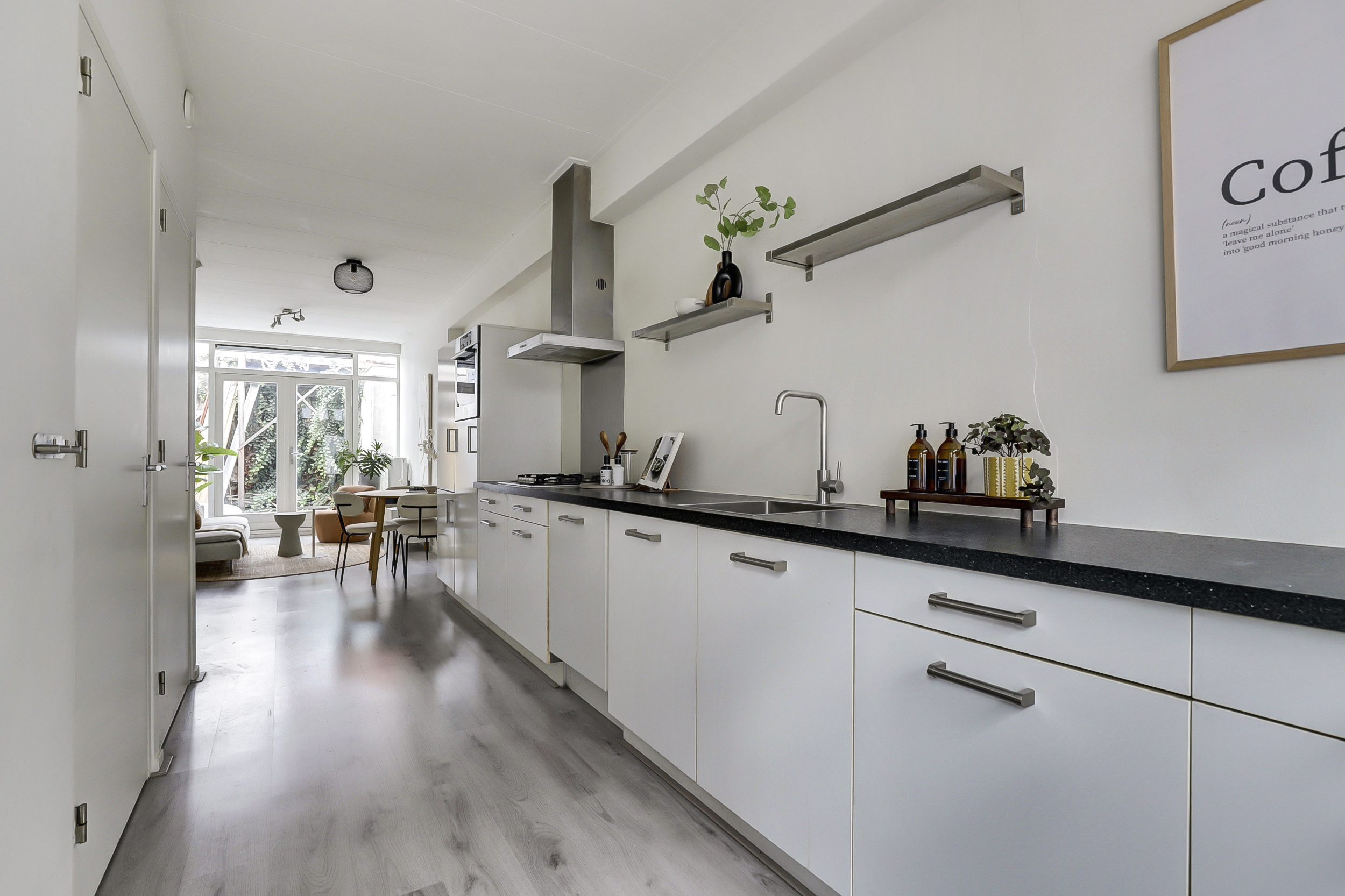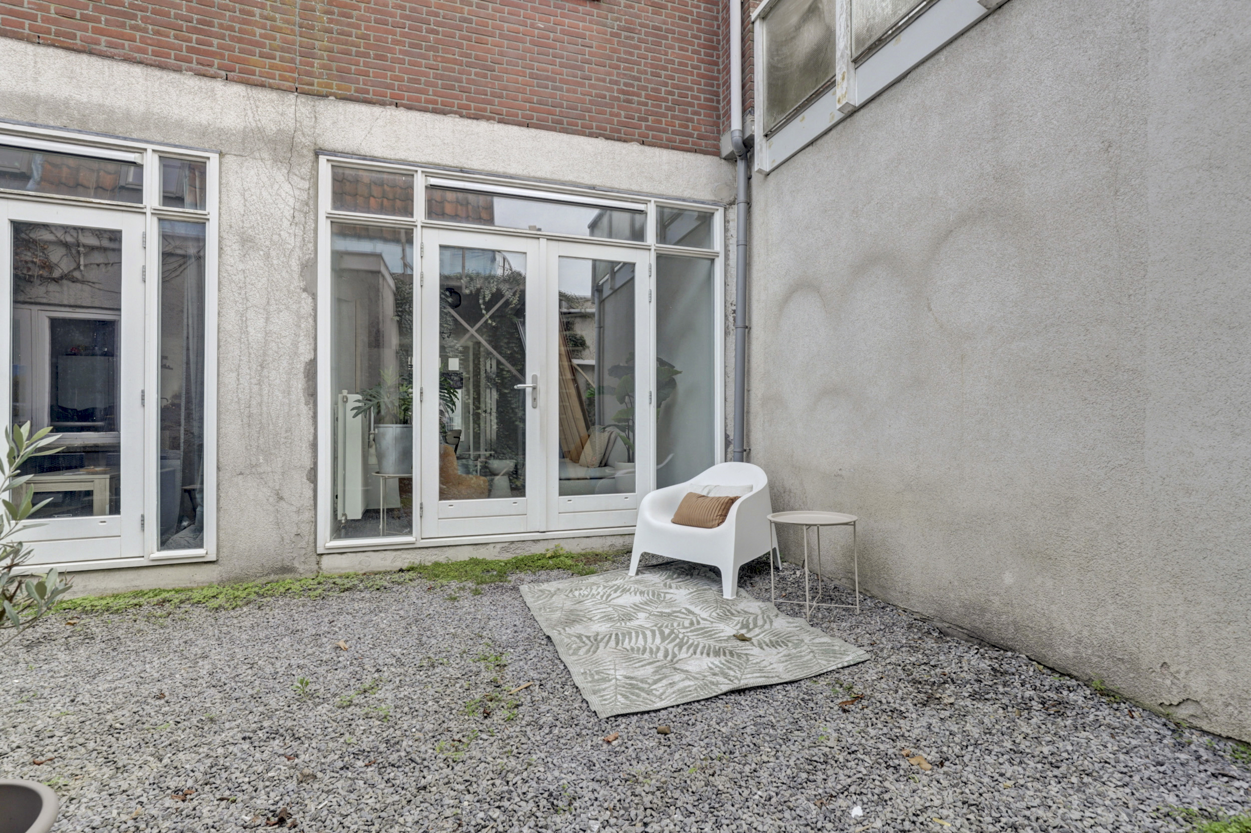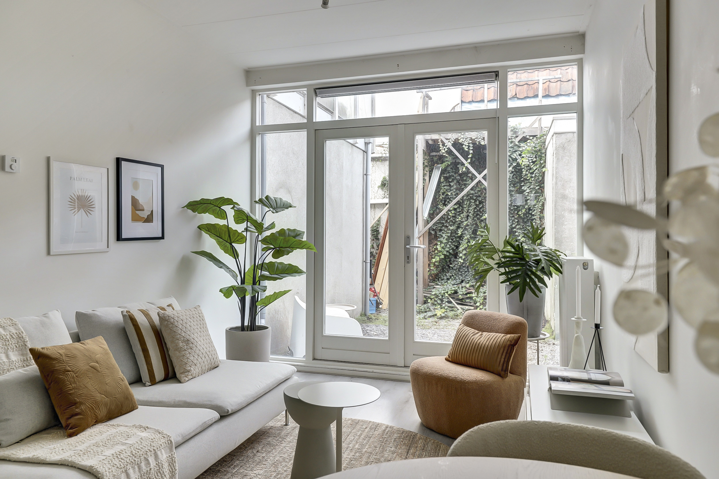 De woonkamer, gelegen aan de achterzijde van de woning, biedt middels openslaande deuren toegang tot de stadstuin. Vanuit de woonkamer leidt een vaste trap naar de eerste verdieping. De gehele begane grond is voorzien van een laminaatvloer en strak afgewerkte wanden en plafonds.