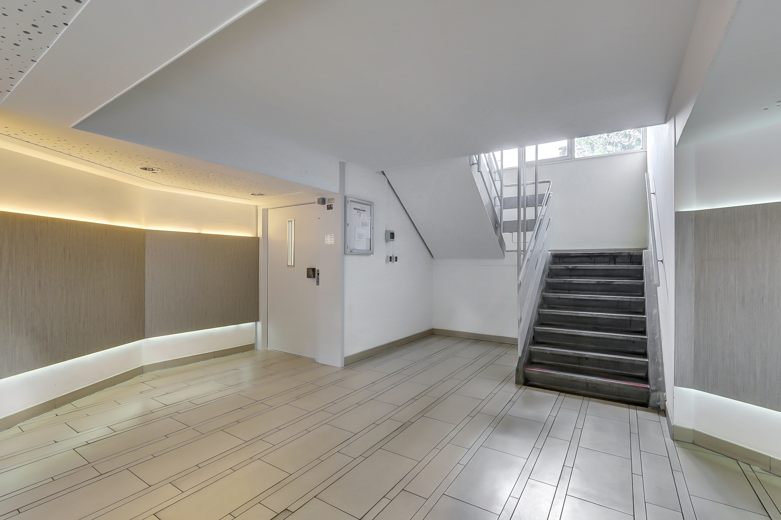 Je komt binnen via de afgesloten entree met intercom, brievenbussen en toegang tot de lift, het trappenhuis en je eigen inpandige berging.