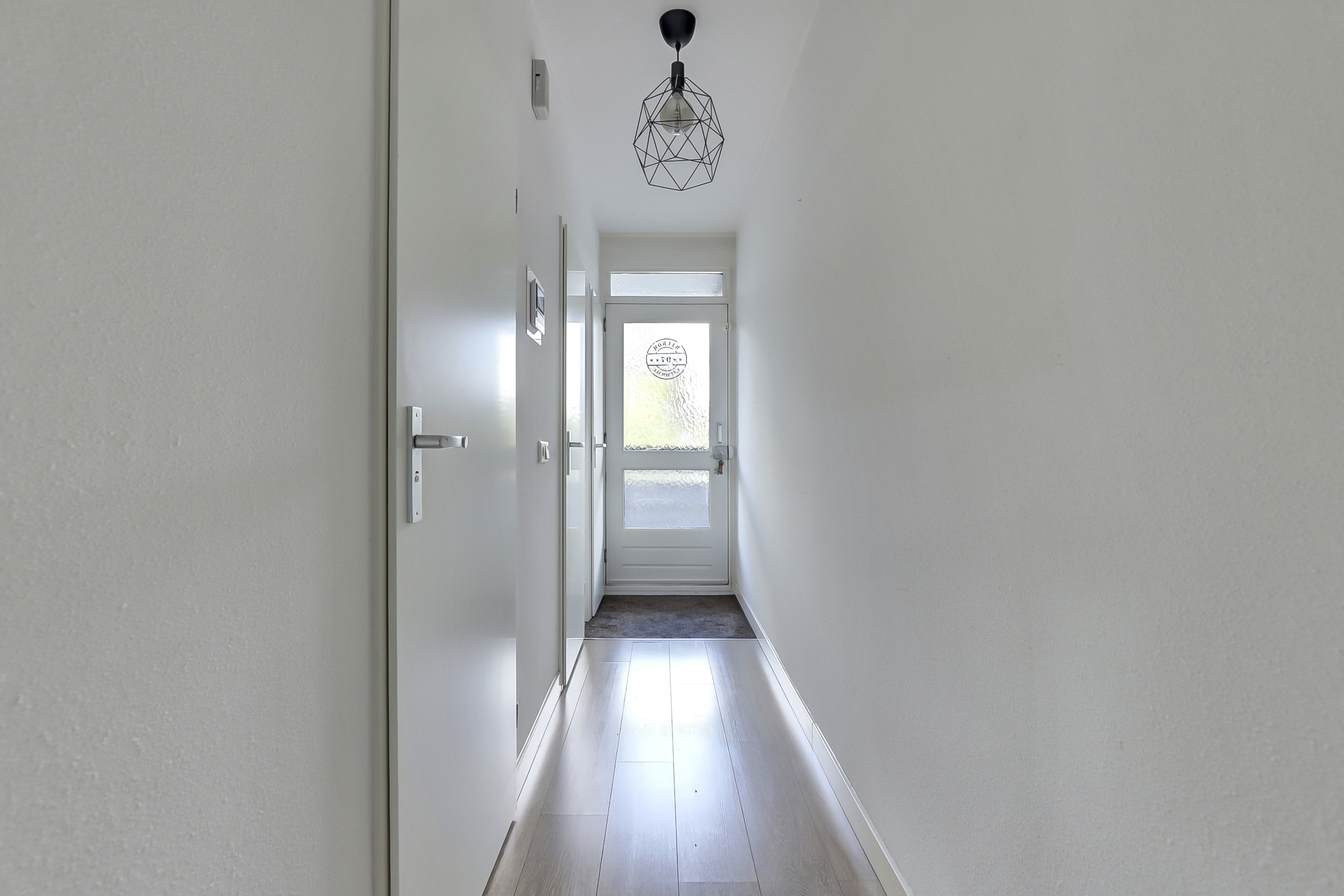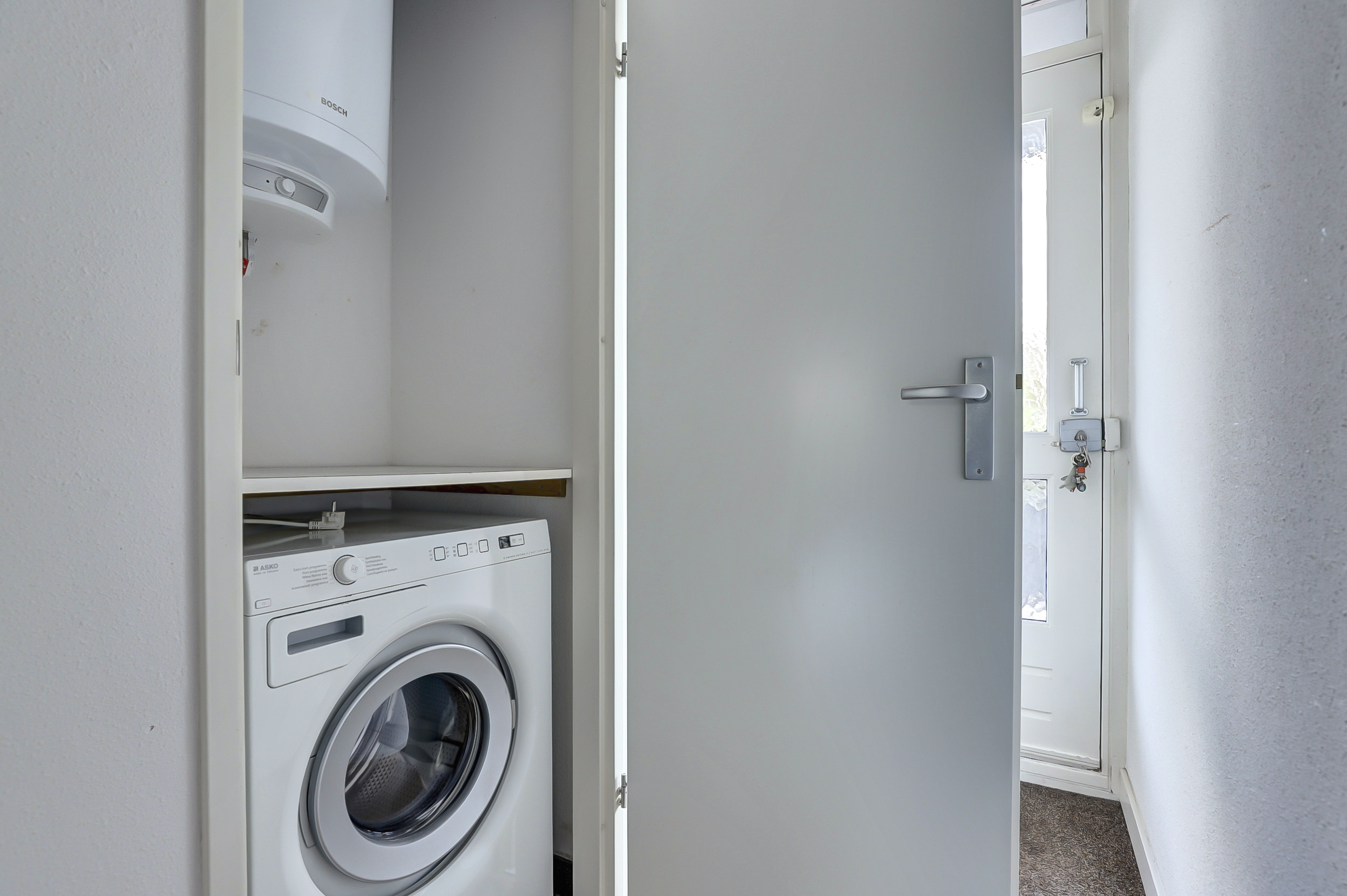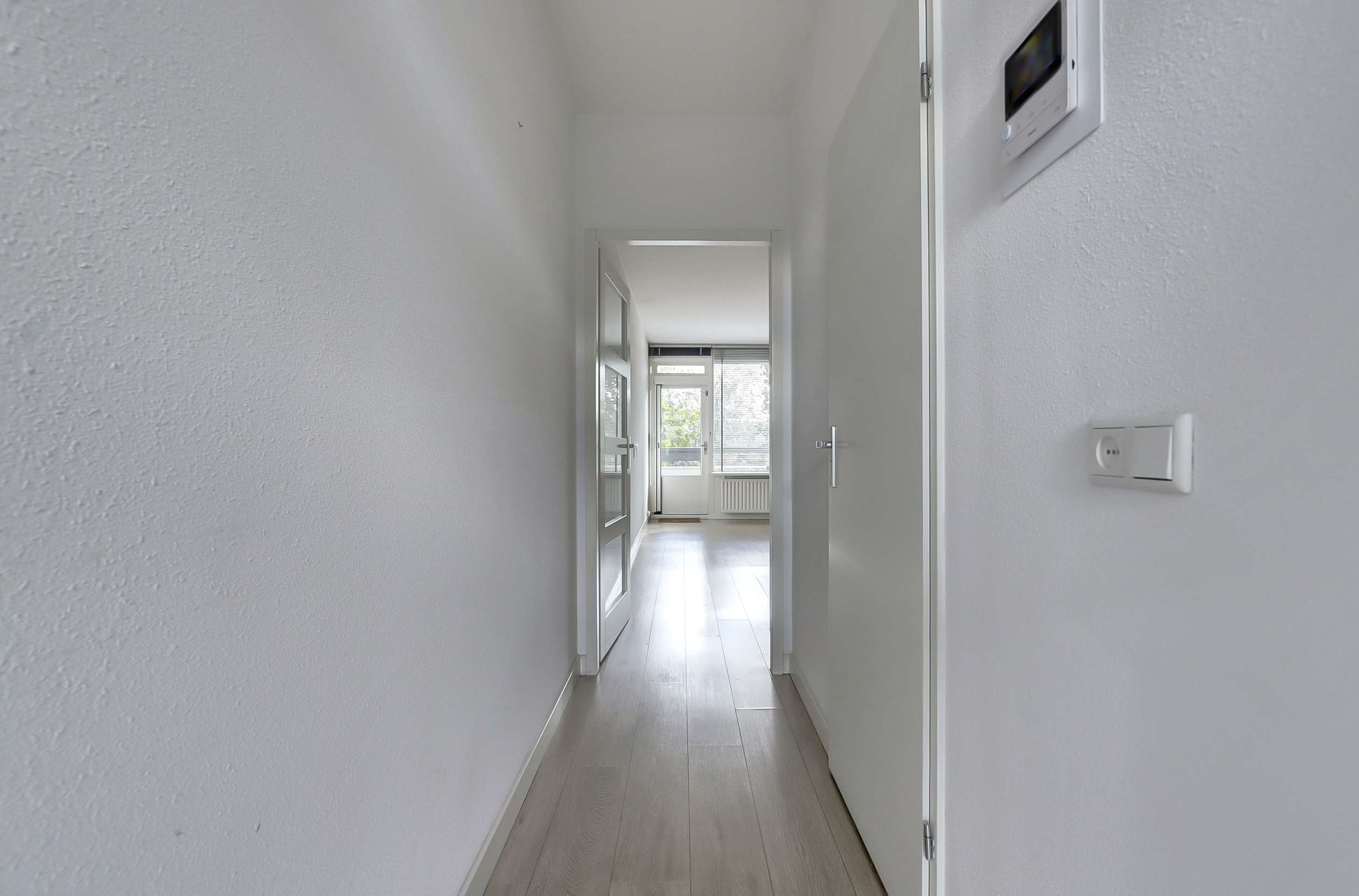 De entree van het appartement ligt aan de galerijzijde. In de hal is ruimte voor een garderobe en een kast met de aansluiting voor je wasmachine en cv-ketel.