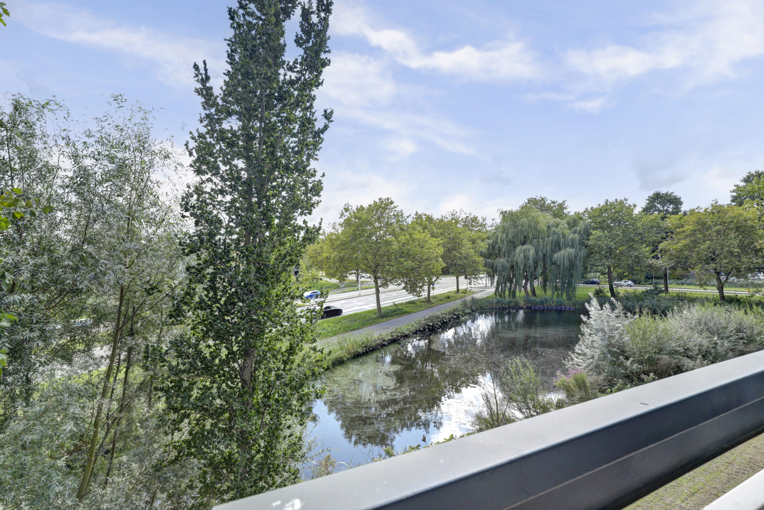 Aan de achterzijde ligt het brede balkon over de volle breedte van het appartement. Hier geniet je van de rust, het uitzicht op groen en water, en de ochtend- of avondzon. Een heerlijke plek om je dag te beginnen of juist af te sluiten.