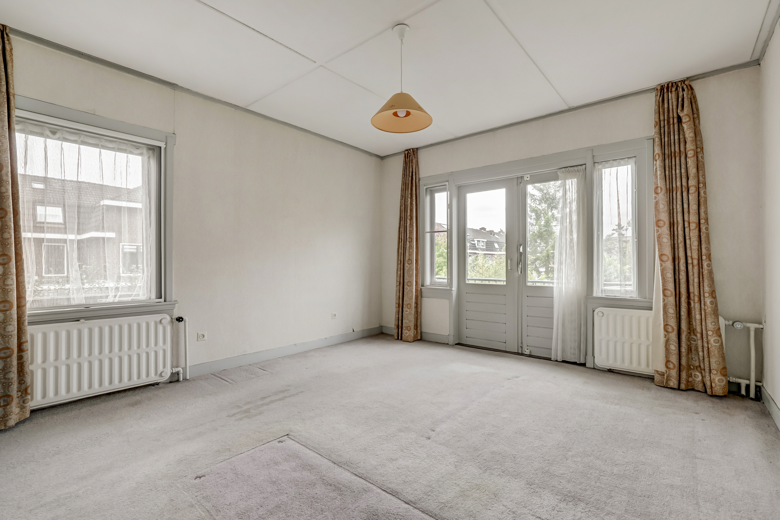 De woning heeft maar liefst ca. 146 m2 woonoppervlak, beschikt over een ruime doorzonkamer met sfeervolle haard met Noorse Lei, een gesloten keuken en toilet op de begane grond, vier volwaardige slaapkamers op de eerste en tweede etage, een badkamer, een balkon dat uitkijkt op de achtertuin met achterom en berging. Het huis, dat is opgetrokken uit rode baksteen met een schilddak van rode Tuile de Nord is in goede staat. De bewoners hebben er met veel plezier bijna 53 jaar gewoond. Het interieur is derhalve gedateerd.