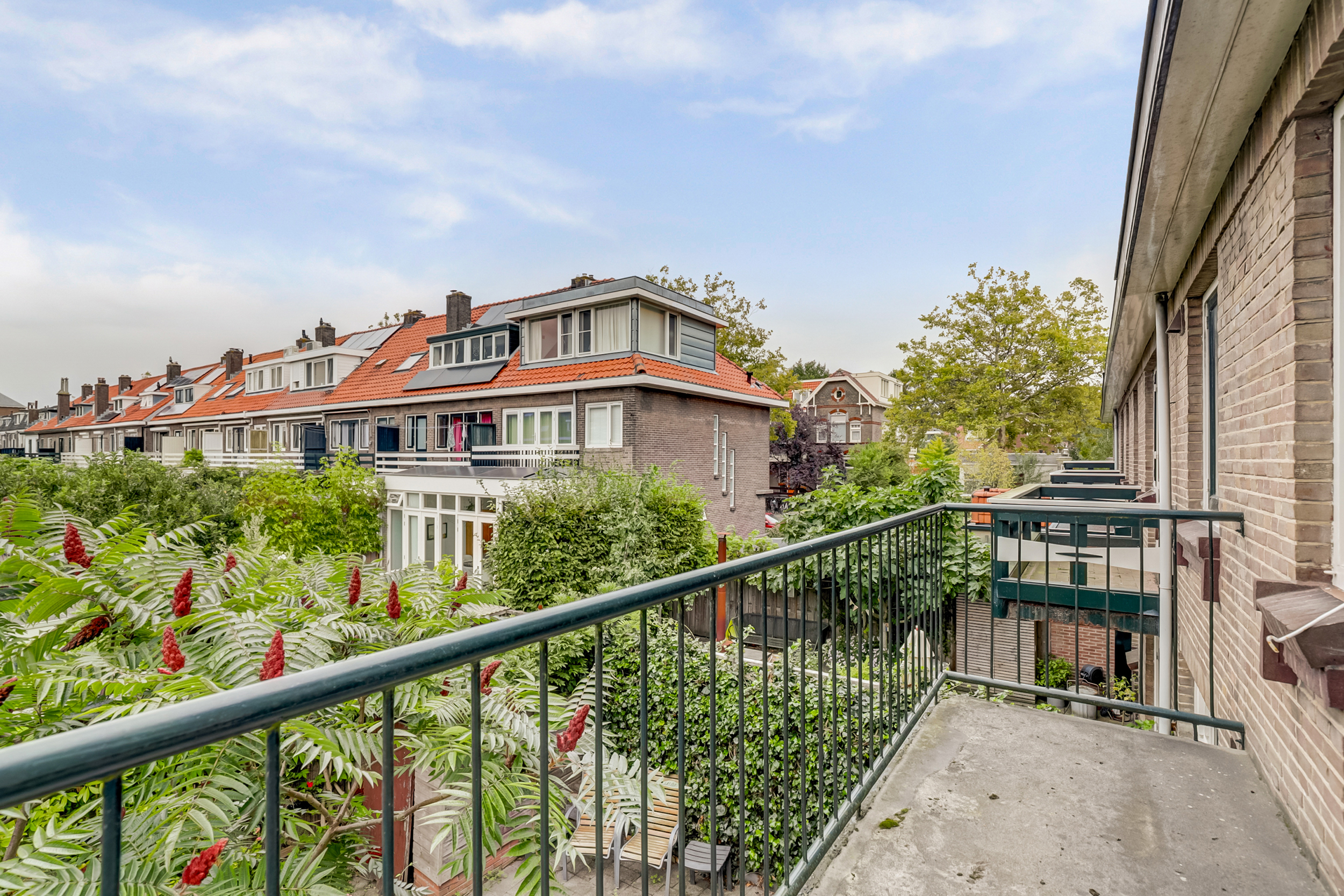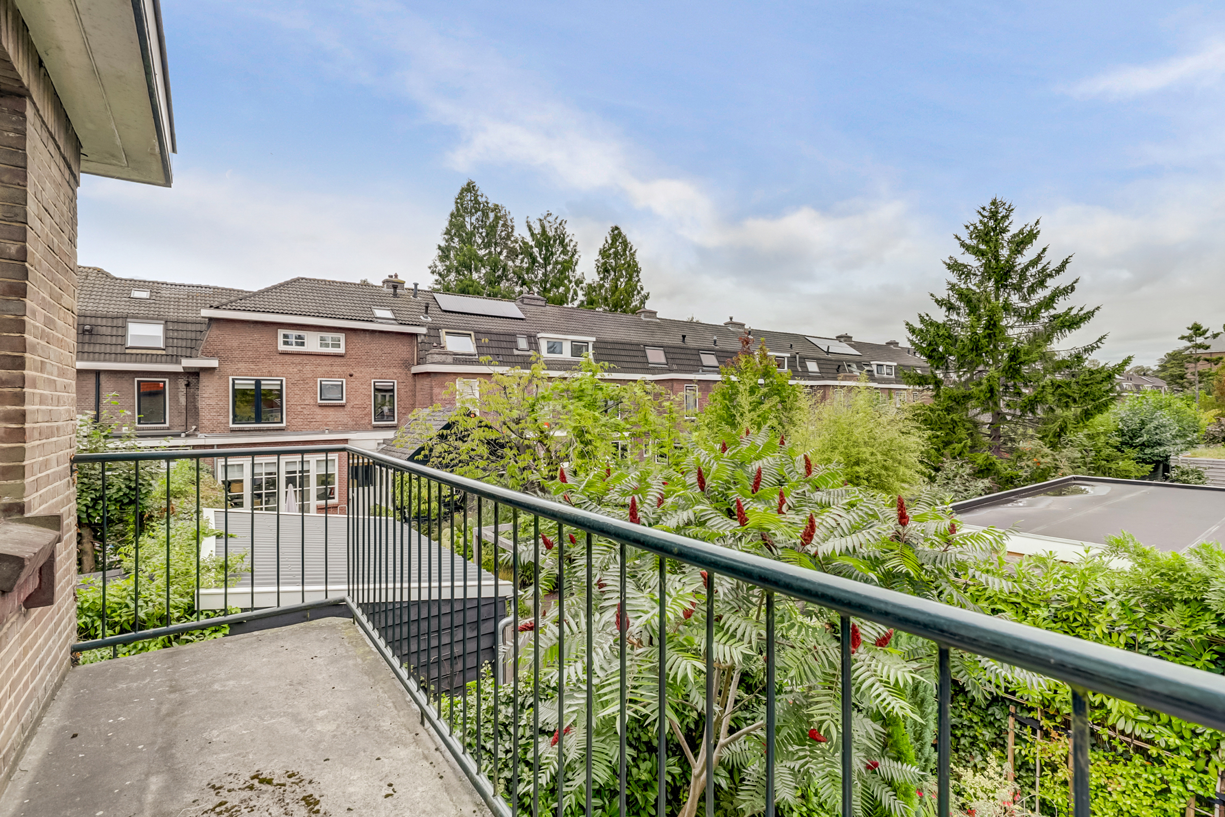 Via de overloop zijn drie slaapkamers, de badkamer en de afgesloten trapopgang naar de tweede etage bereikbaar. De grootste slaapkamer ligt aan de tuinzijde en beschikt over dubbele openslaande deuren naar een breed balkon over de volle achtergevel. Deze slaapkamer heeft twee inbouwkasten onder de zoldertrap. De badkamer is bijzonder ruim en voorzien van een betonnen vloer met natuurstenen tegels, inloopdouche, wastafelmeubel, een tweede toilet en wasmachineaansluiting. Twee slaapkamers liggen aan de voorzijde van de woning en bieden uitzicht op de straat.