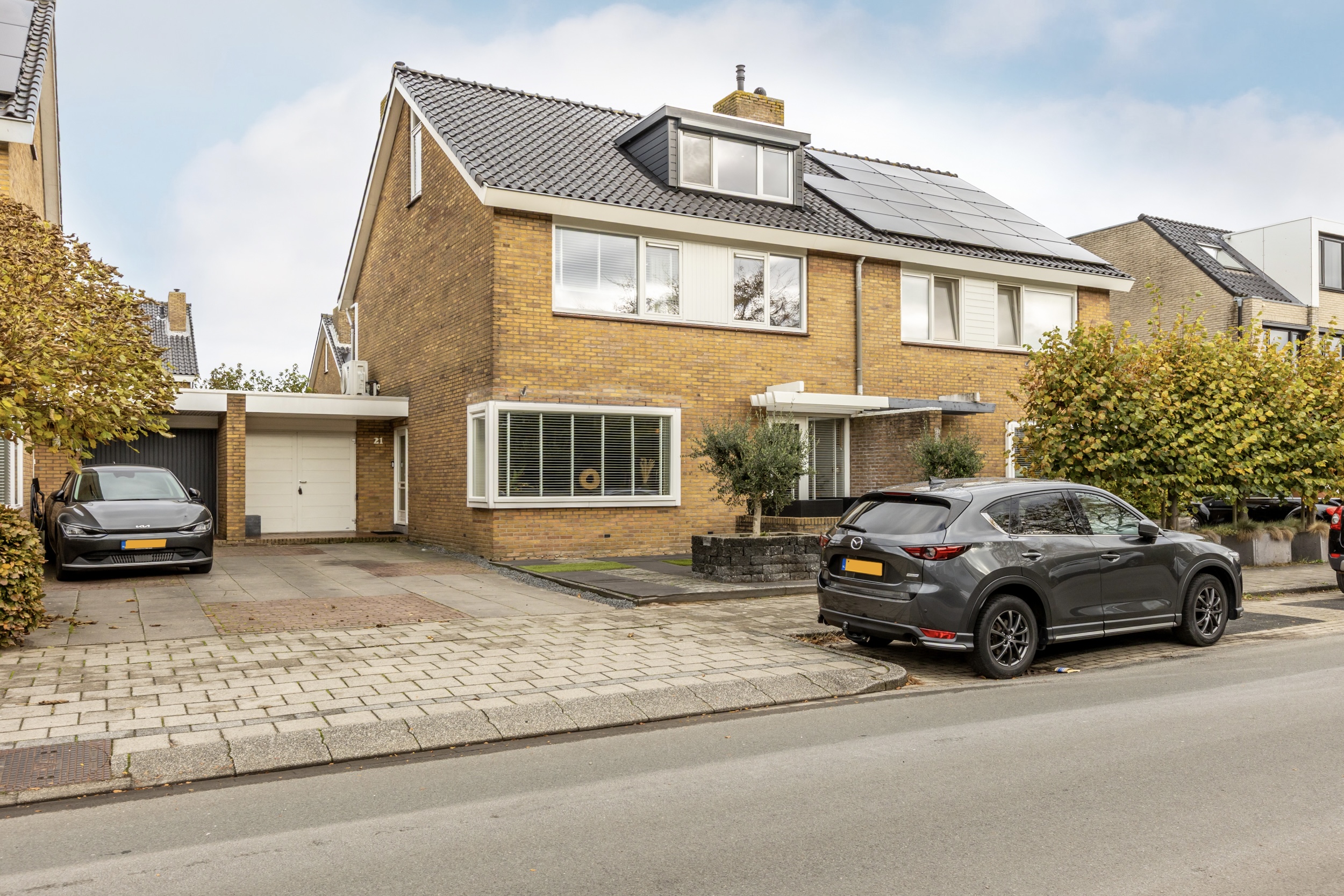 De woning beschikt over een fraai aangelegde voortuin met gezellig zitje, direct bereikbaar vanuit de woonkamer. Daarnaast zijn er twee parkeerplaatsen op eigen terrein en is er toegang tot de inpandige fietsenberging. De voormalige garage is volledig omgebouwd en biedt nu extra opslagruimte/fietsenberging én een multifunctionele (slaap)kamer/praktijkruimte – ideaal voor thuiswerken, salon of gastenverblijf.