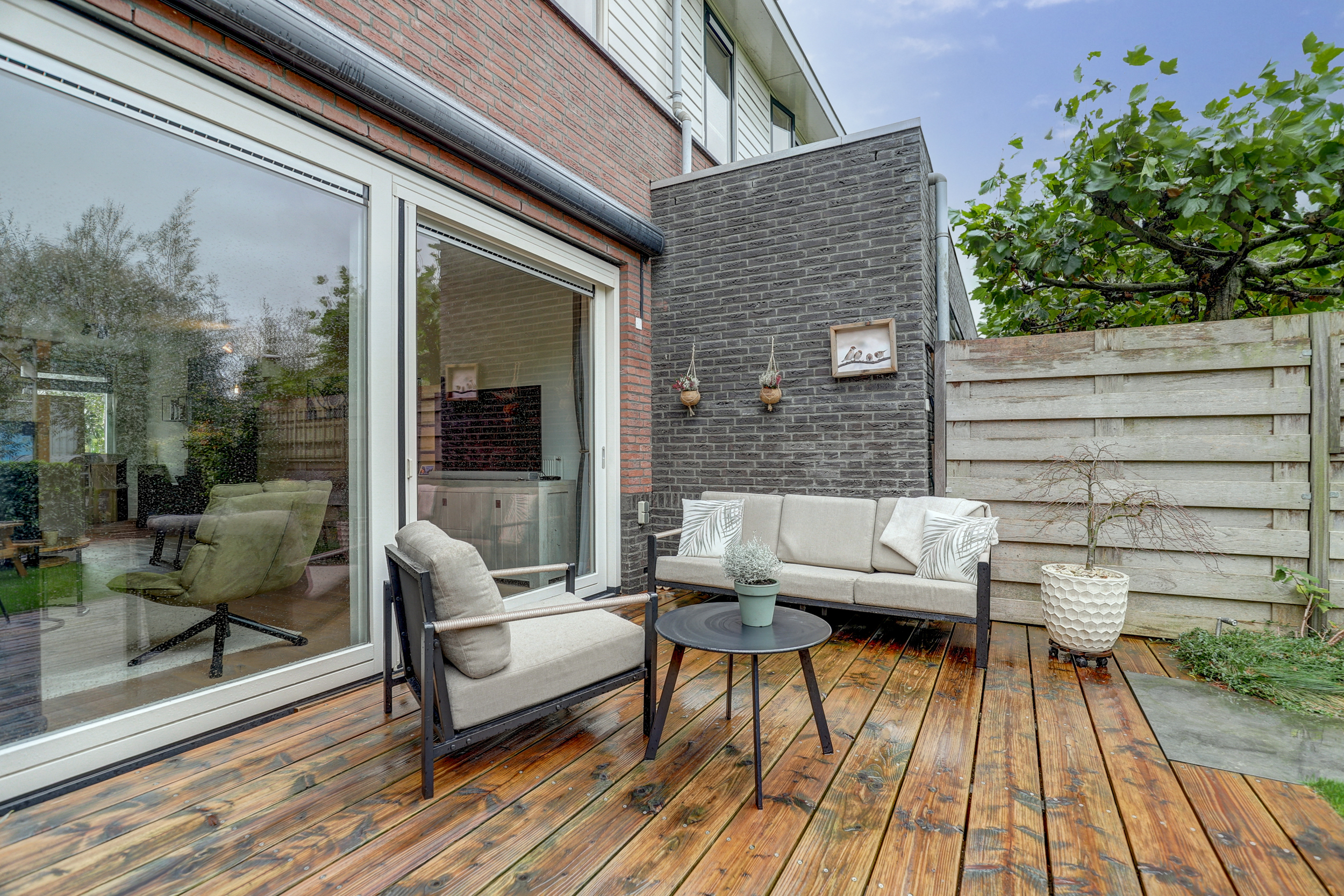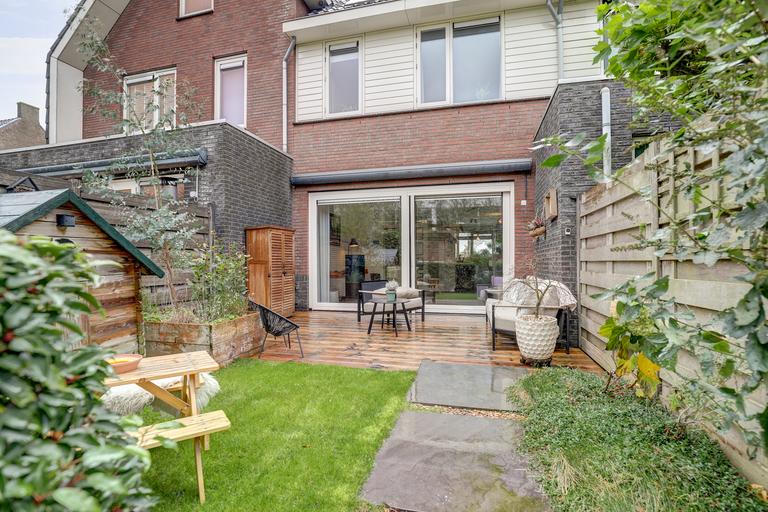 – Achtertuin aangelegd in 2019 v.v. 2 (onderheide) vlonderterrassen;
