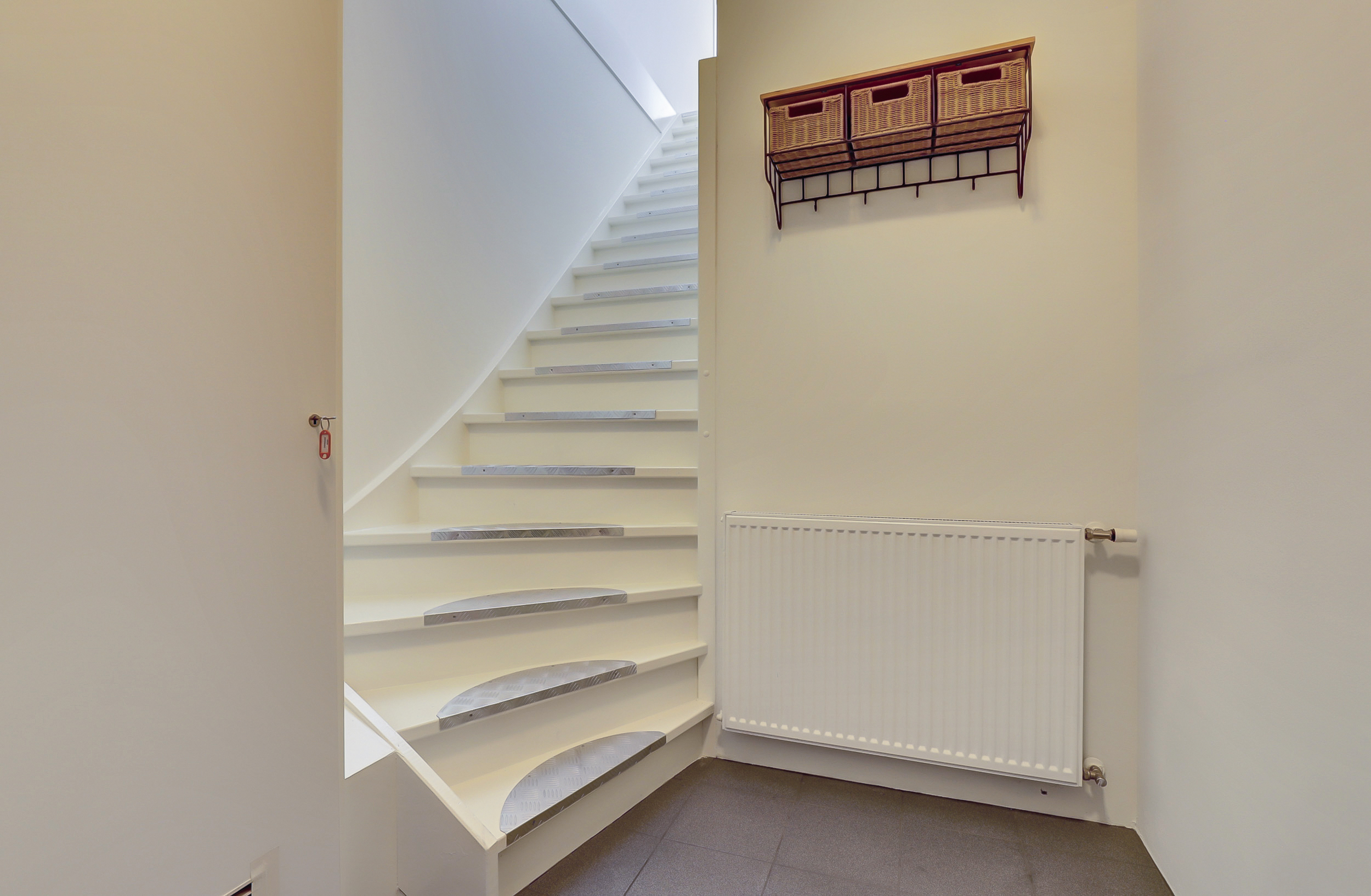 Entree , gezamenlijke hal, meterkast (10 groepen + 2 aardlekschakelaars). Vanuit hier is er toegang tot de privéhal, die leidt naar de trapopgang naar de eerste verdieping. Onder de trap bevindt zich een ruime berging.