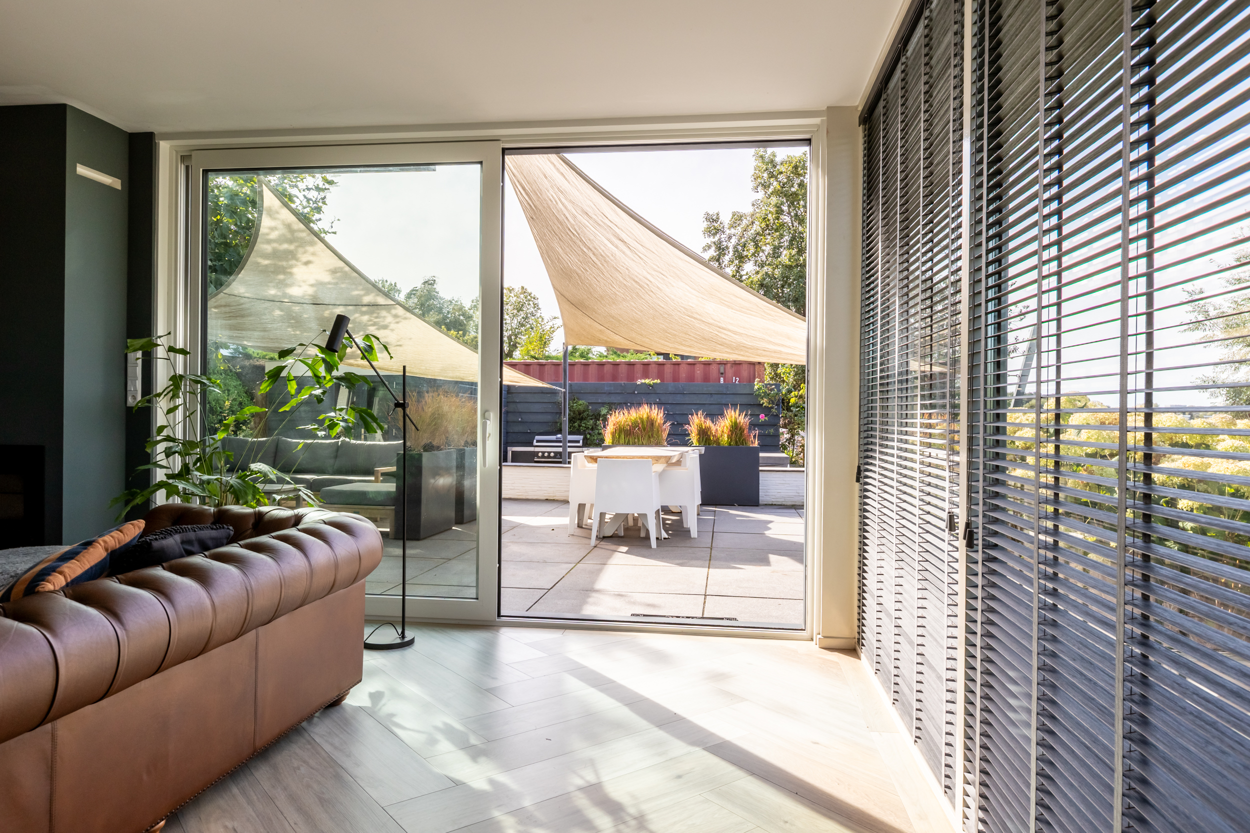 – Elektrisch bedienbare zonwering aan de zijkant van de woning op het zuidwesten;