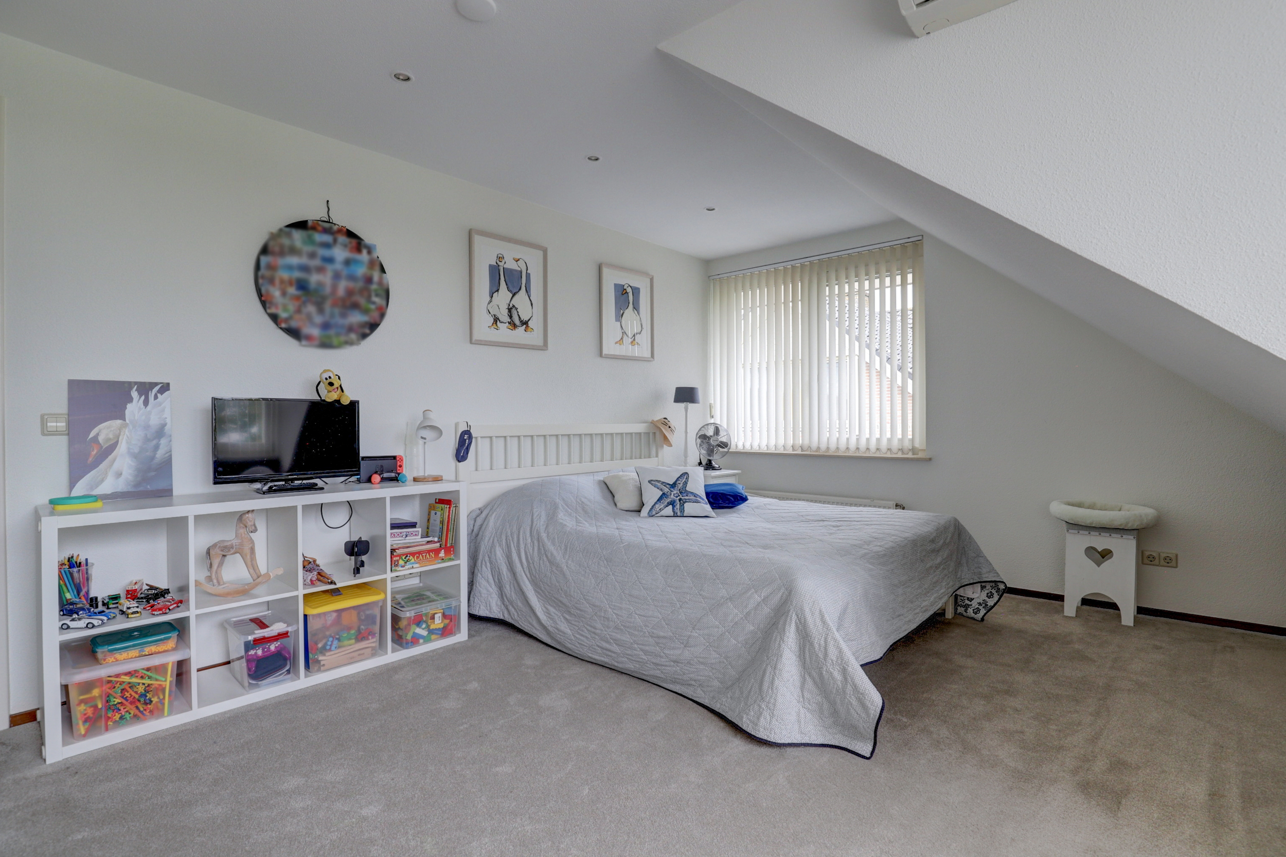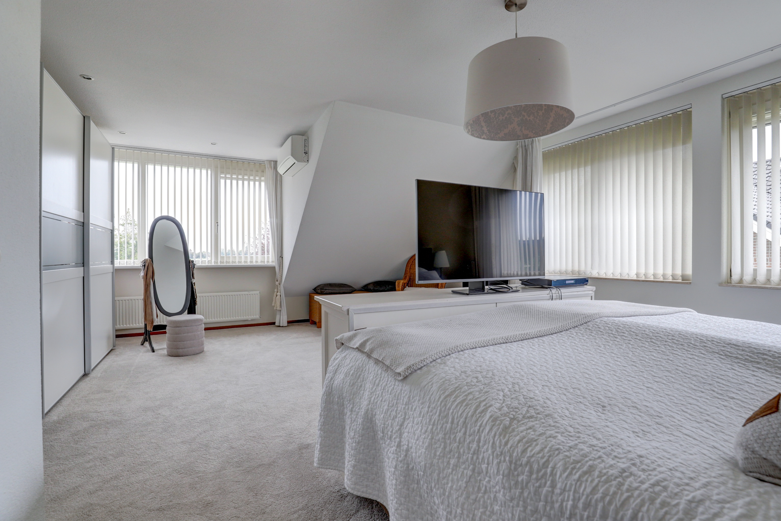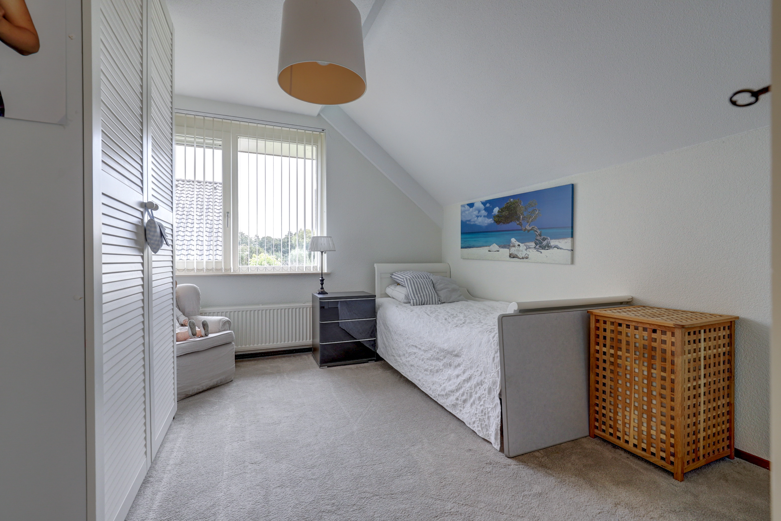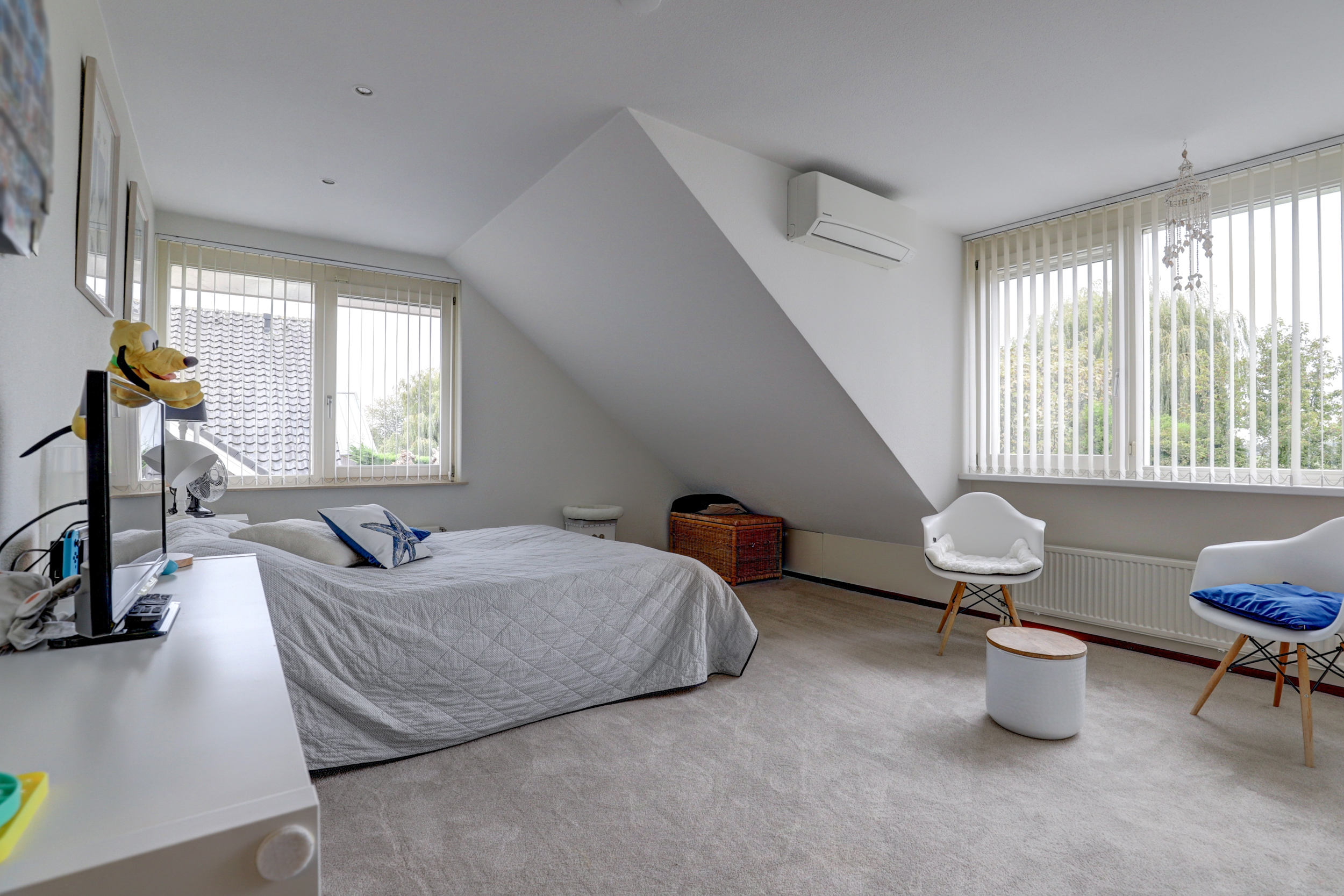 De eerste verdieping telt drie volwaardige slaapkamers, elk met prettige afmetingen en veel daglicht. De master bedroom beschikt over veel licht en ruimte dankzij de vele ramen en een dakkapel. De andere twee kamers zijn eveneens goed van formaat. Tussen de kamers in ligt de overloop met separaat toilet.