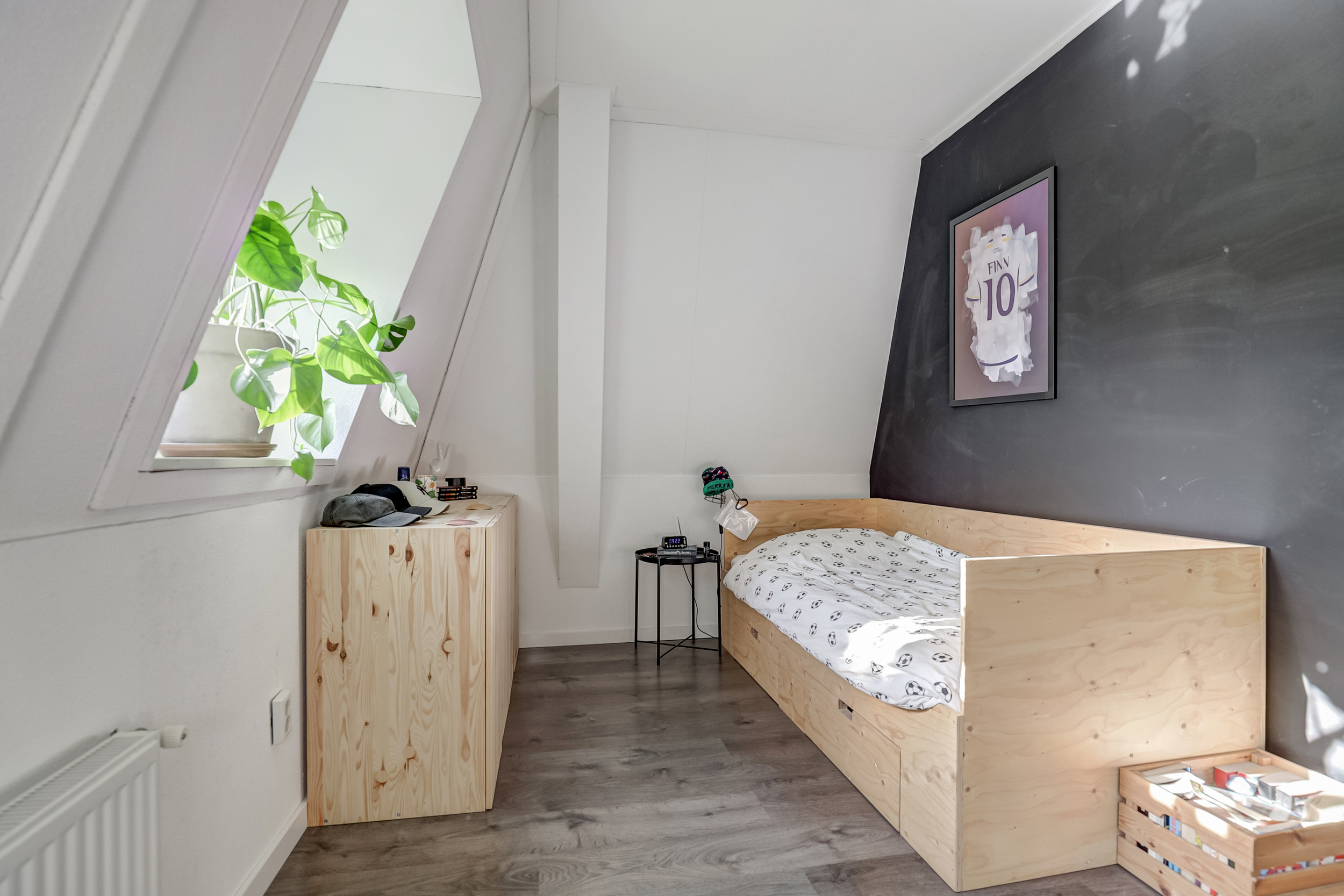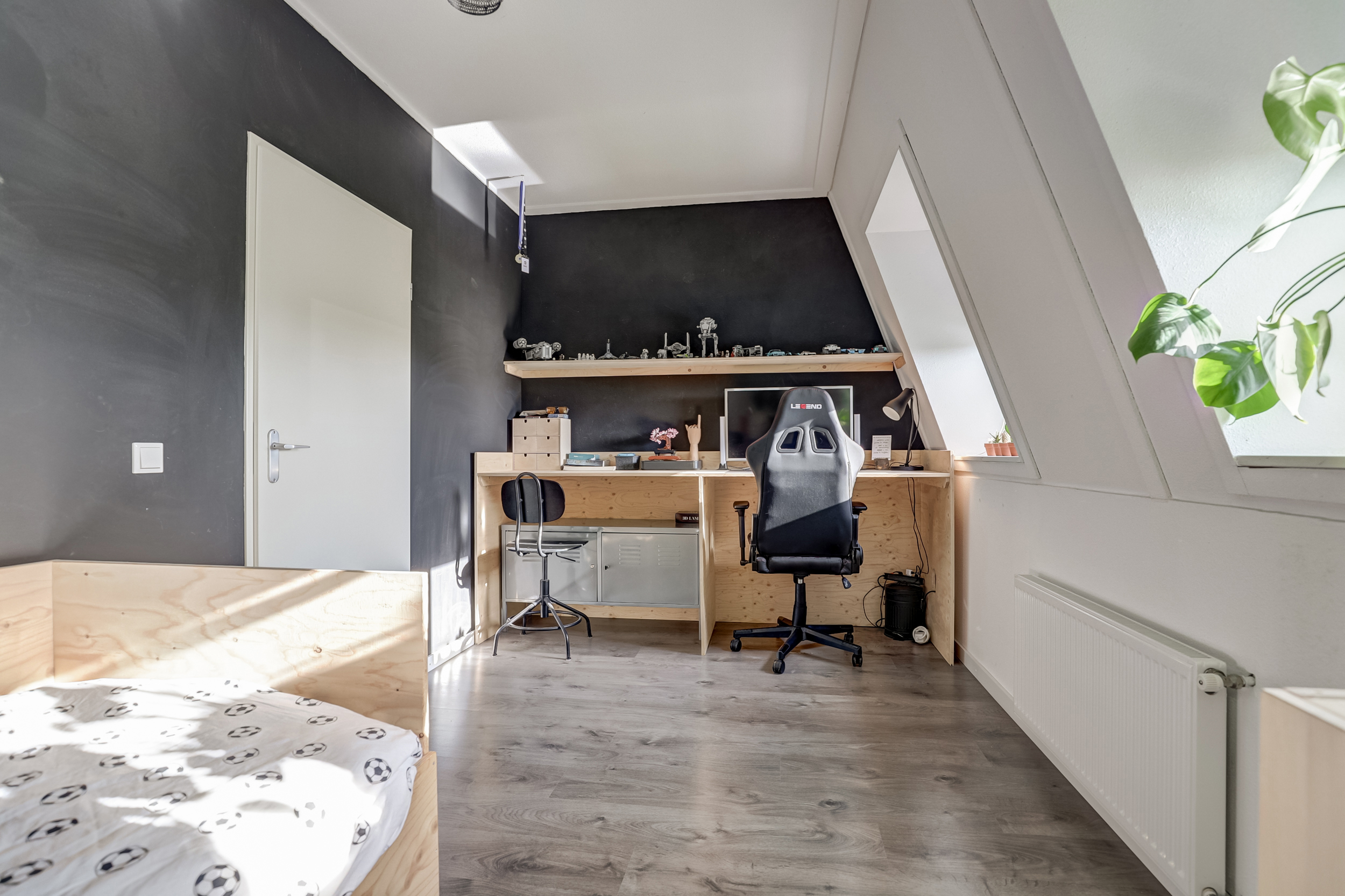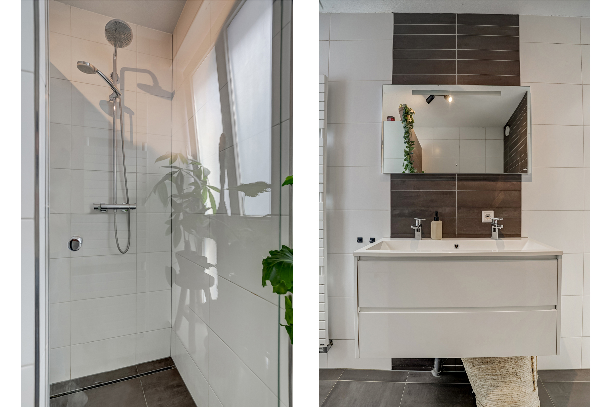 Op de eerste verdieping bevinden zich drie goed bemeten slaapkamers en een moderne badkamer. Alle kamers zijn licht, comfortabel en naar eigen wens in te richten. De studeerkamer/ slaapkamer aan de achterzijde beschikt over een ingebouwde kast en biedt uitzicht op de achtertuin. De slaapkamer aan de achterzijde is extra licht door de grote raampartij met draaikiepramen en hor, een voordeel van deze hoekwoning. De slaapkamer aan de voorzijde biedt een prachtig uitzicht over het park. Beide slaapkamers zijn volledig voorzien van elektrische rolluiken. De moderne badkamer is volledig betegeld in een combinatie van donkergrijs en wit en is uitgerust met een dubbele wastafel, hangend toilet en inloopdouche. Een stijlvolle en functionele ruimte voor het hele gezin.