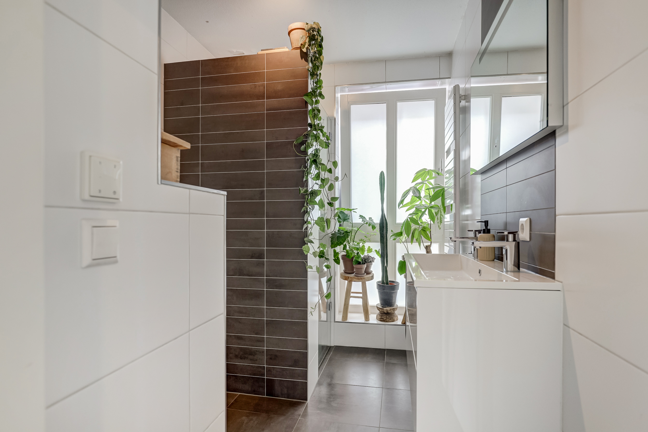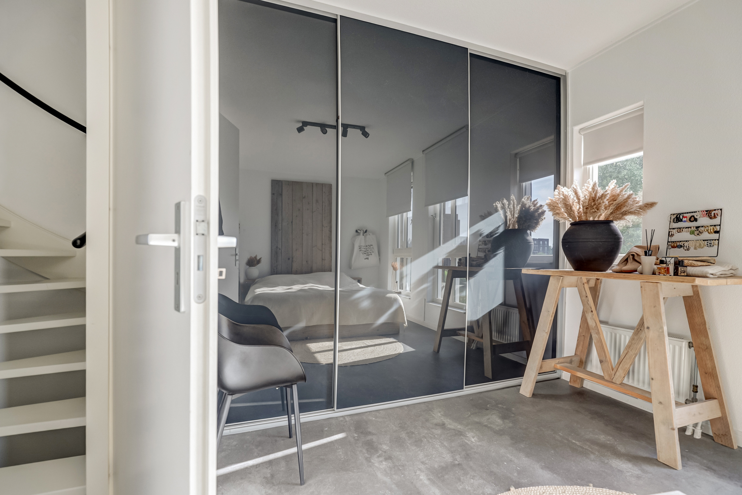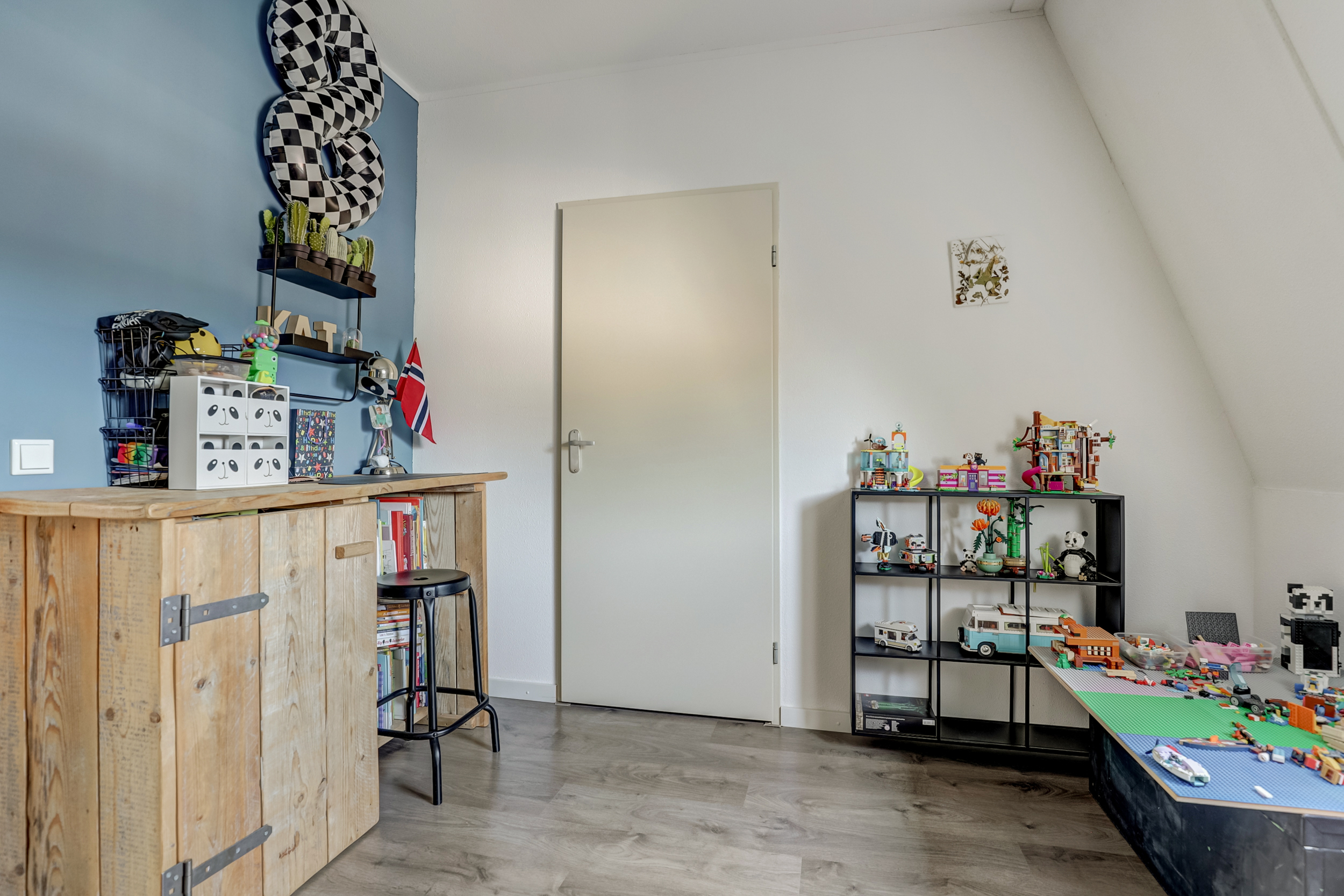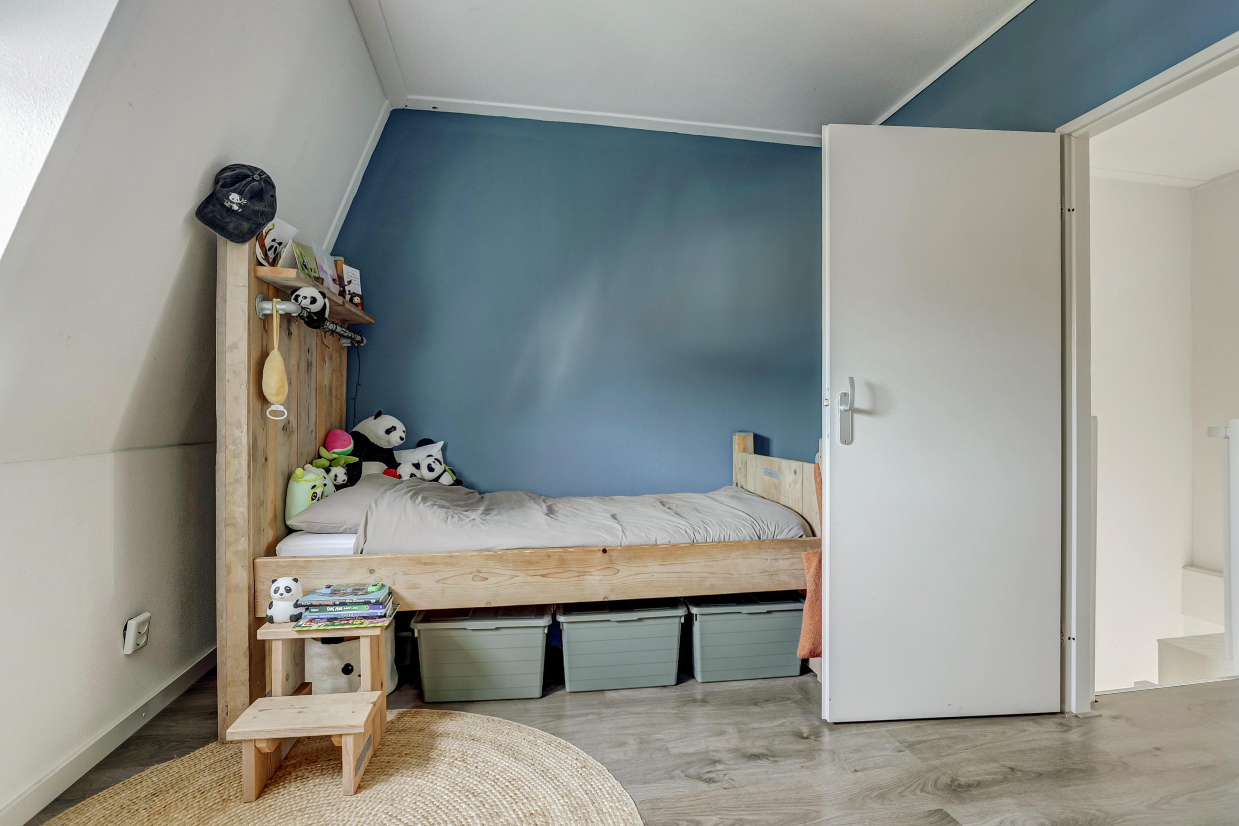 Op de eerste verdieping bevinden zich drie goed bemeten slaapkamers en een moderne badkamer. Alle kamers zijn licht, comfortabel en naar eigen wens in te richten. De studeerkamer/ slaapkamer aan de achterzijde beschikt over een ingebouwde kast en biedt uitzicht op de achtertuin. De slaapkamer aan de achterzijde is extra licht door de grote raampartij met draaikiepramen en hor, een voordeel van deze hoekwoning. De slaapkamer aan de voorzijde biedt een prachtig uitzicht over het park. Beide slaapkamers zijn volledig voorzien van elektrische rolluiken. De moderne badkamer is volledig betegeld in een combinatie van donkergrijs en wit en is uitgerust met een dubbele wastafel, hangend toilet en inloopdouche. Een stijlvolle en functionele ruimte voor het hele gezin.