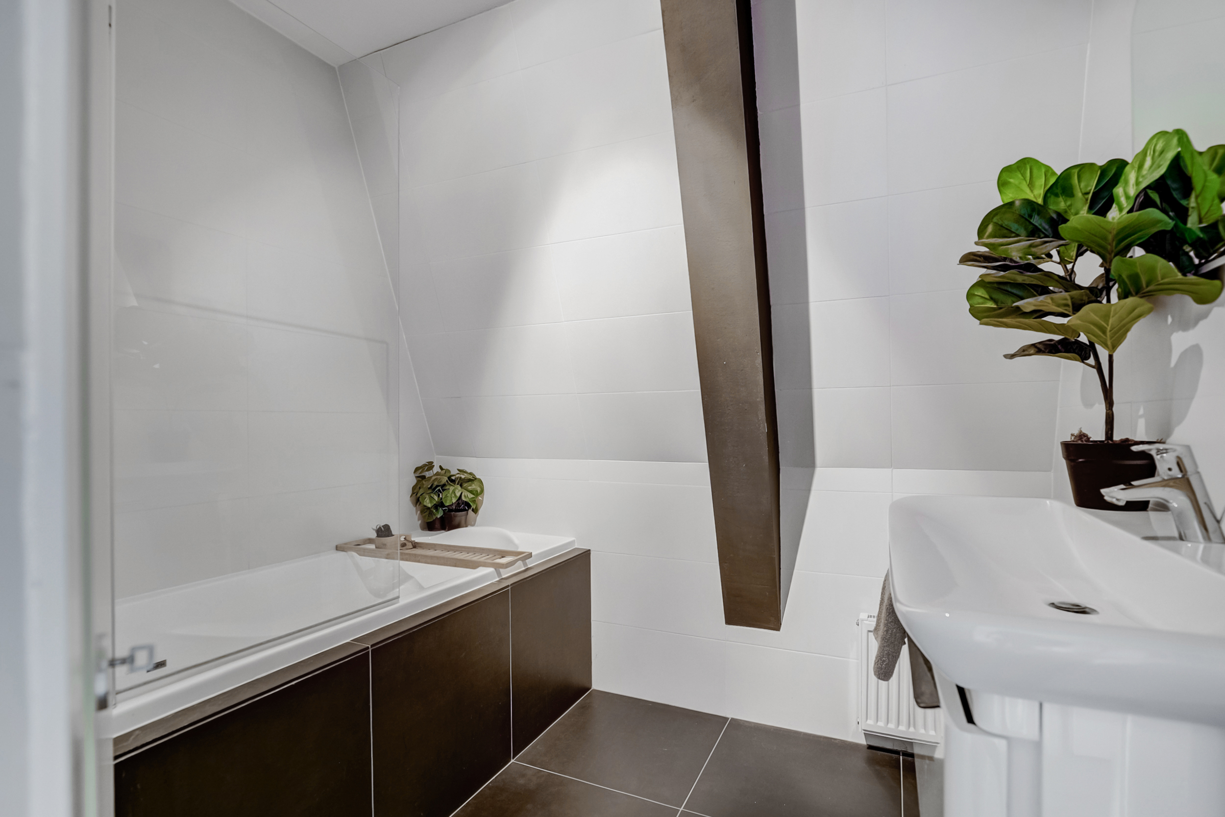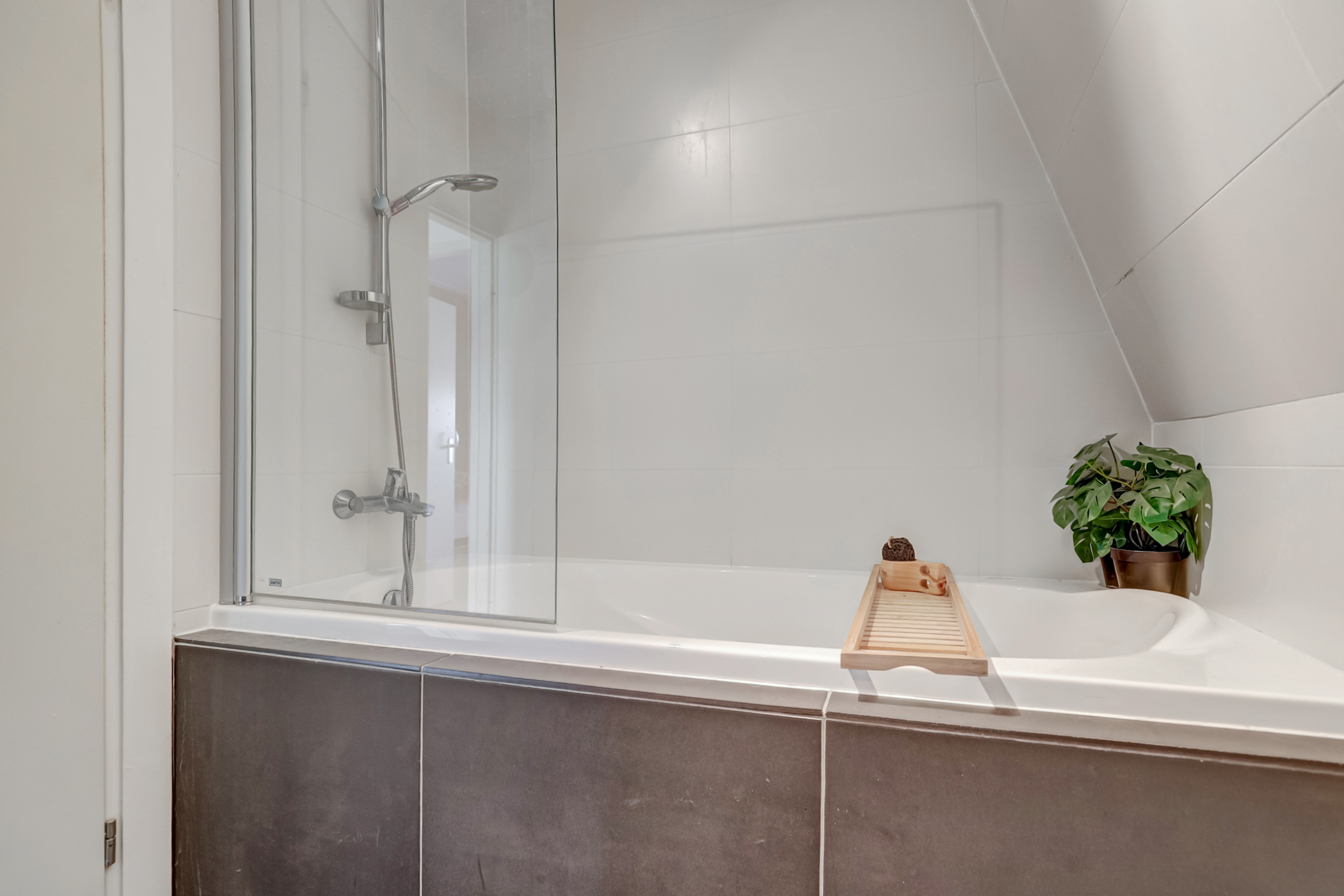 Op de tweede verdieping bevinden zich nog eens twee ruime slaapkamers, beide voorzien van dakkapellen waardoor er veel licht en extra ruimte is. De slaapkamer aan de achterzijde geeft bovendien toegang tot een praktische ruimte met de opstelplaats voor de wasmachine en extra bergruimte. Daarnaast vindt u hier een tweede badkamer met ligbad, douche en wastafel, alsmede een ingebouwde kast met de cv-installatie en de mechanische ventilatie.