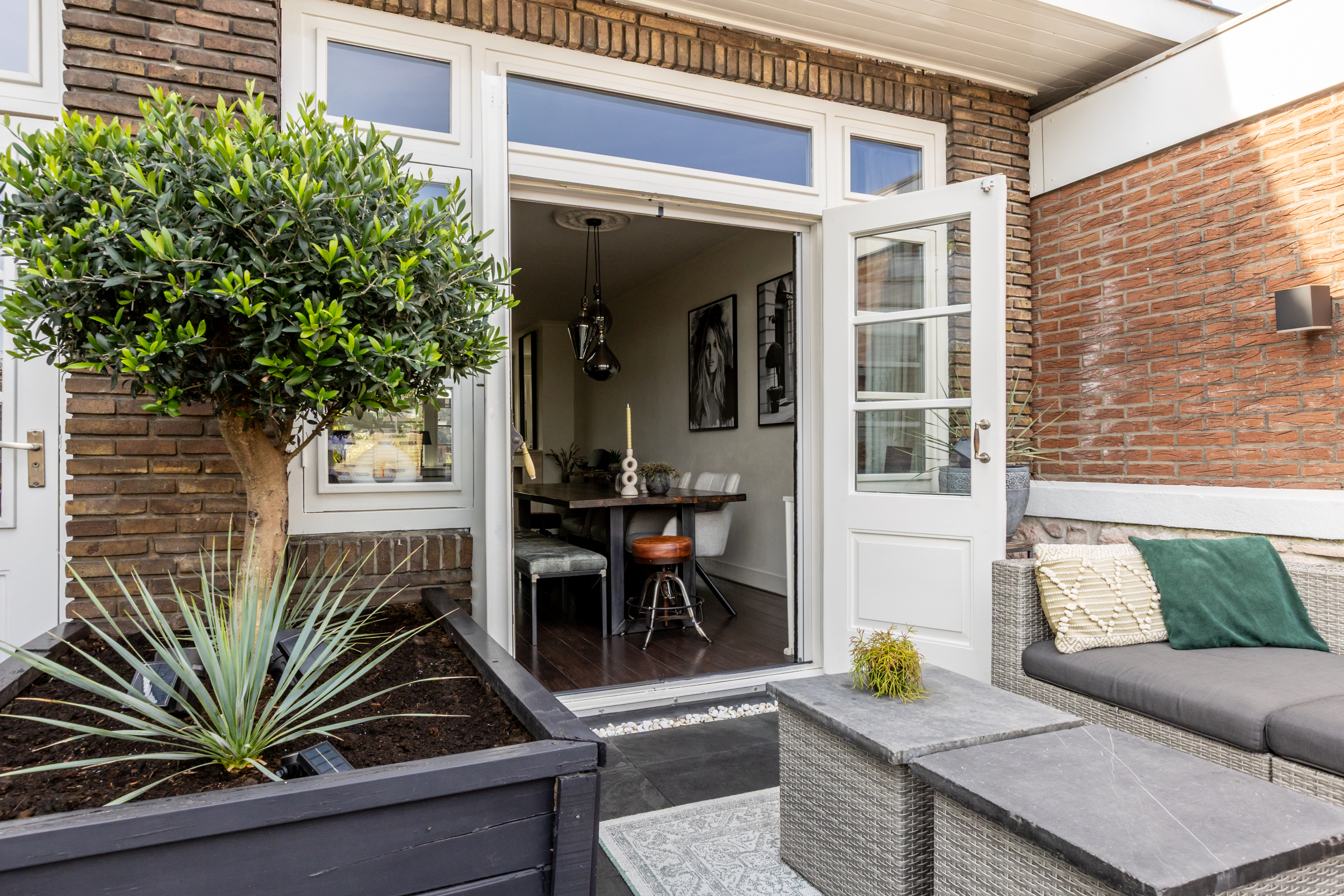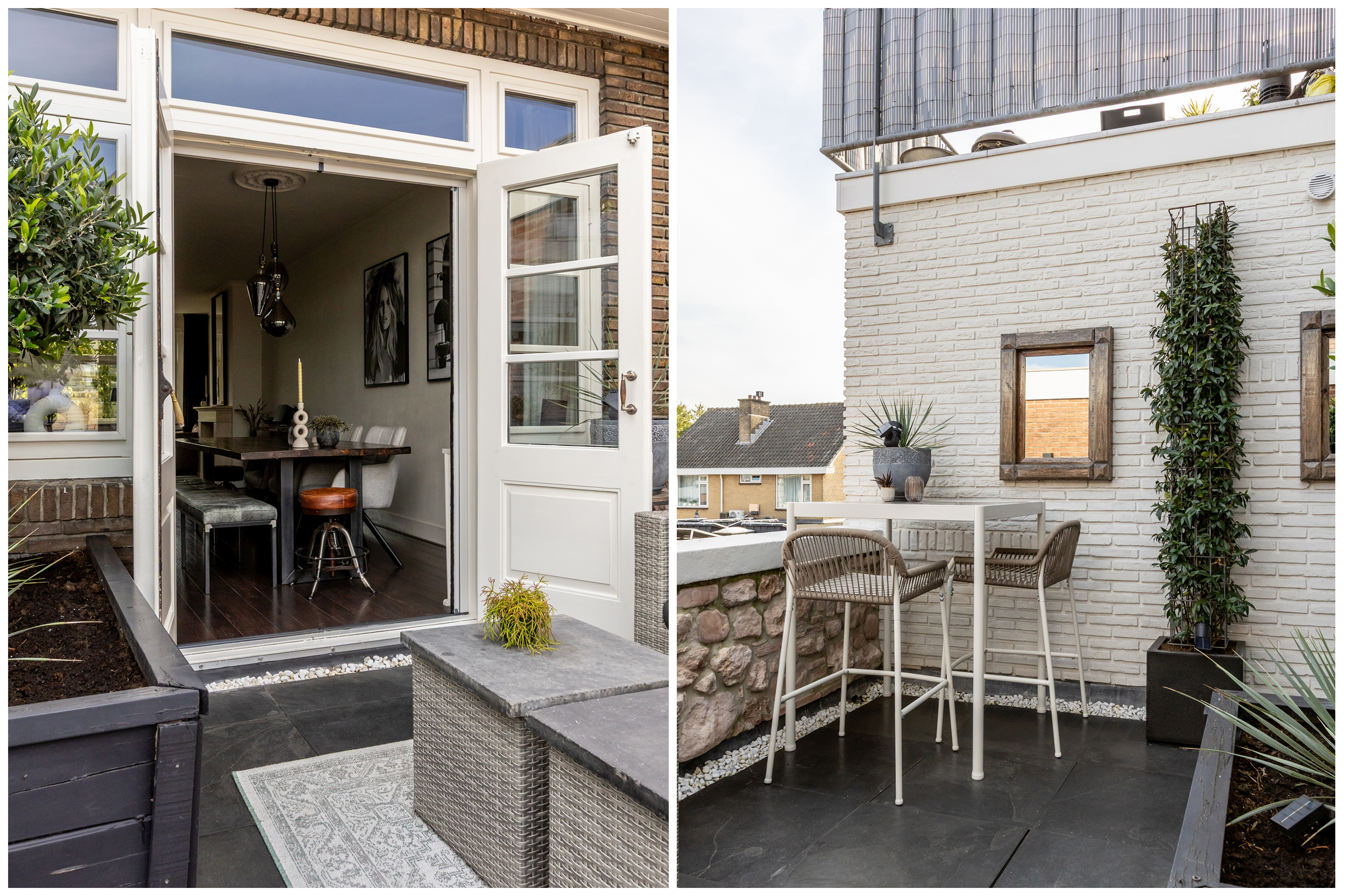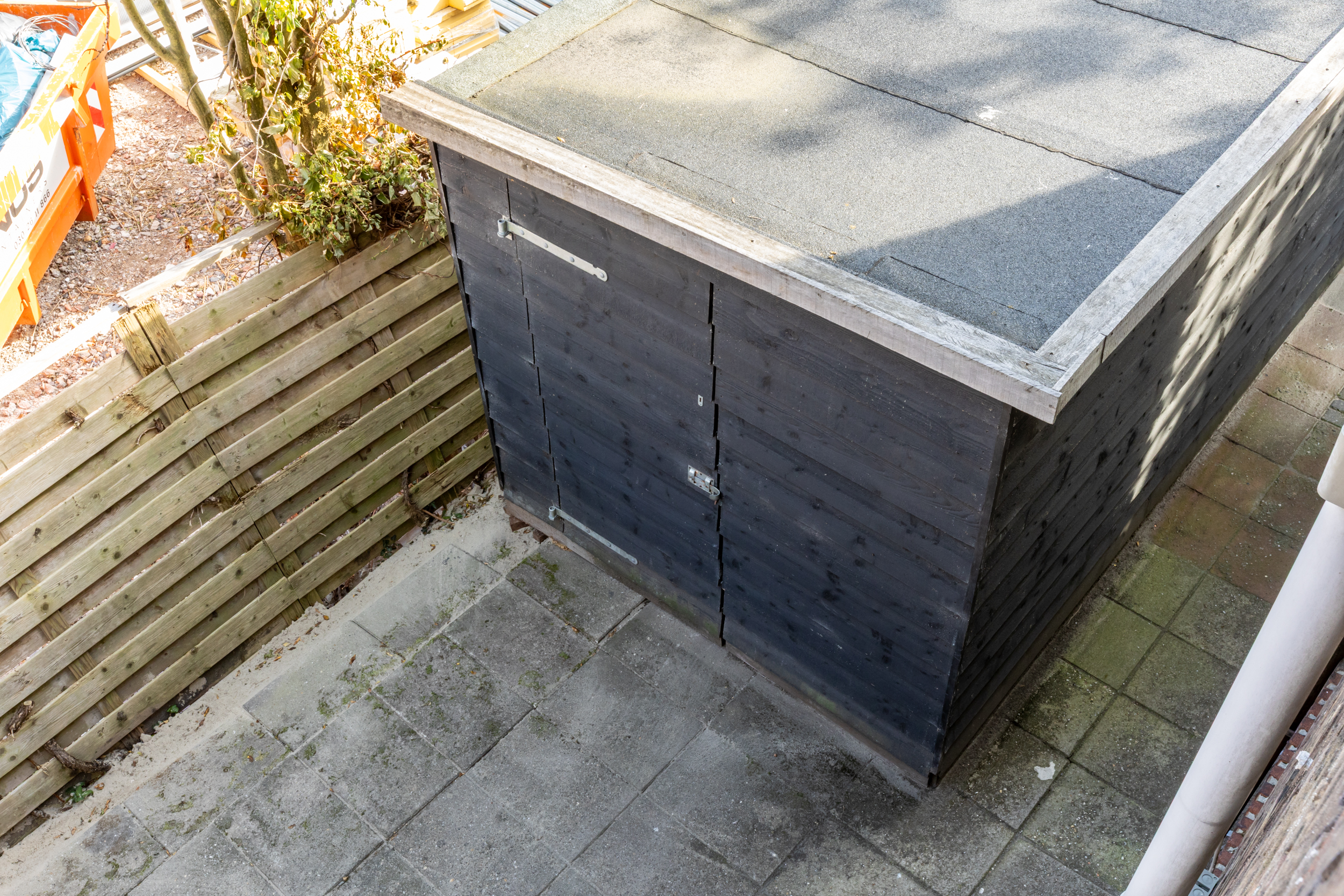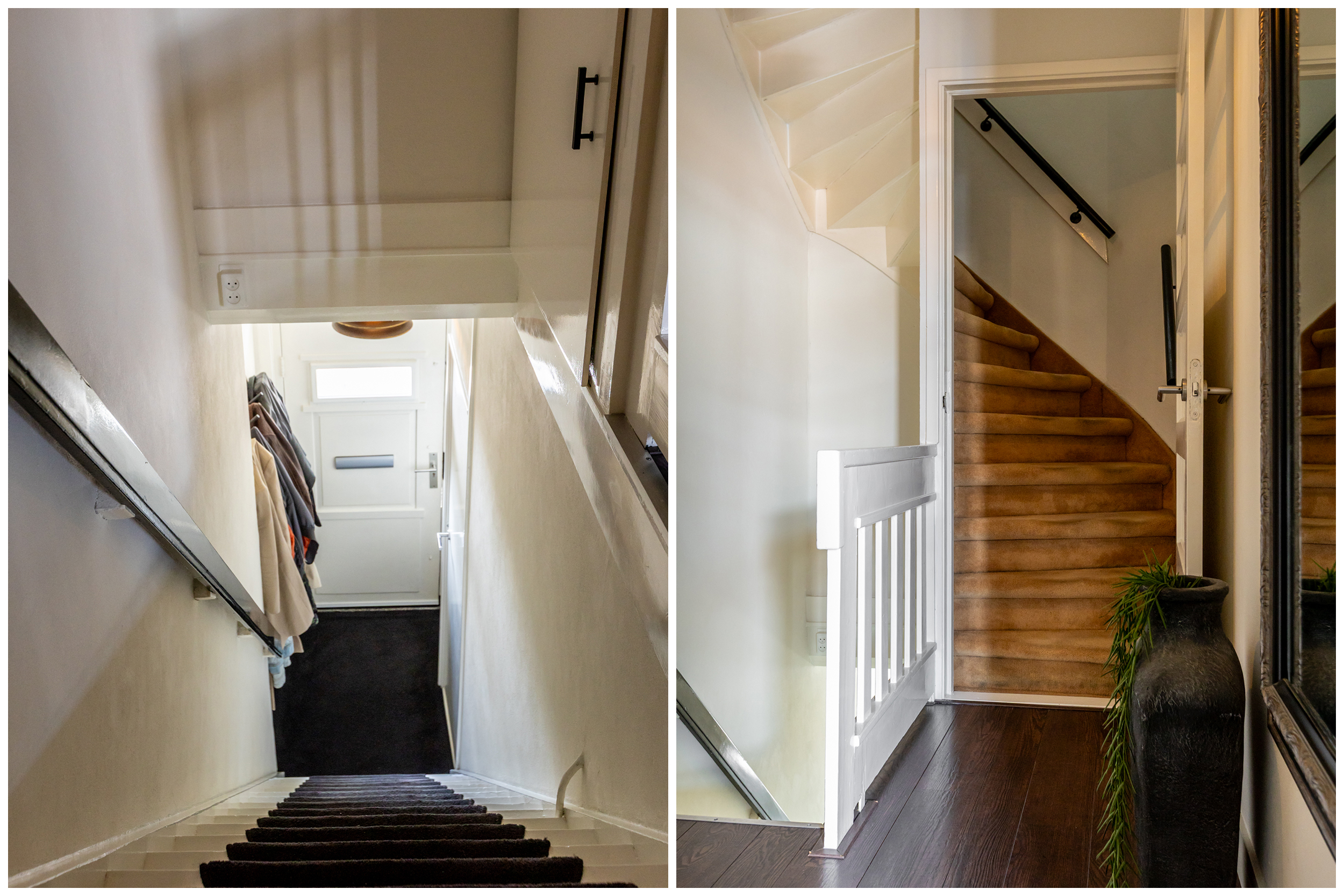 Representatieve entree met uitgebreide meterkast en trapopgang naar de woonverdieping. Aan de achterzijde van de woning bevindt zich een losse berging, perfect voor het stallen van je fiets of het opbergen van extra spullen.
