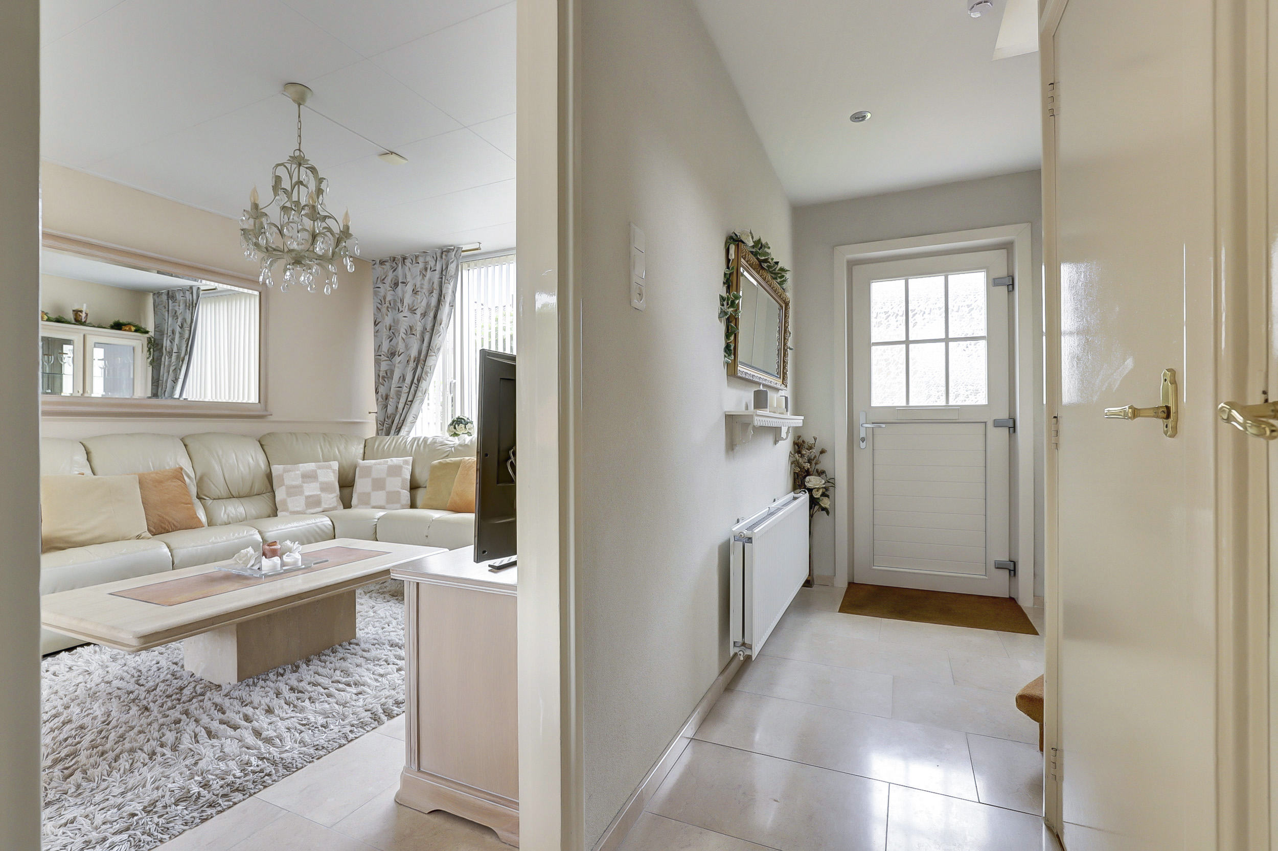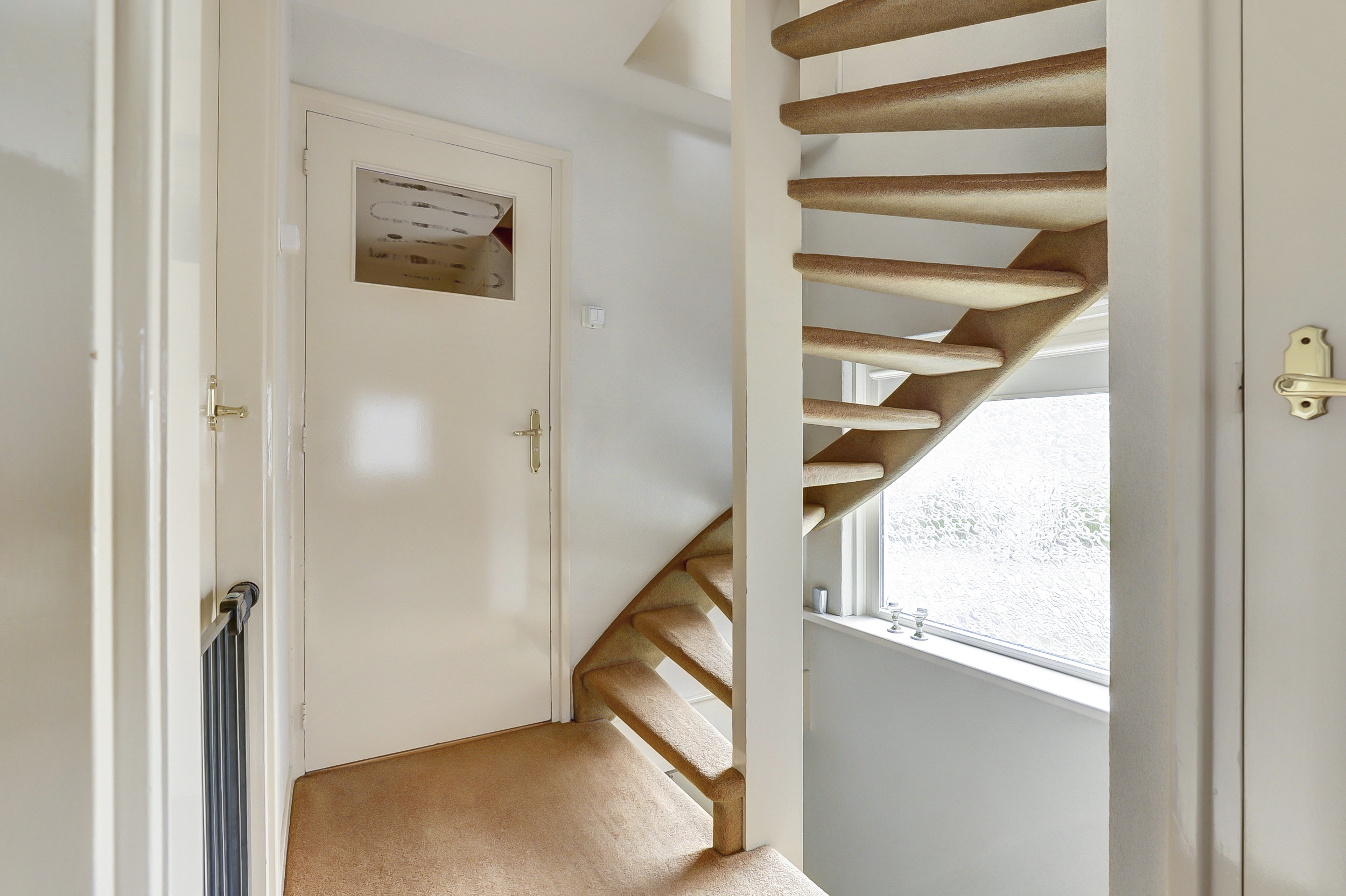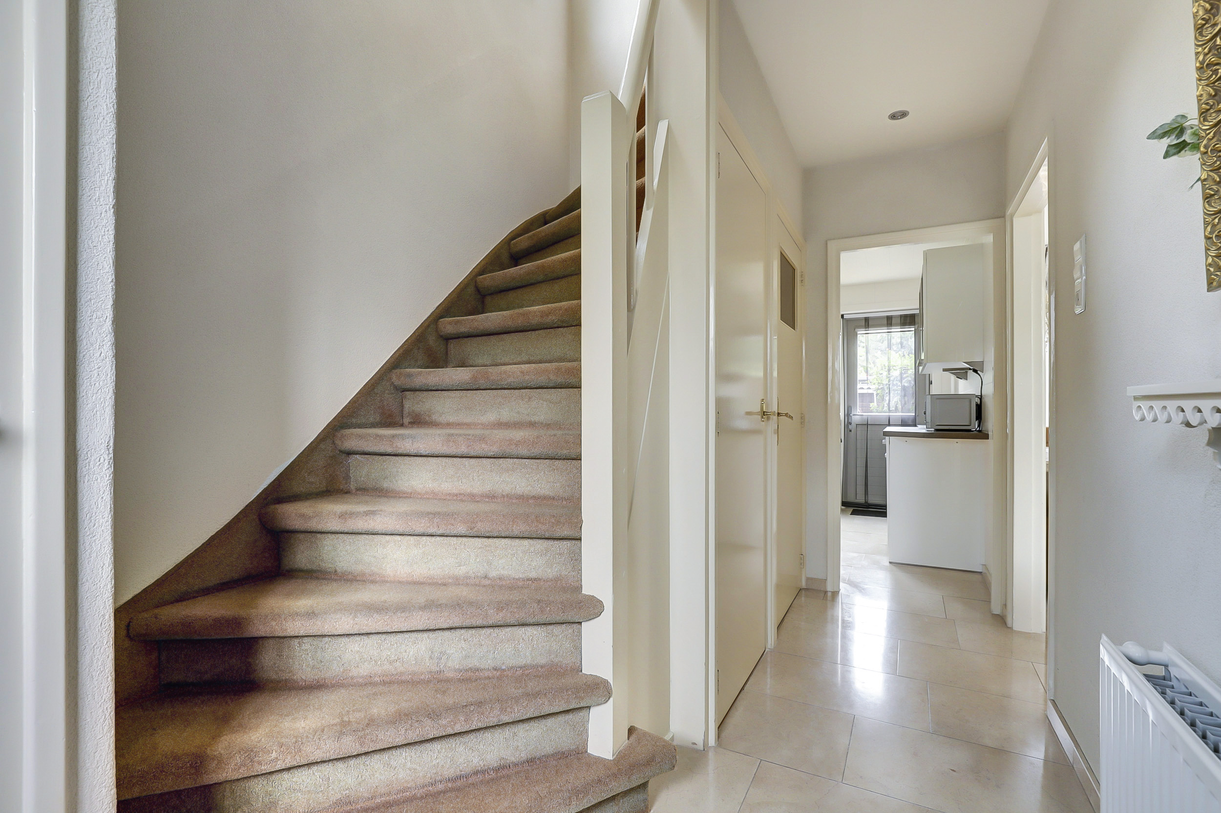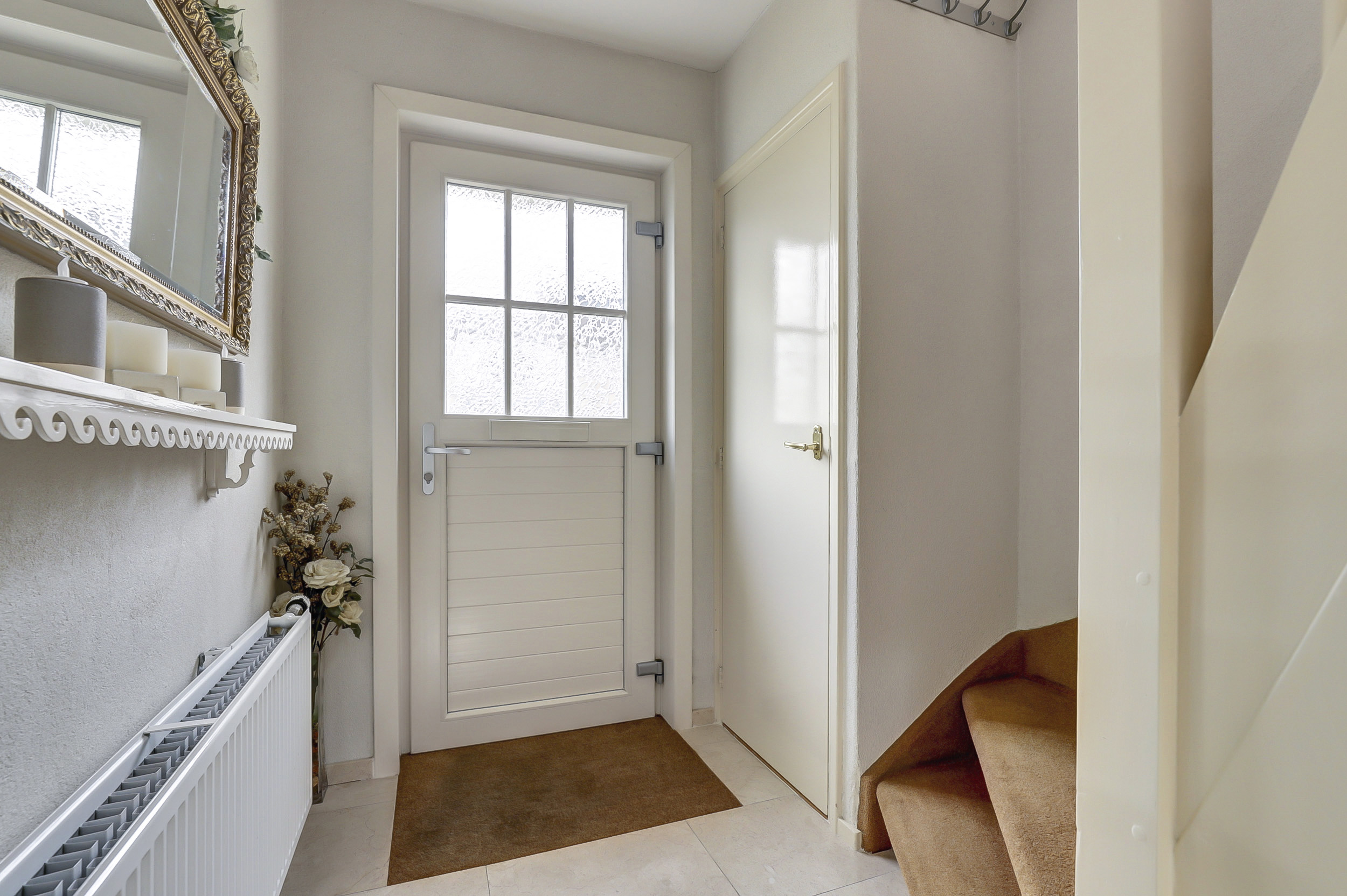 Via de verzorgde voortuin en het sierlijke pad komt u bij de voordeur van deze charmante woning. De hal biedt toegang tot het toilet, de trapopgang, de meterkast en een praktische trapkast.