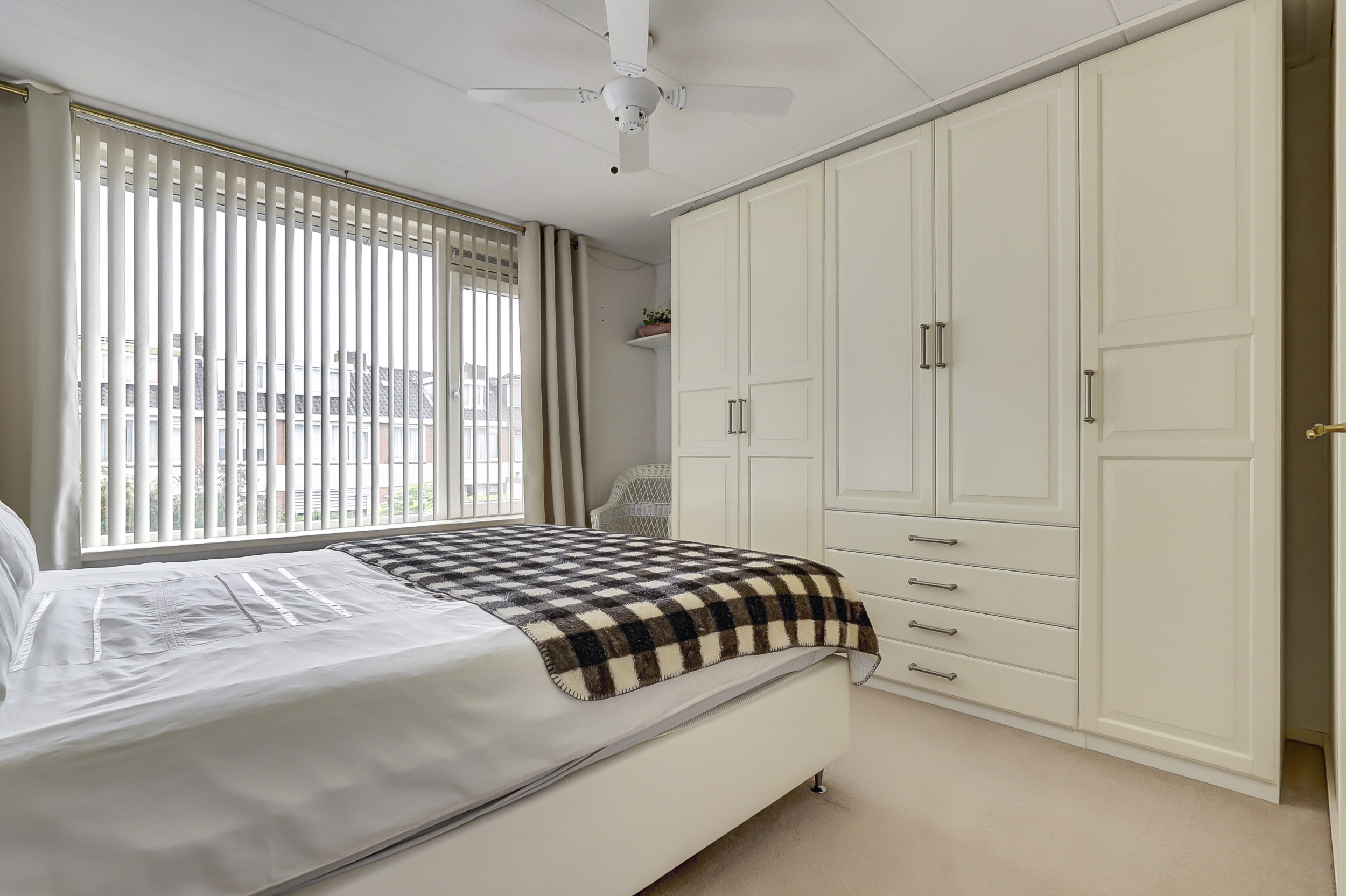 Op de eerste verdieping bevinden zich twee royale slaapkamers, beide voorzien van inbouwkasten. Beide kamers zijn ruim, licht en praktisch ingedeeld, ideaal als hoofd- en kinderkamer, werkkamer of logeerkamer. De grootste slaapkamer aan de achterzijde biedt bovendien uitzicht op de tuin en heeft een diepte van ruim 3,50 meter.