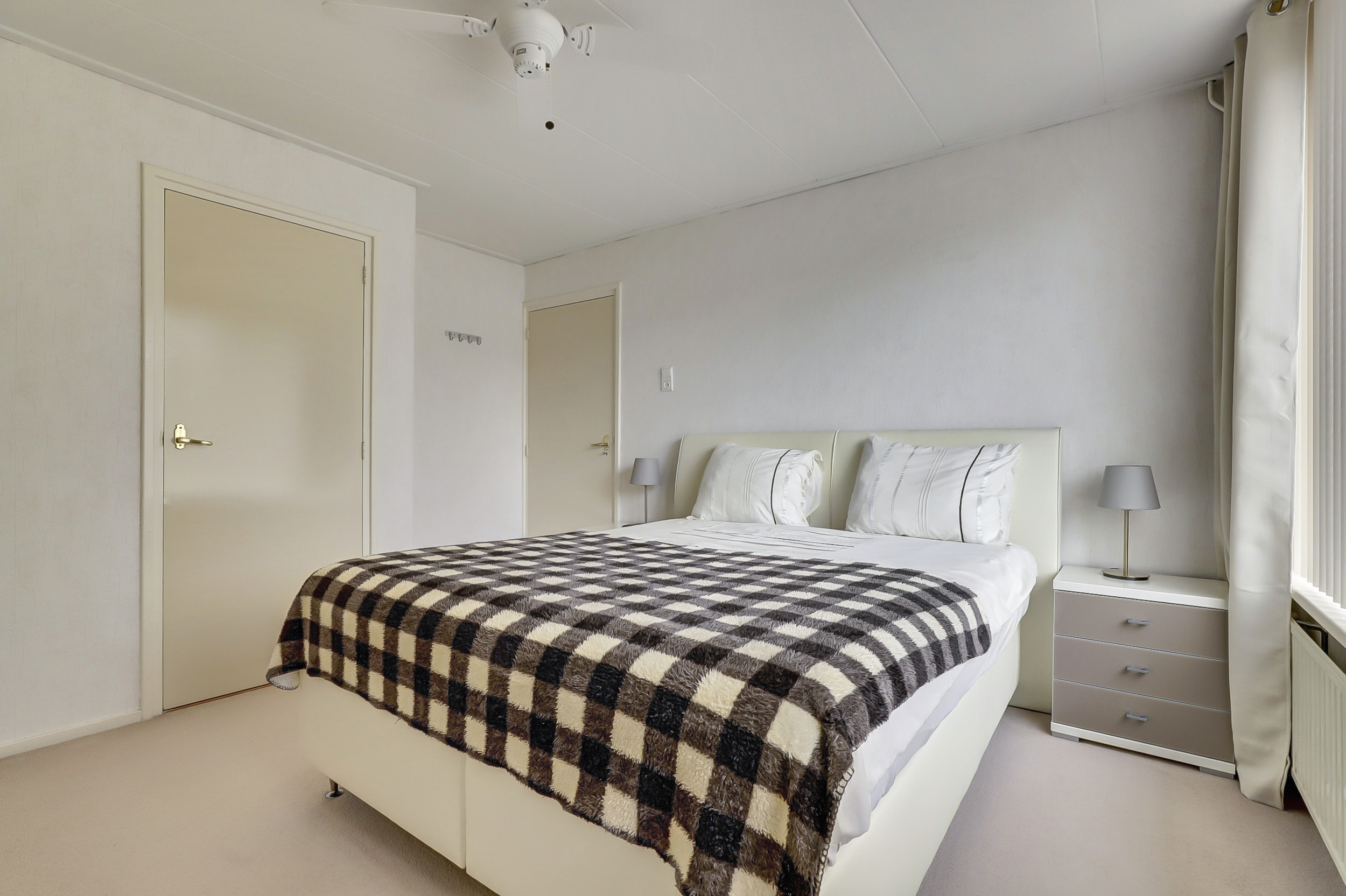De tweede verdieping is bereikbaar via een vaste trap en is verrassend ruim dankzij de dakkapellen aan voor- én achterzijde. Hier bevindt zich een derde grote slaapkamer. Deze kamer is eveneens voorzien van knieschotten met bergruimte en een nette afwerking.