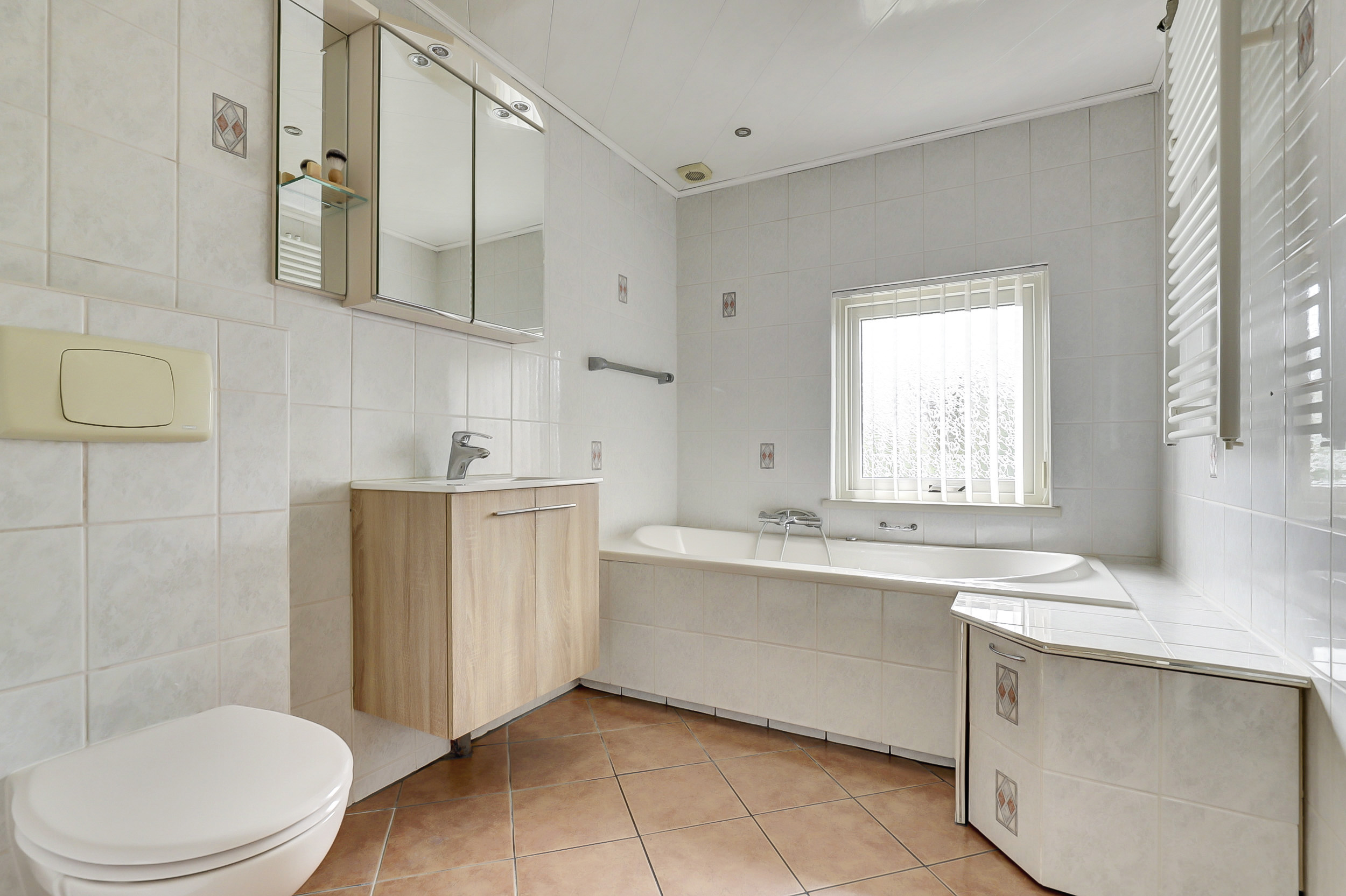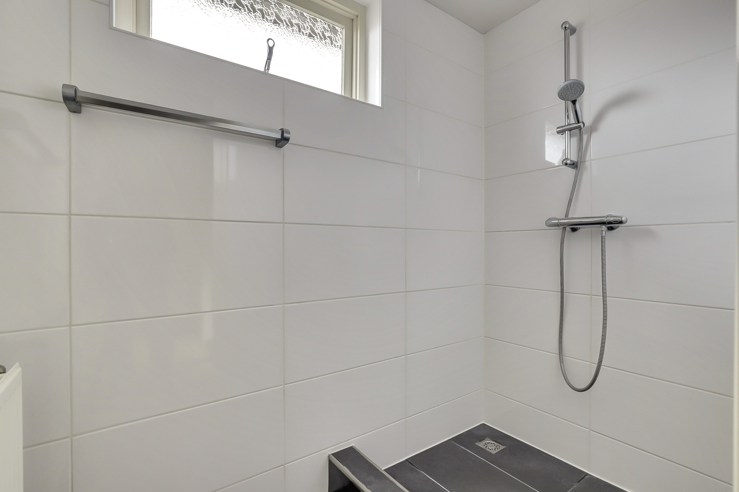 De badkamer is ruim en modern en verdeeld in twee aparte delen. Het eerste deel (voormalige slaapkamer) beschikt over een ligbad, een toilet en een wastafelmeubel met spiegelkasten en verlichting. Het tweede deel is ingericht als aparte doucheruimte. Beide ruimtes zijn betegeld in een neutrale kleurstelling en beide badkamerdelen hebben een raam voor natuurlijke ventilatie en daglicht. Op de overloop is tevens een wasruimte aanwezig, netjes weggewerkt en handig in gebruik!