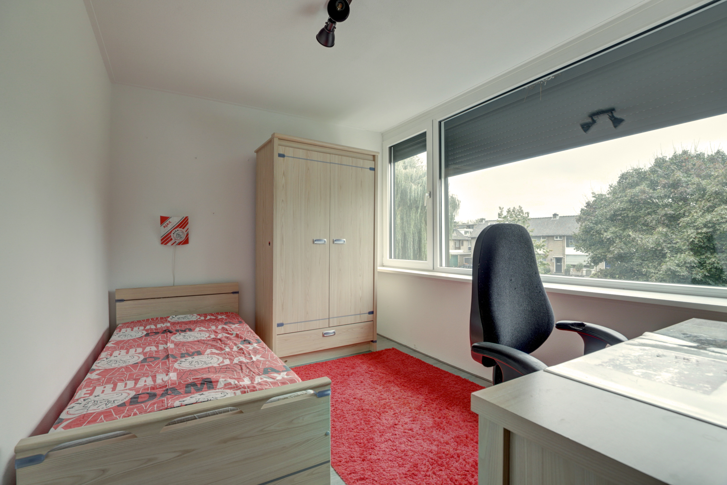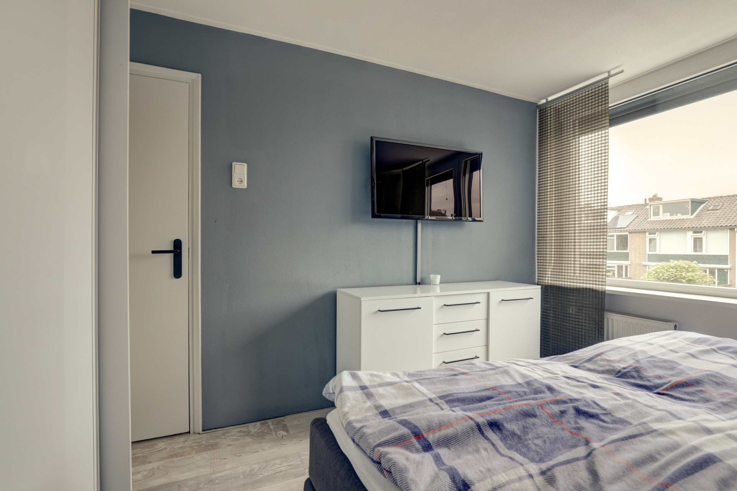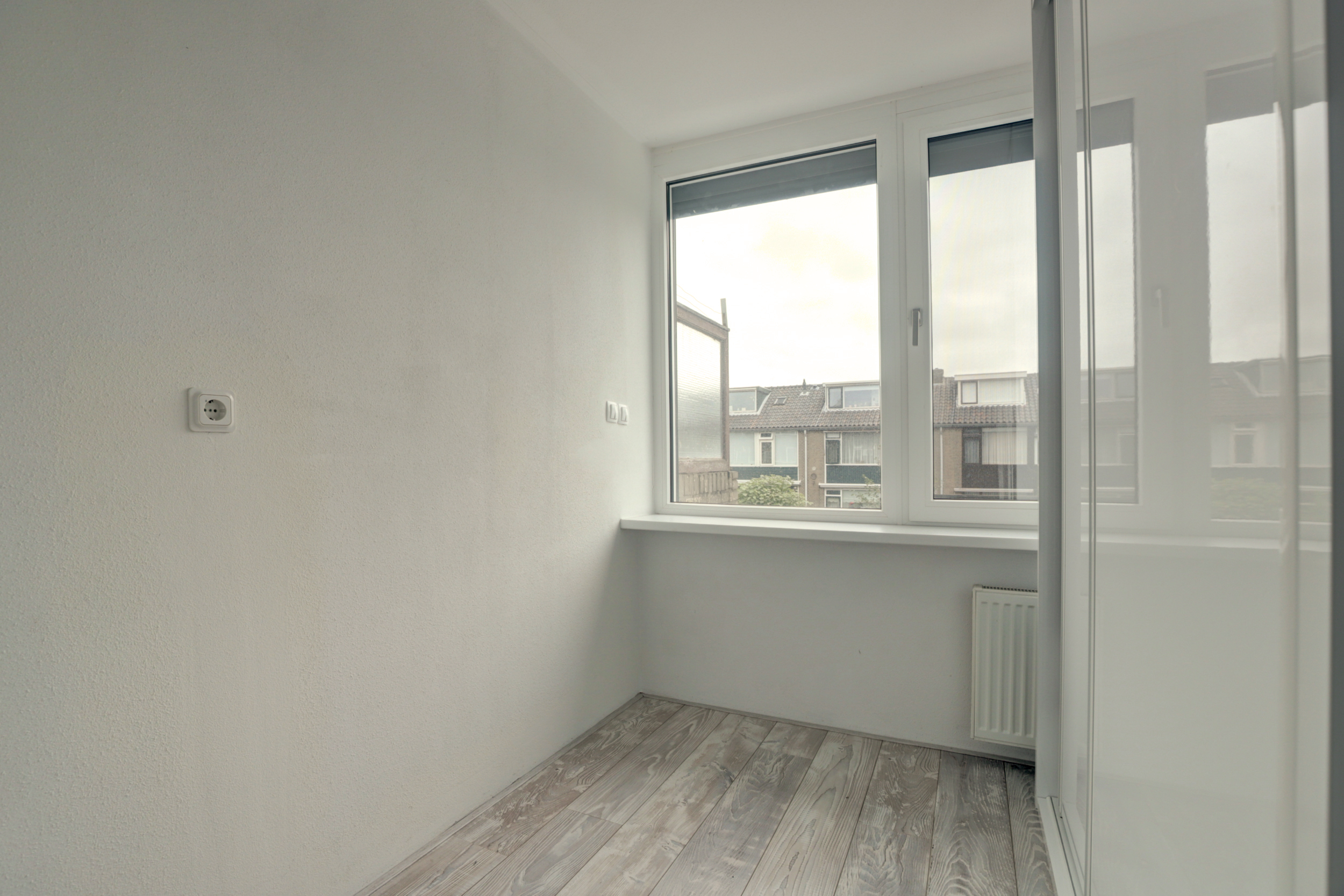 Op de eerste verdieping zijn drie slaapkamers en een moderne badkamer aanwezig. De slaapkamers zijn voorzien van laminaatvloeren en neutrale kleuren, wat zorgt voor een rustige uitstraling.
