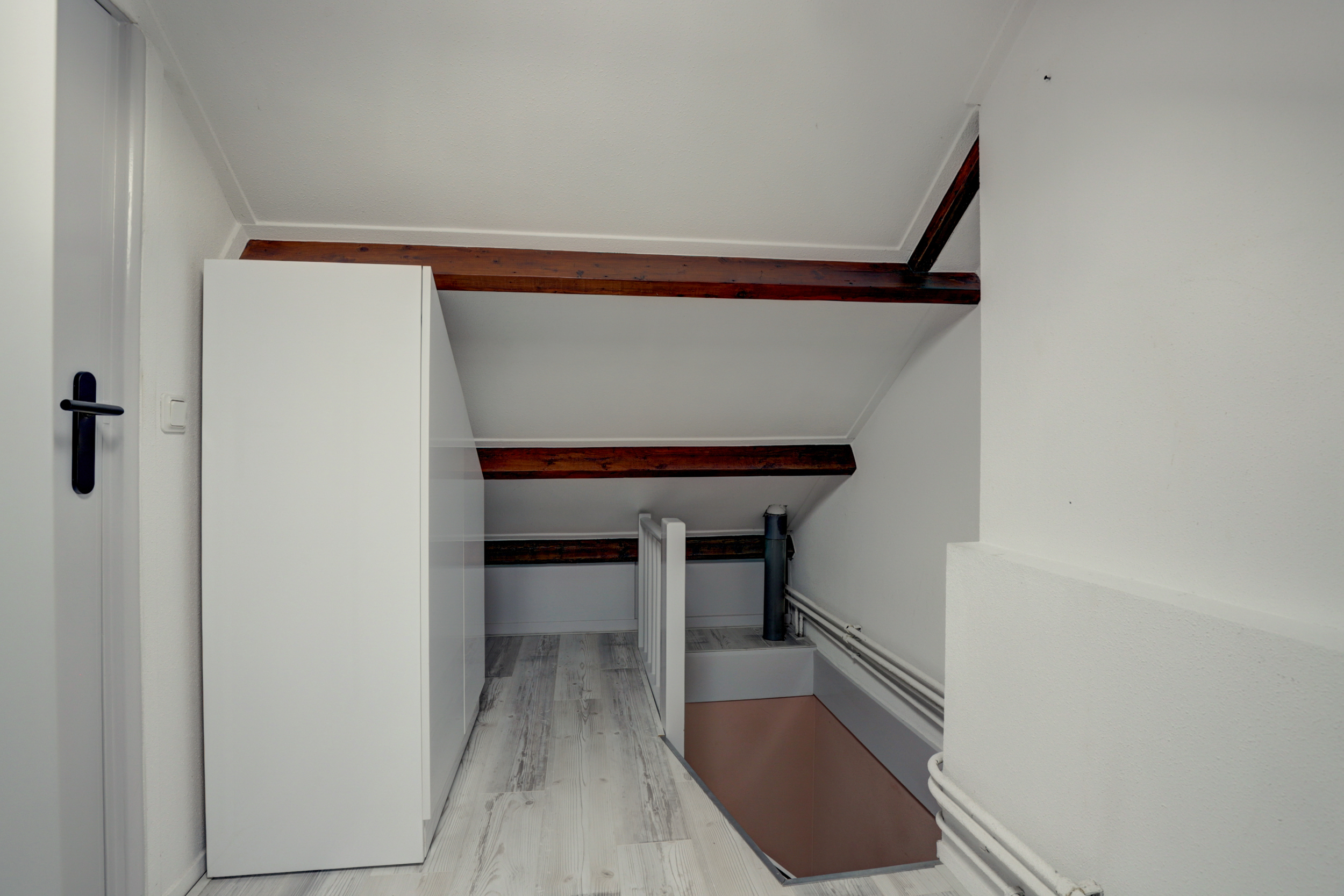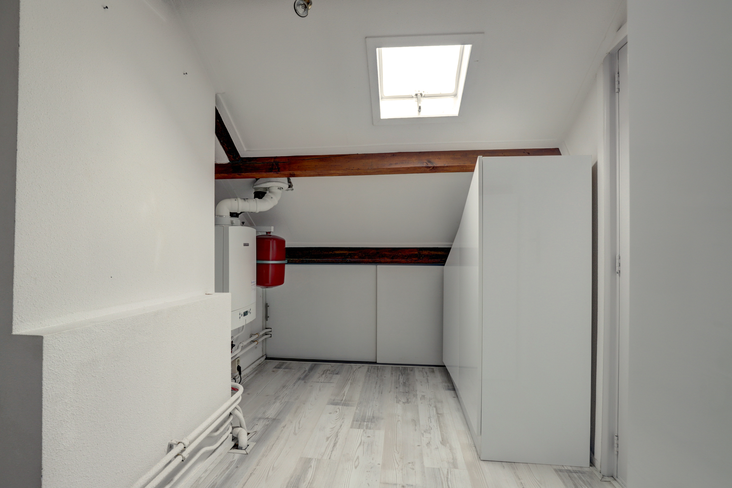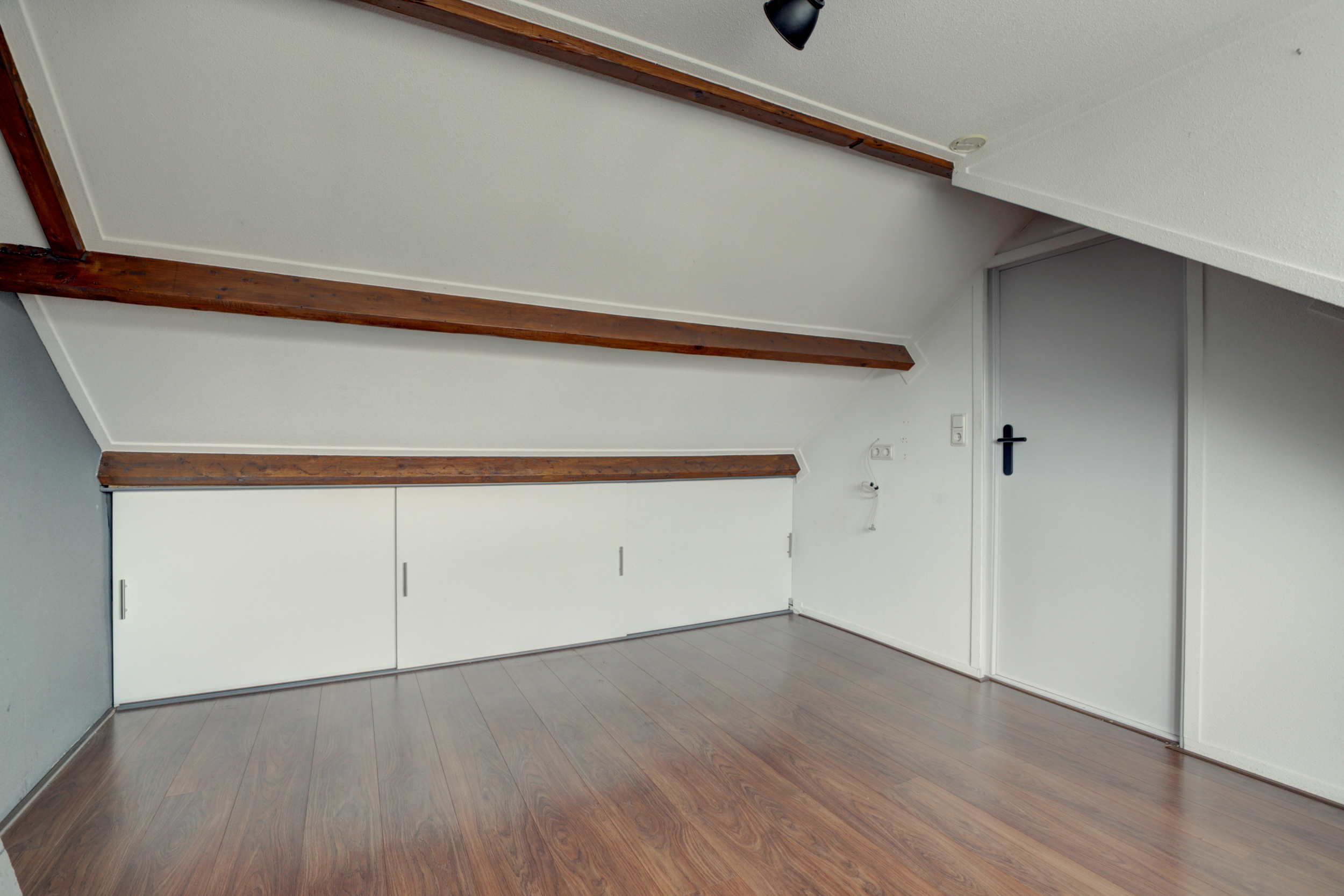 Via een vaste trap bereik je de zolderverdieping. Hier is een overloop met opstelplaats voor de cv combiketel en een fijn dakraam. Toegang tot de zolderkamer welke ideaal te gebruiken is als vierde slaapkamer, werkkamer of hobbyruimte. Dankzij de dakkapel is er veel daglicht, en achter de knieschotten bevindt zich extra bergruimte.