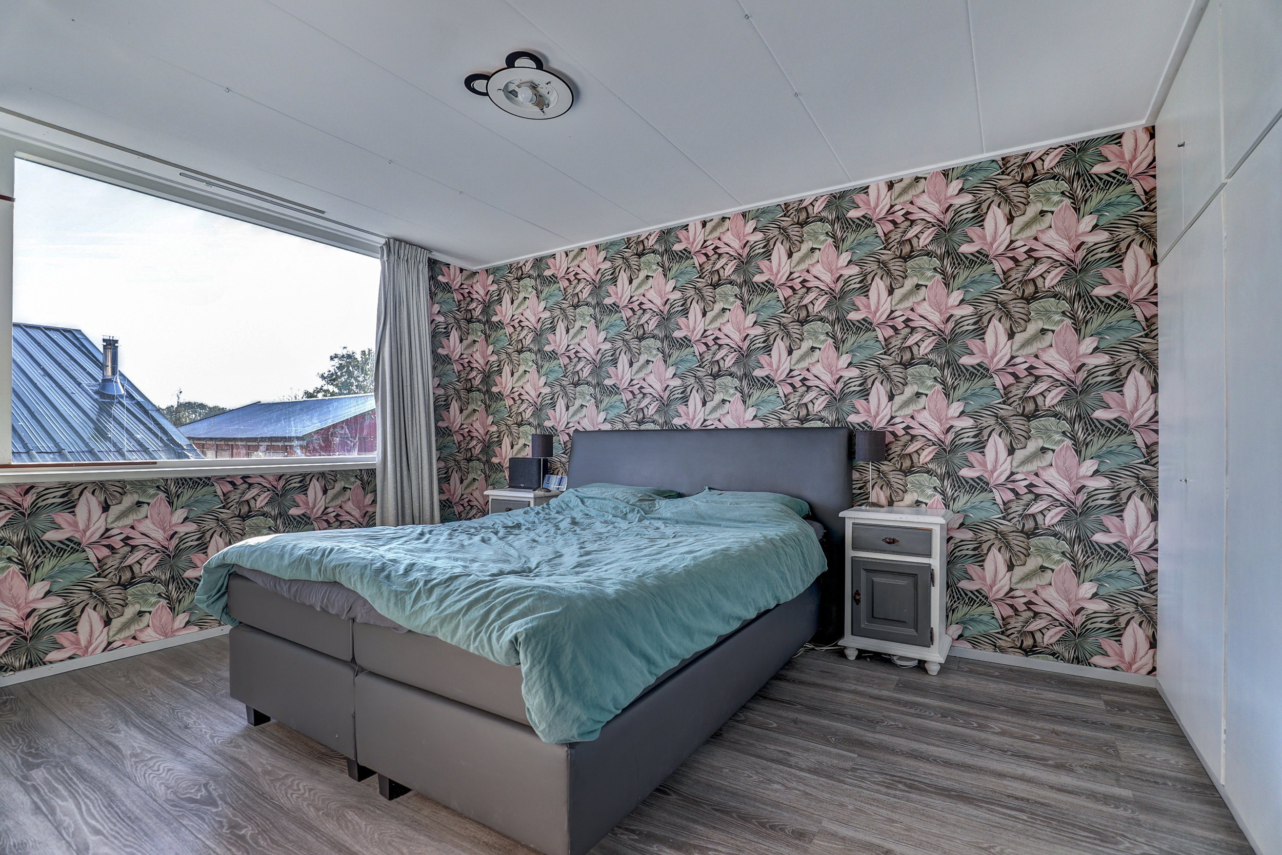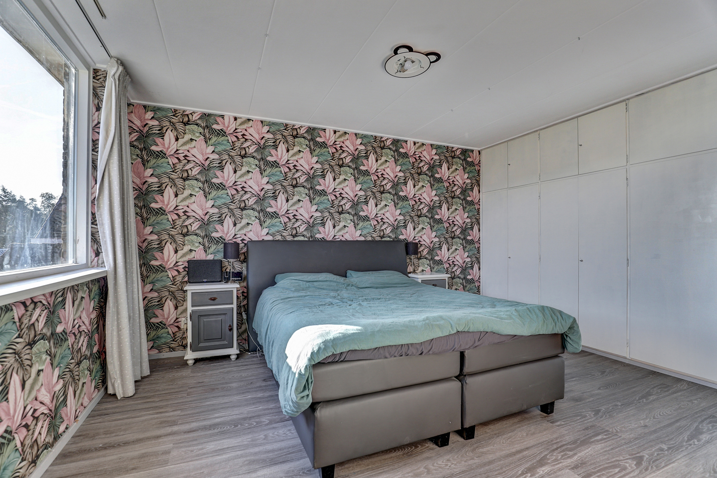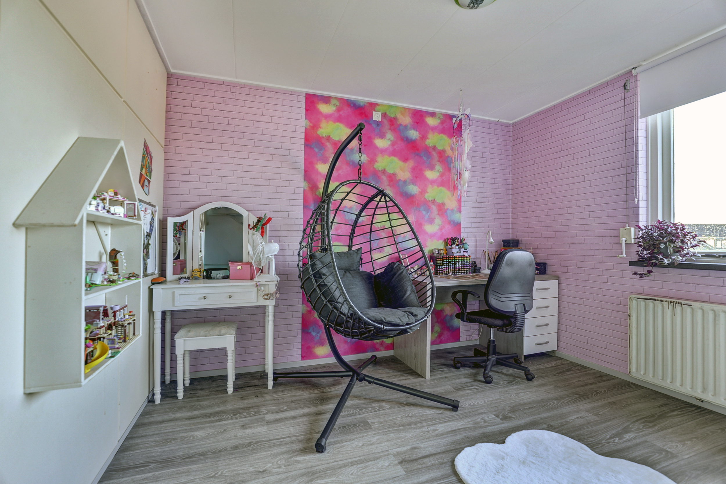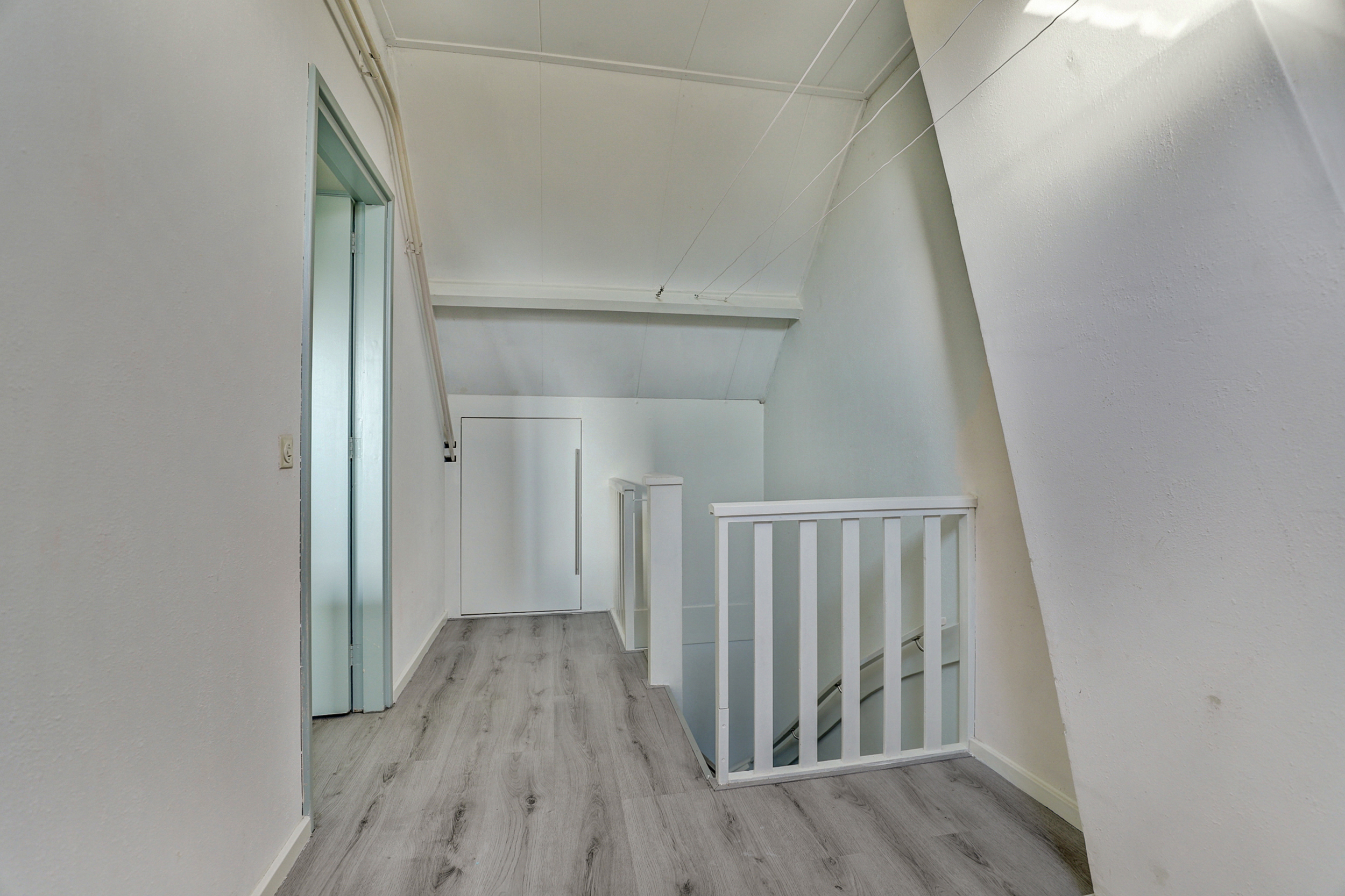 De tweede verdieping is verrassend ruim. Hier vindt u een derde ruime slaapkamer met veel daglicht dankzij de grote dakkapel aan de achterzijde. Deze kamer is afgewerkt in een zachte groentint, met een lichte laminaatvloer en strak afgewerkte wanden, ideaal als kinderkamer of thuiswerkplek. De kamer beschikt over vaste kasten onder de schuine dakdelen, ideaal voor kleding of seizoensopslag. Op de voorzolder bevindt zich bovendien een grote bergkast, een dakraam en de cv-installatie, wat deze verdieping extra praktisch maakt.