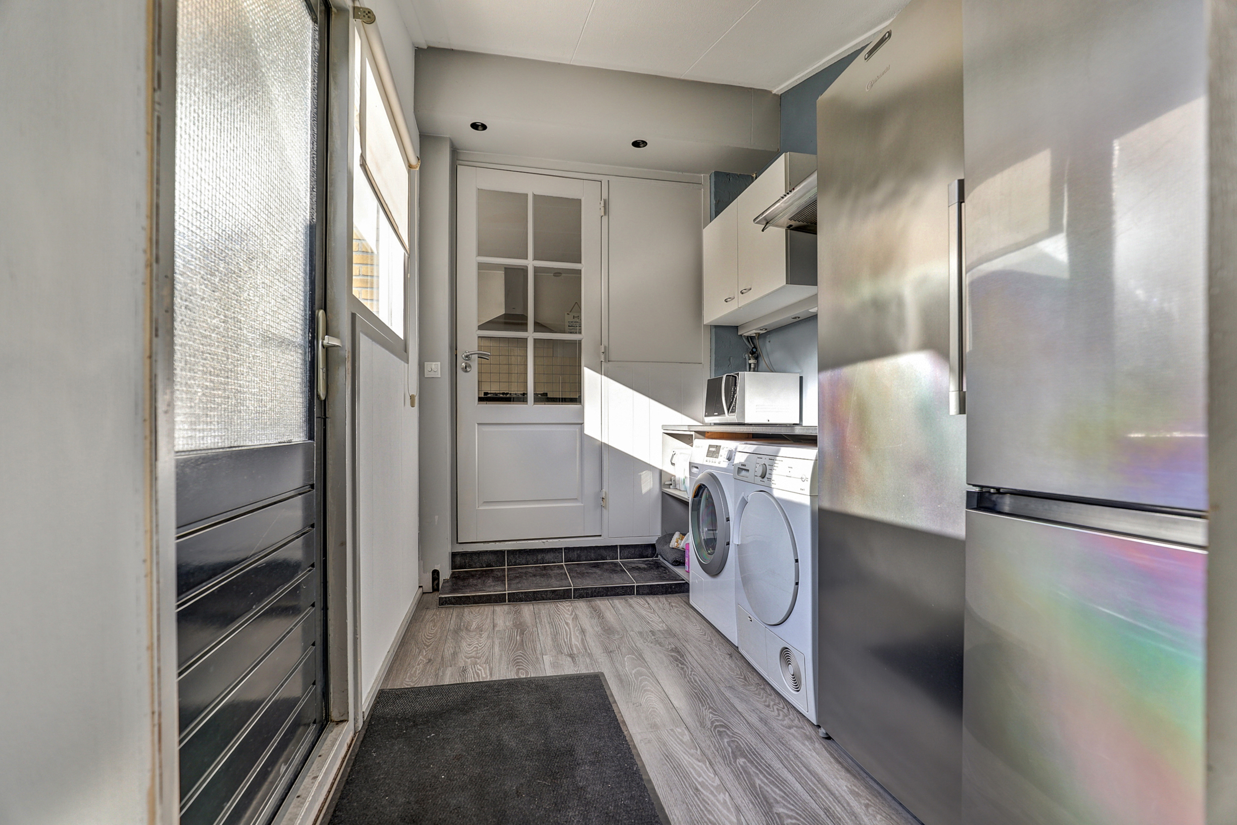 Aansluitend aan de keuken bevindt zich de bijkeuken, waar ruimte is voor de wasmachine en droger. Vanuit hier heeft u ook toegang tot een berging en is er toegang tot de tuin, praktisch voor dagelijks gebruik.