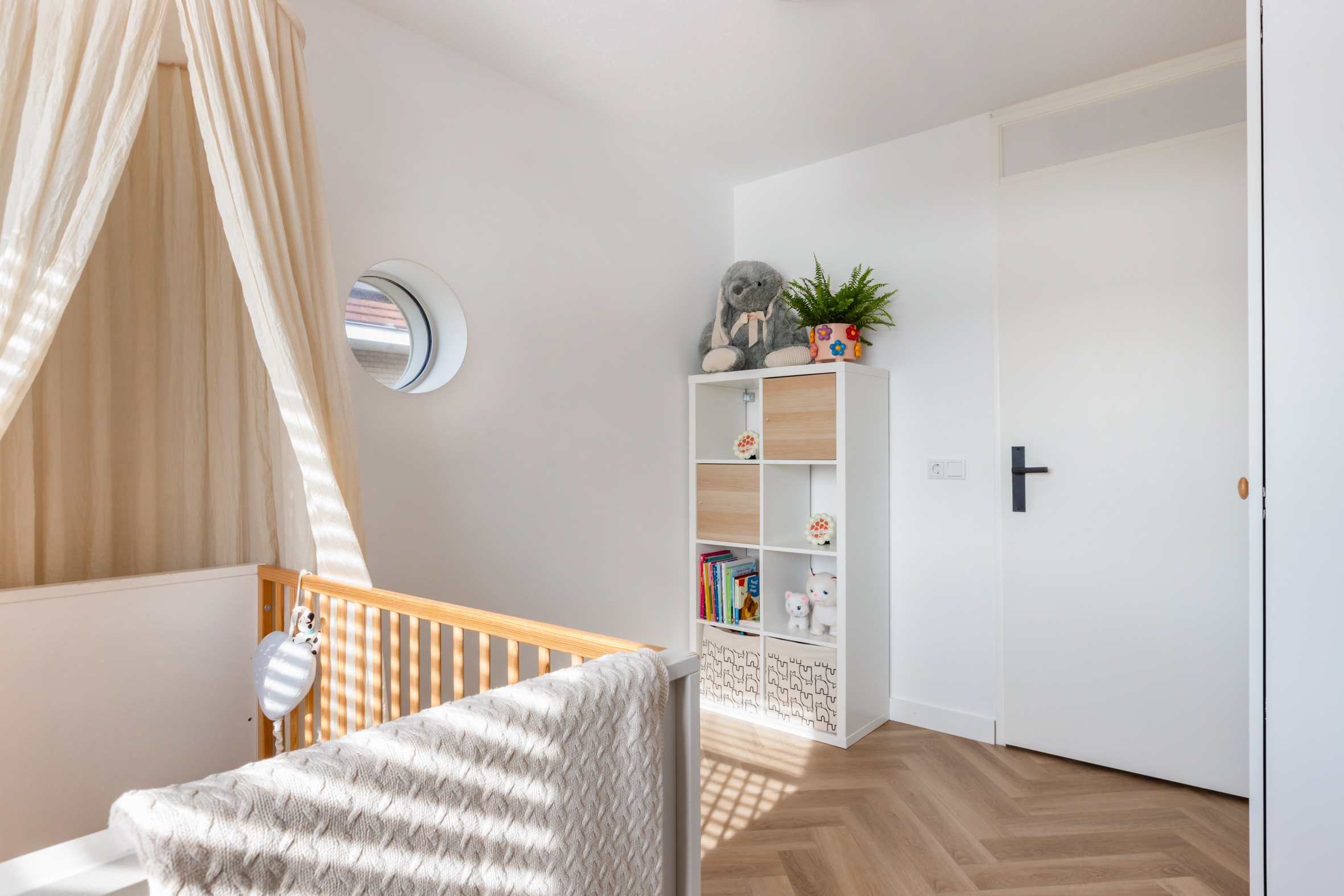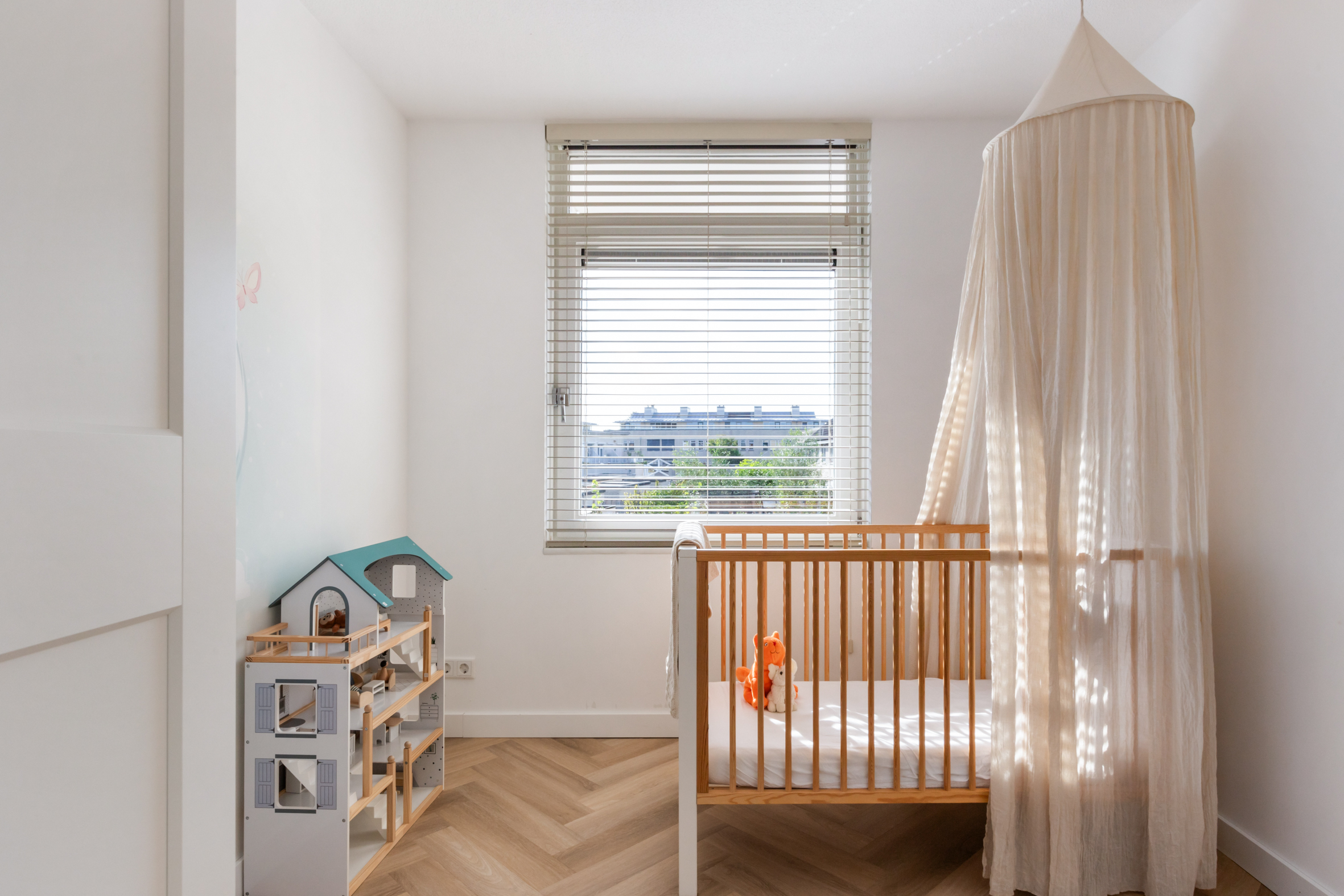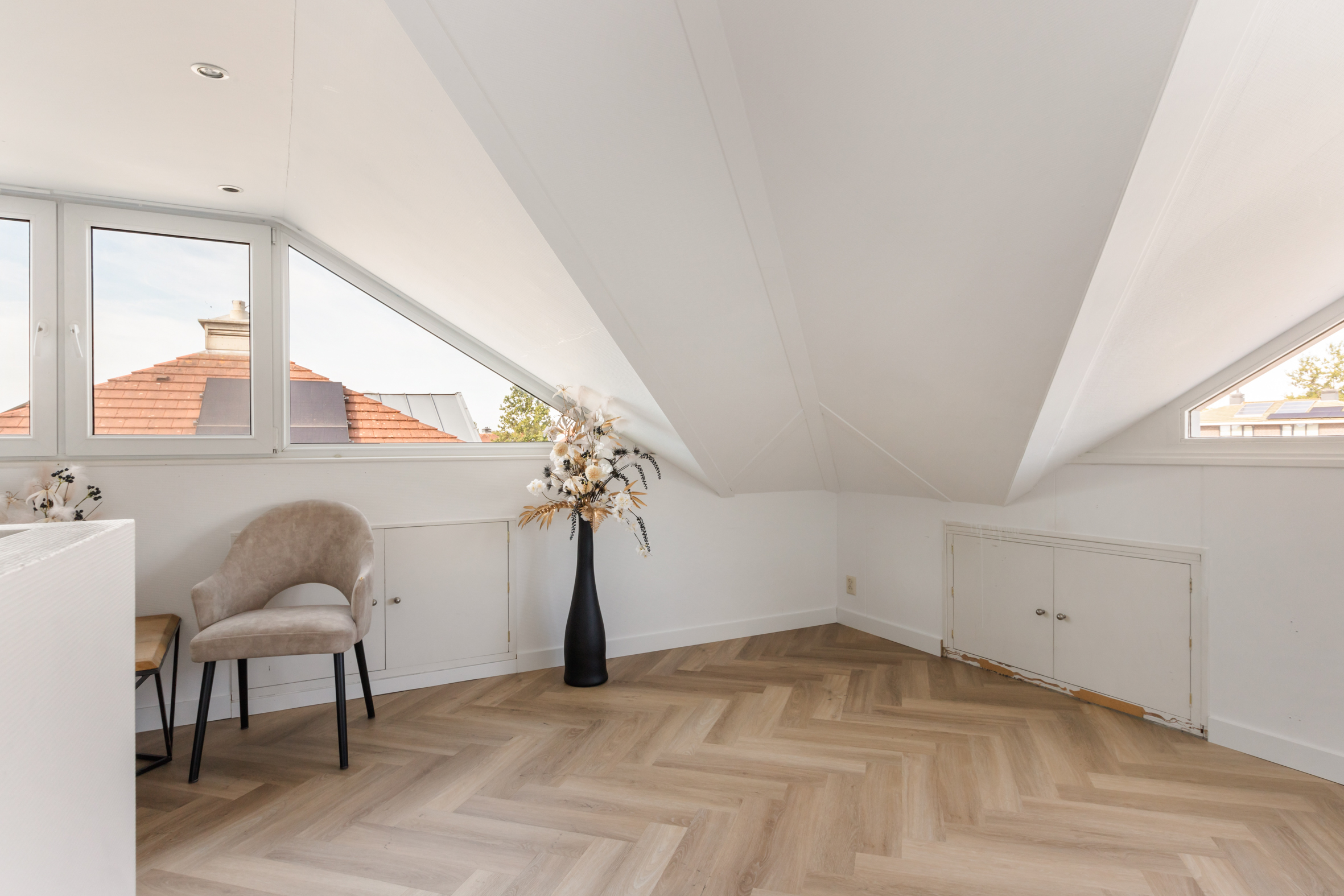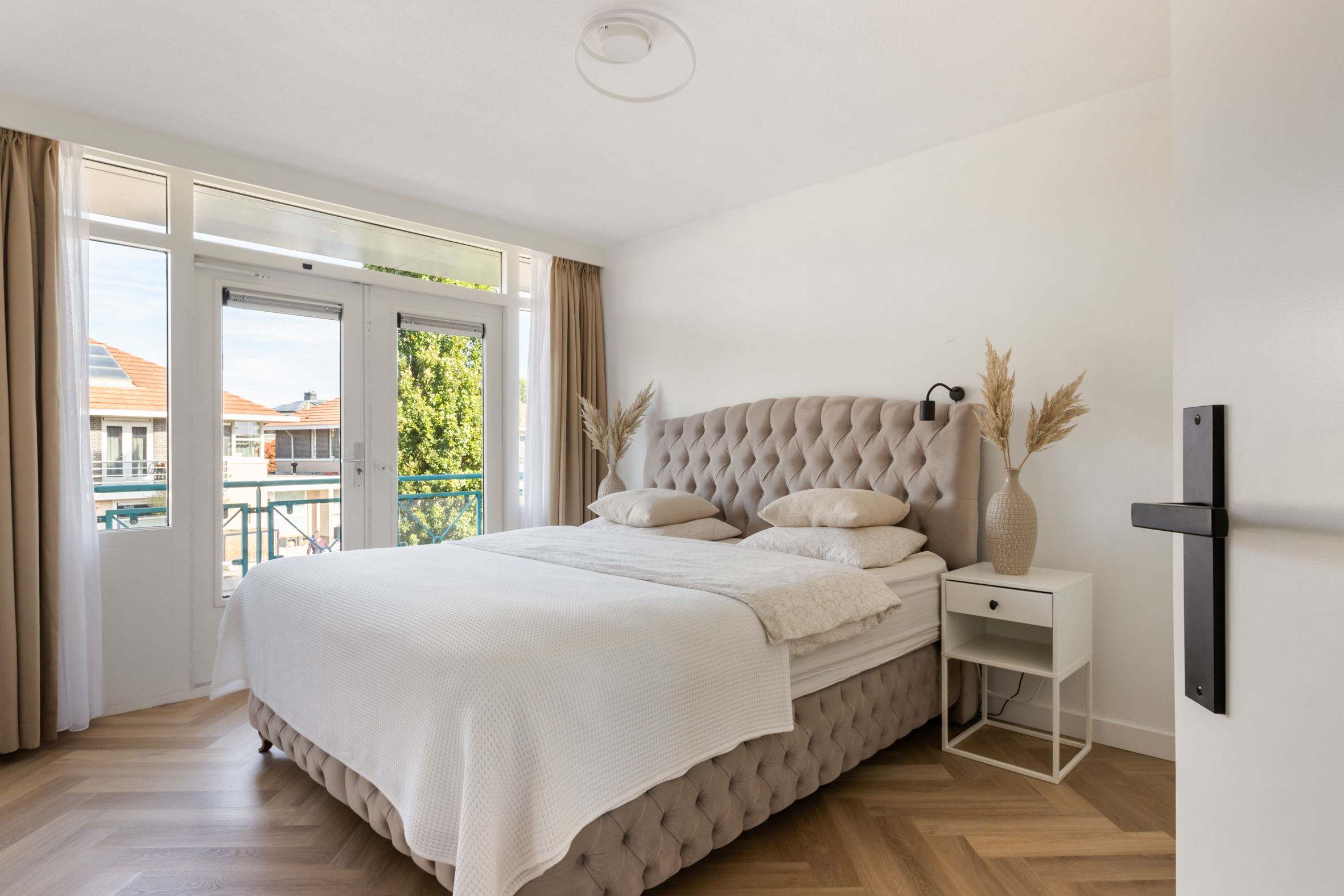 Ruime overloop met toiletruimte, vaste kast en trapopgang naar de tweede verdieping. Royale voorslaapkamer met openslaande deuren naar het balkon. Luxe badkamer voorzien van vrijstaand bad, inloopdouche en fraai meubel met waskom en spiegel. Er zijn twee ruime slaapkamers aan de achterzijde van de woning. De gehele eerste verdieping is voorzien van vloerverwarming.