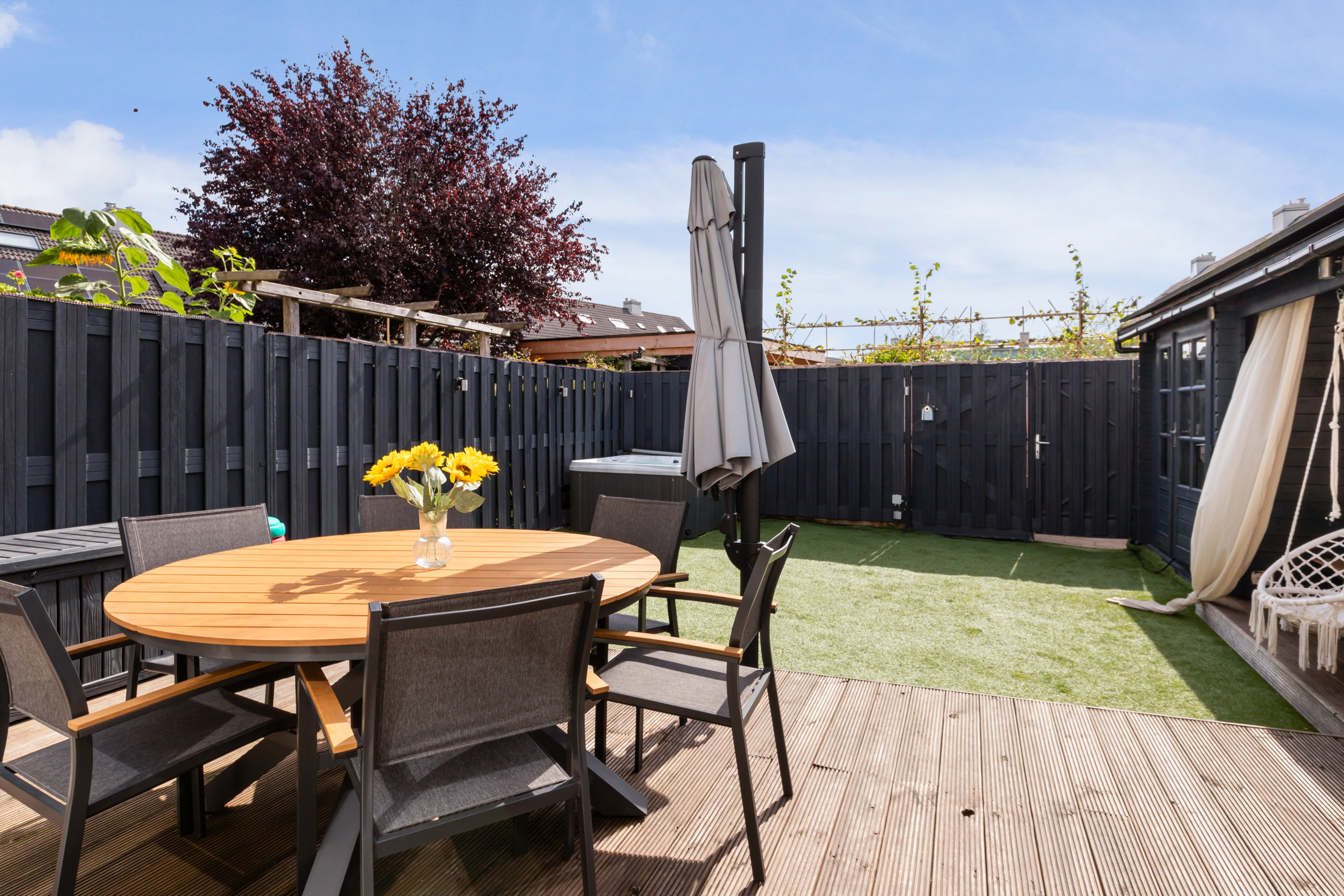 Aan de voorzijde heeft u een eigen oprit en voortuin. De achtertuin is gelegen op het zuid oosten en voorzien van een houten berging en aangrenzend een veranda waar u tot in de late uurtjes heerlijk kunt zitten. Tevens is er een achterom aanwezig.