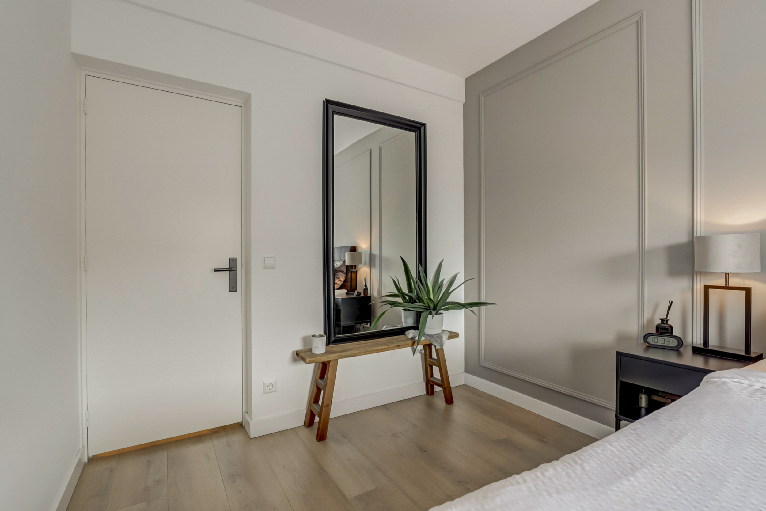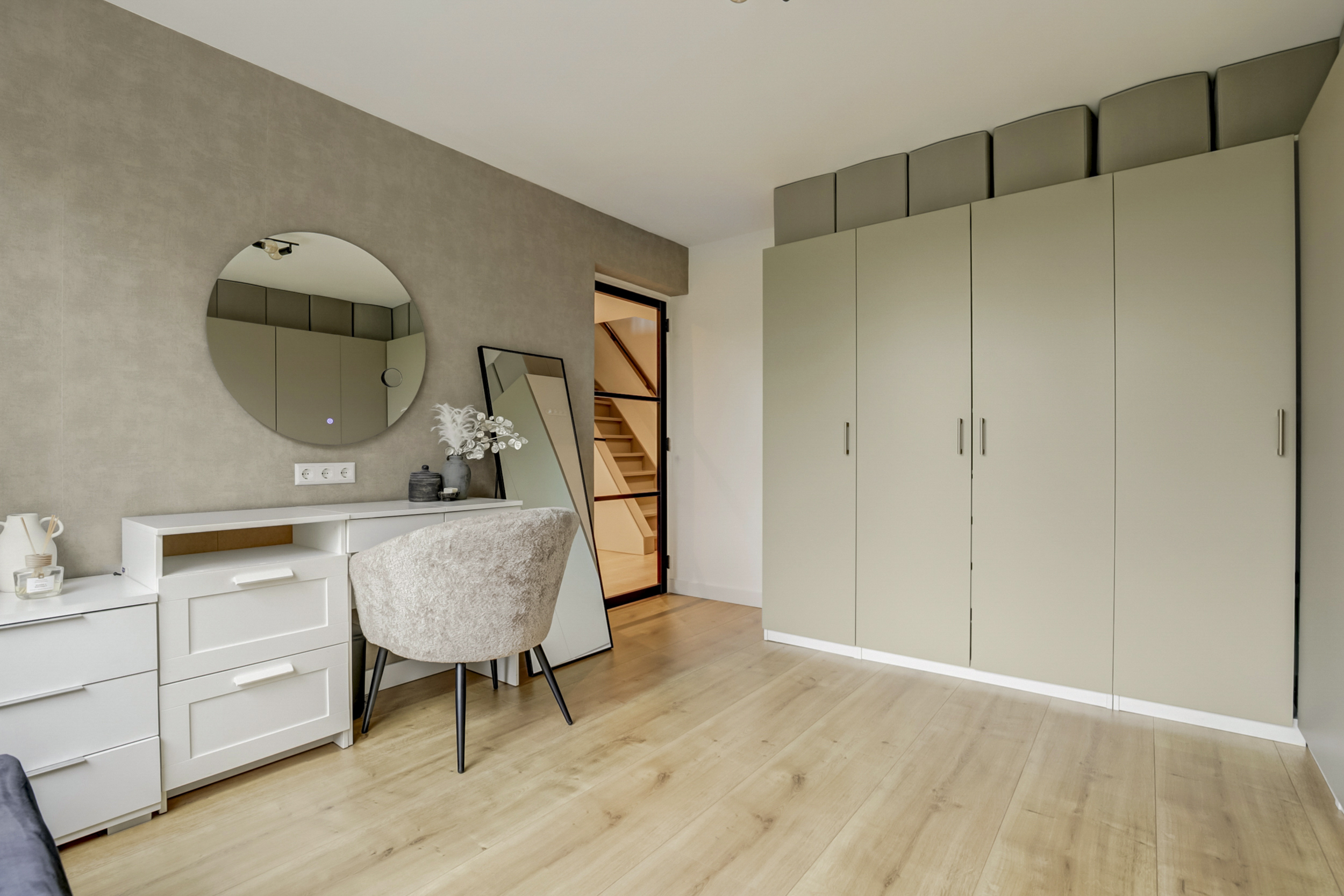 Op deze verdieping bevinden zich verder twee slaapkamers, waarvan één met toegang tot het tweede balkon. De moderne badkamer is voorzien van een inloopdouche en wastafelmeubel en er is een separaat toilet.